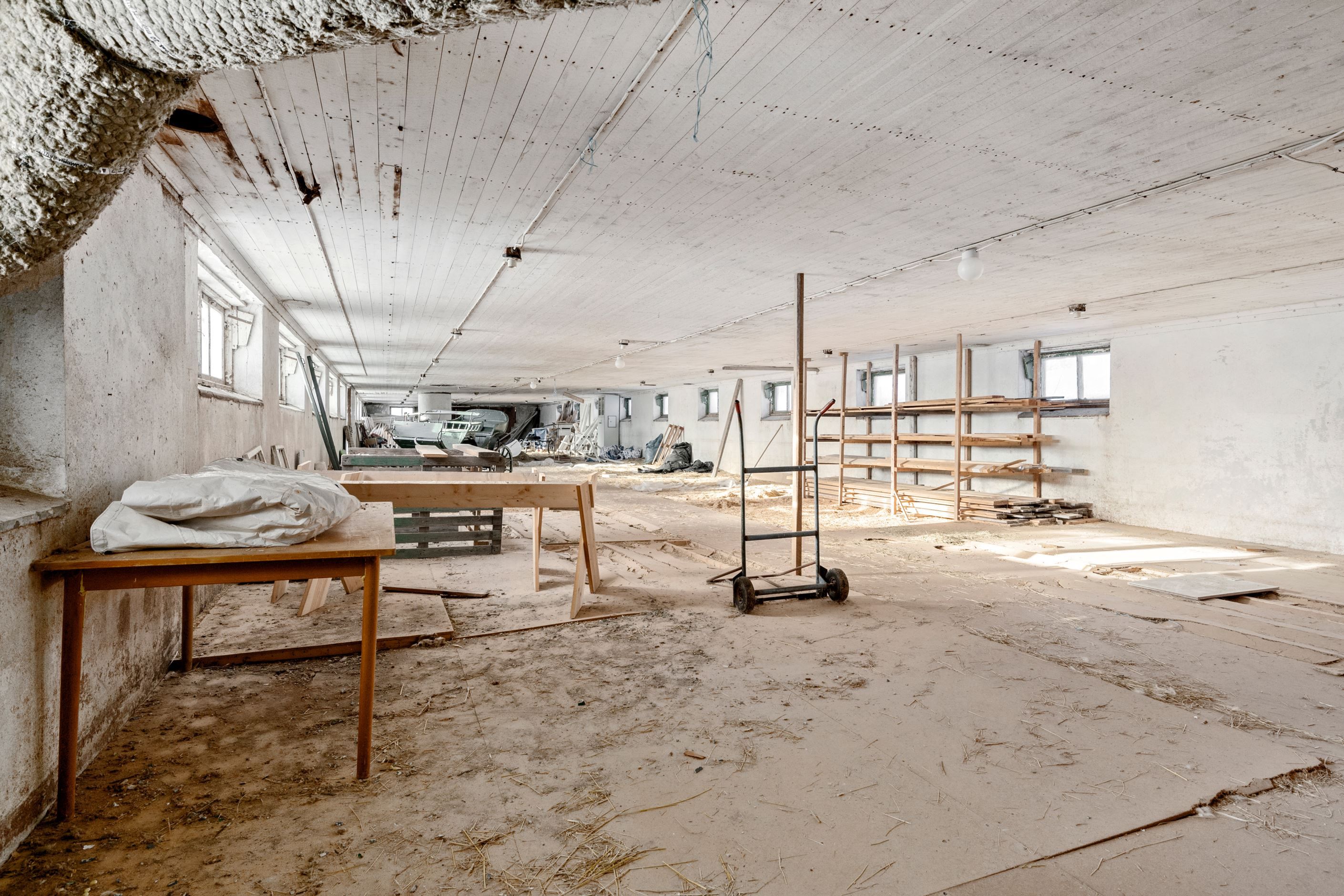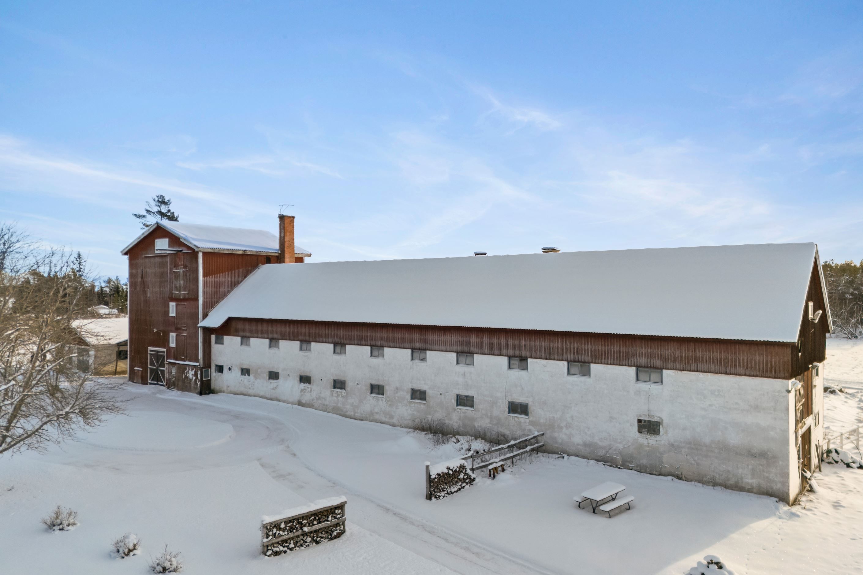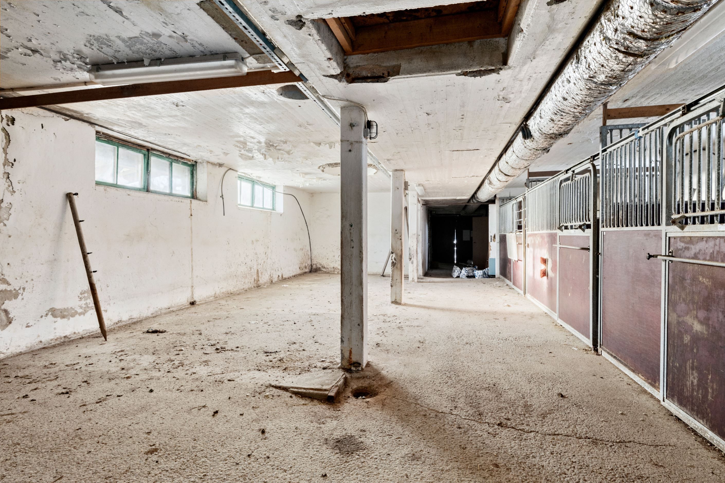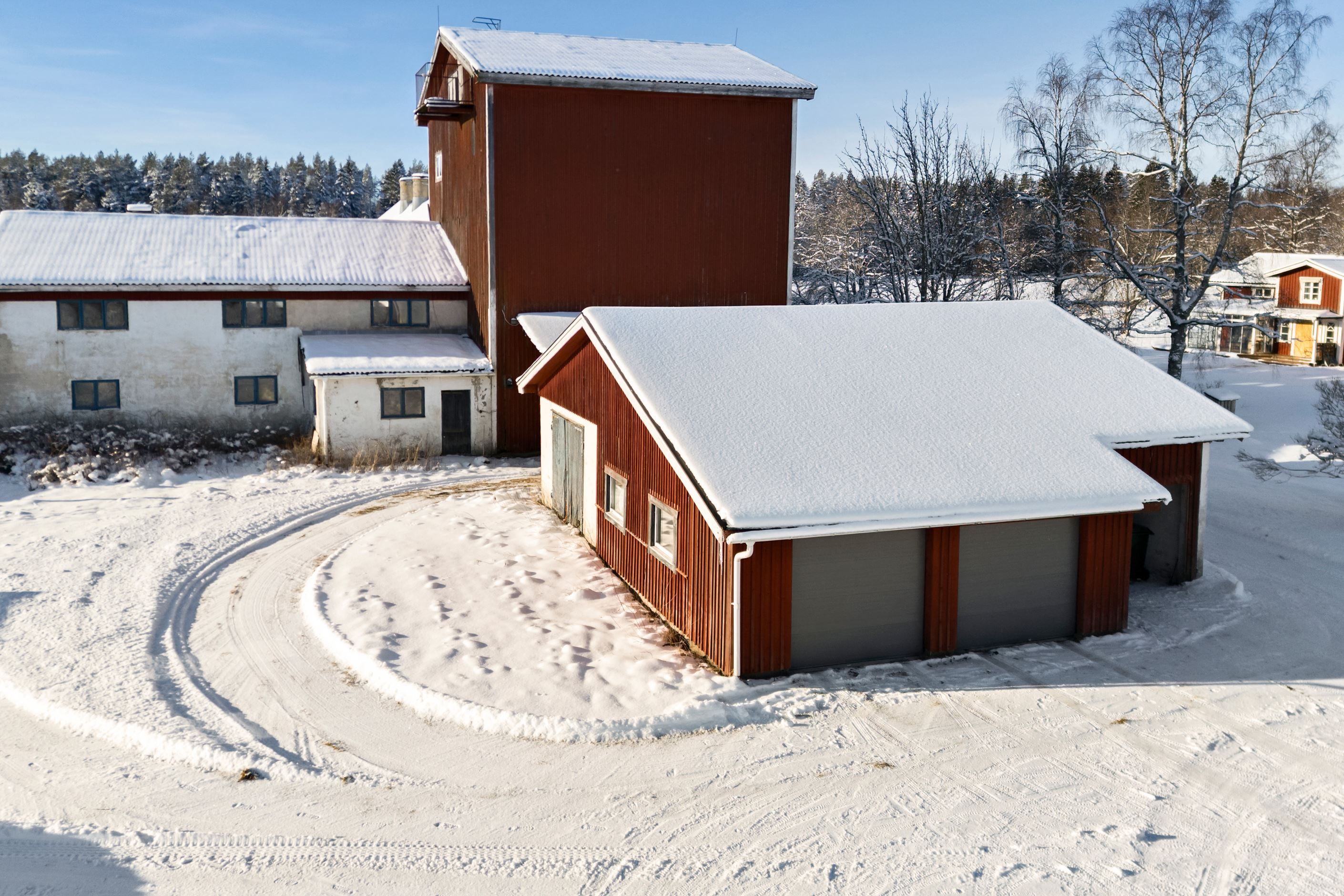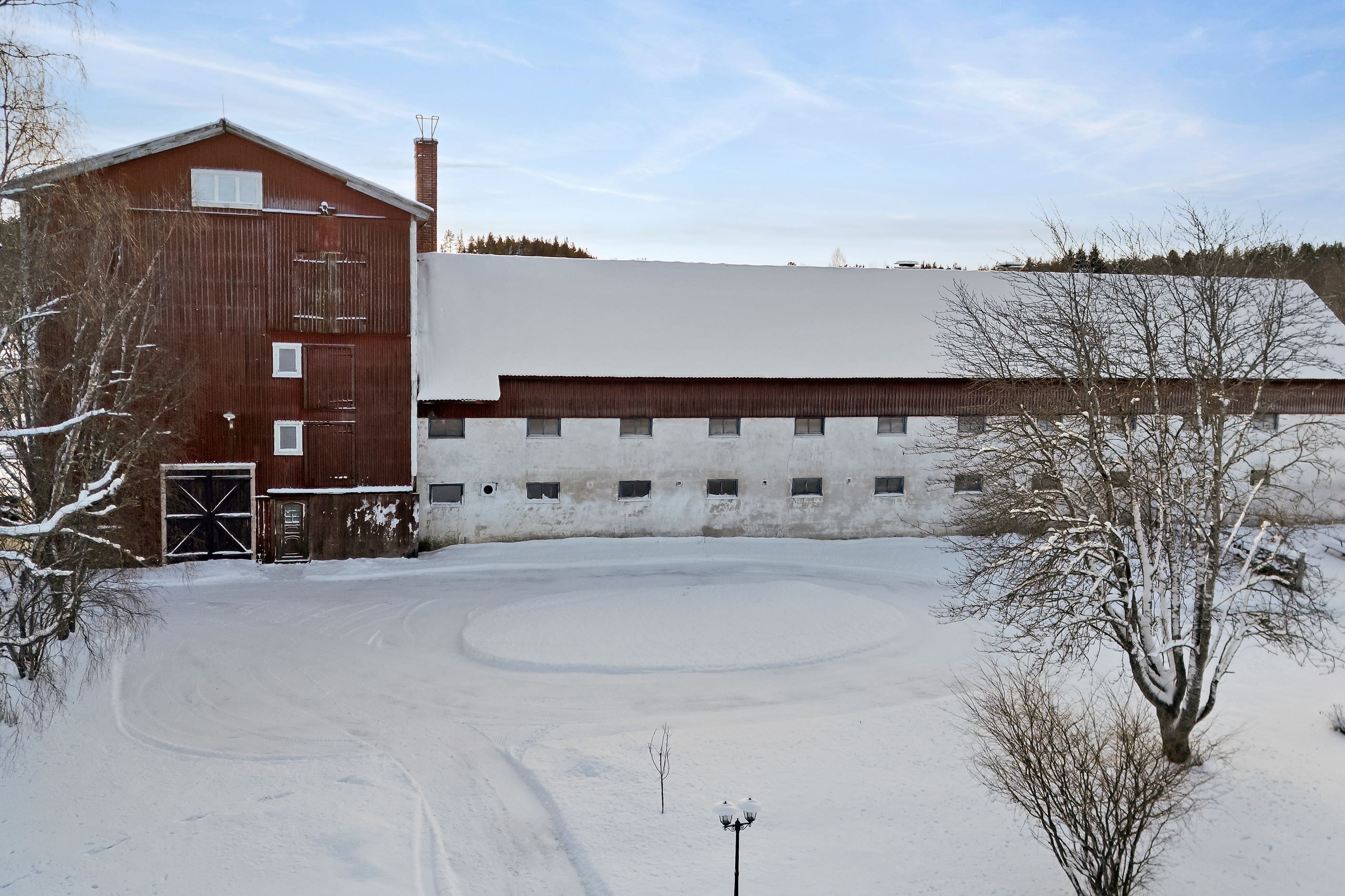 Ladugården är väldigt stor och har enorma ytor i flera plan. Här finns bl.a. ca. 15 hästboxar, förrådsytor stora som små och alla möjligheter som finns i och med det. Vid infarten finns ett dubbelt varmgarage.