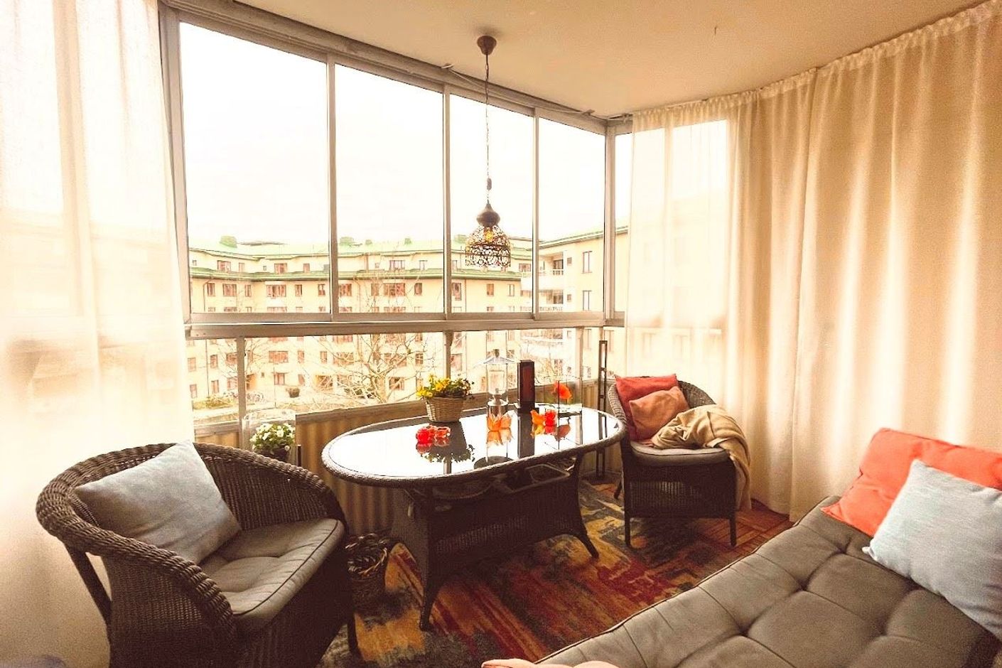 Här bor du med en generös balkong i eftertraktat sydvästläge mot föreningens gröna gård, medan den andra sidan bjuder på sjöutsikt och Barnängens Herrgårds mangårdsbyggnad från 1700-talet i blickfånget. Ett guldkorn för dig som söker bästa boendet med närhet till Nytorget, grönytor och vatten. Föreningen har tre stora innergårdar med lekplatser och grillmöjligheter.