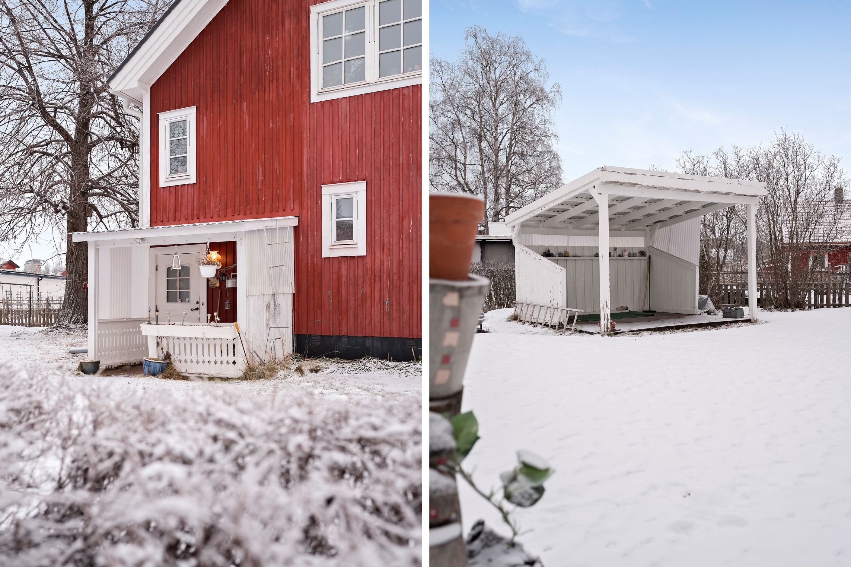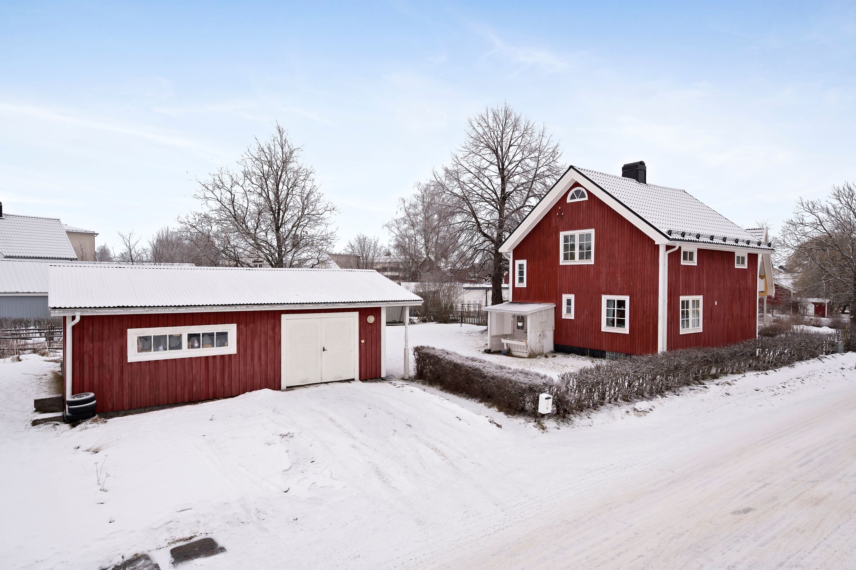 Det fristående garaget erbjuder stor flexibilitet. Idag används ena delen som garage och den andra som snickeri, men för den som behöver mer plats för fordon kan garaget enkelt byggas om till dubbelgarage genom att installera ytterligare en garageport. Perfekt för bilentusiasten, hemmafixaren eller den som vill kombinera förvaring med hobbyverksamhet.