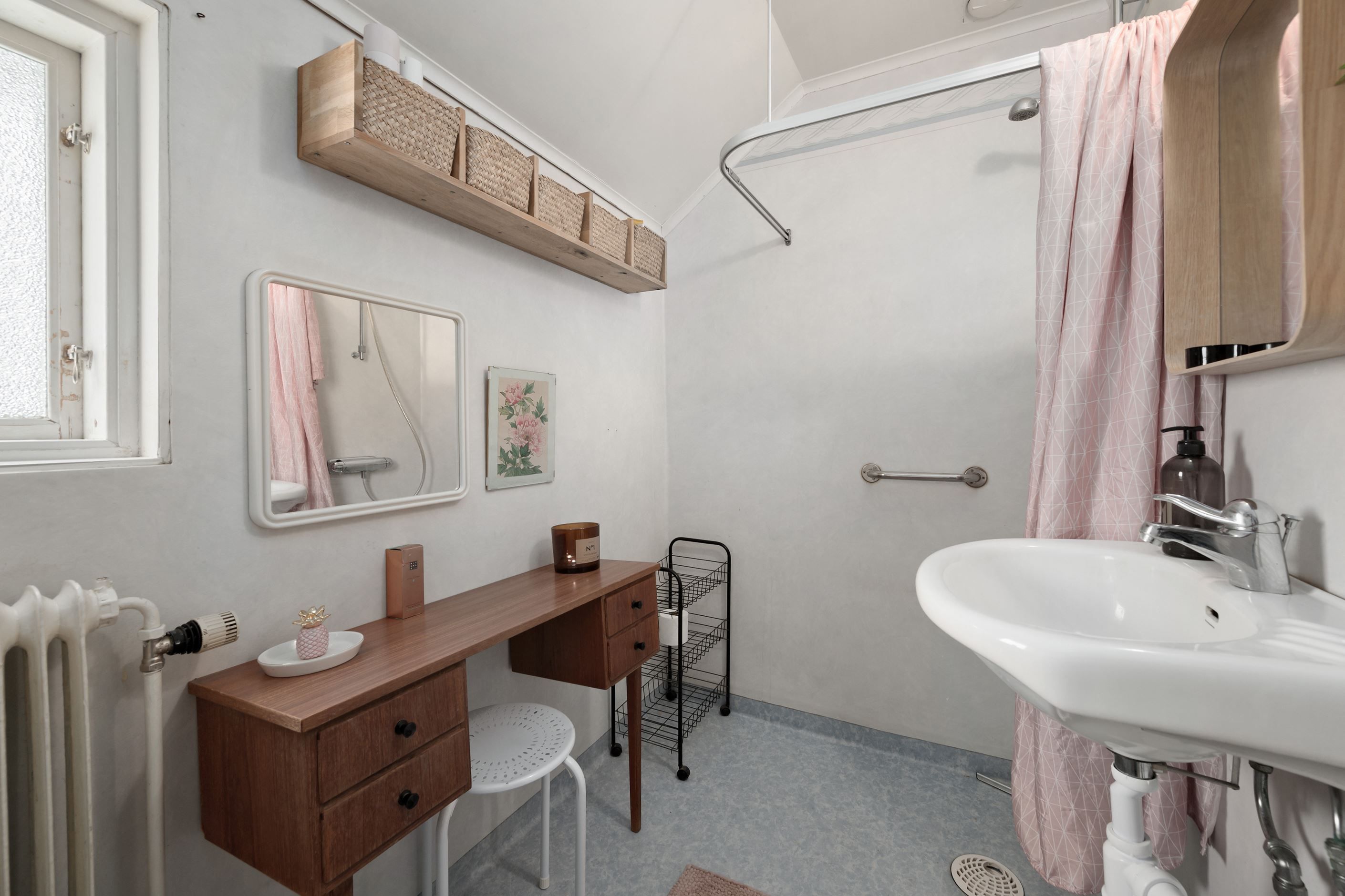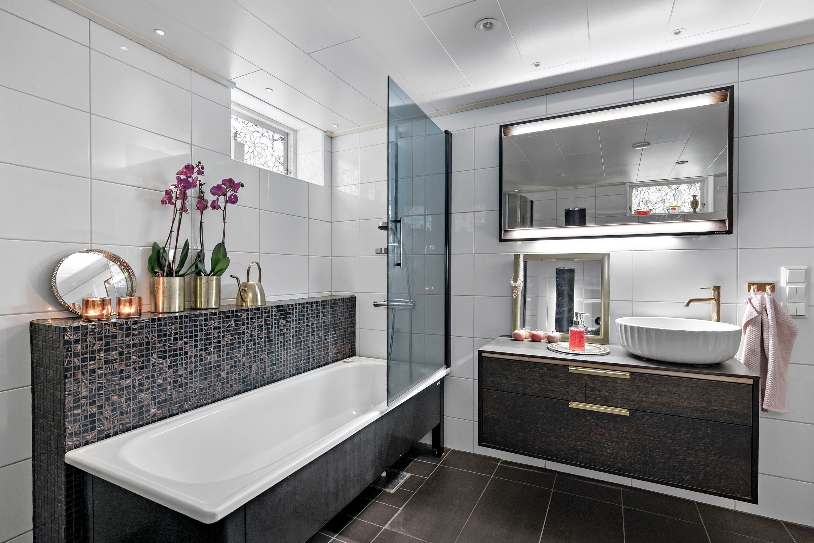 Källaren byggdes om 2019 och inrymmer ytterligare sovrum samt ett smakfullt renoverat badrum med tydlig spa-karaktär, en lugn och avkopplande miljö med hotellkänsla.