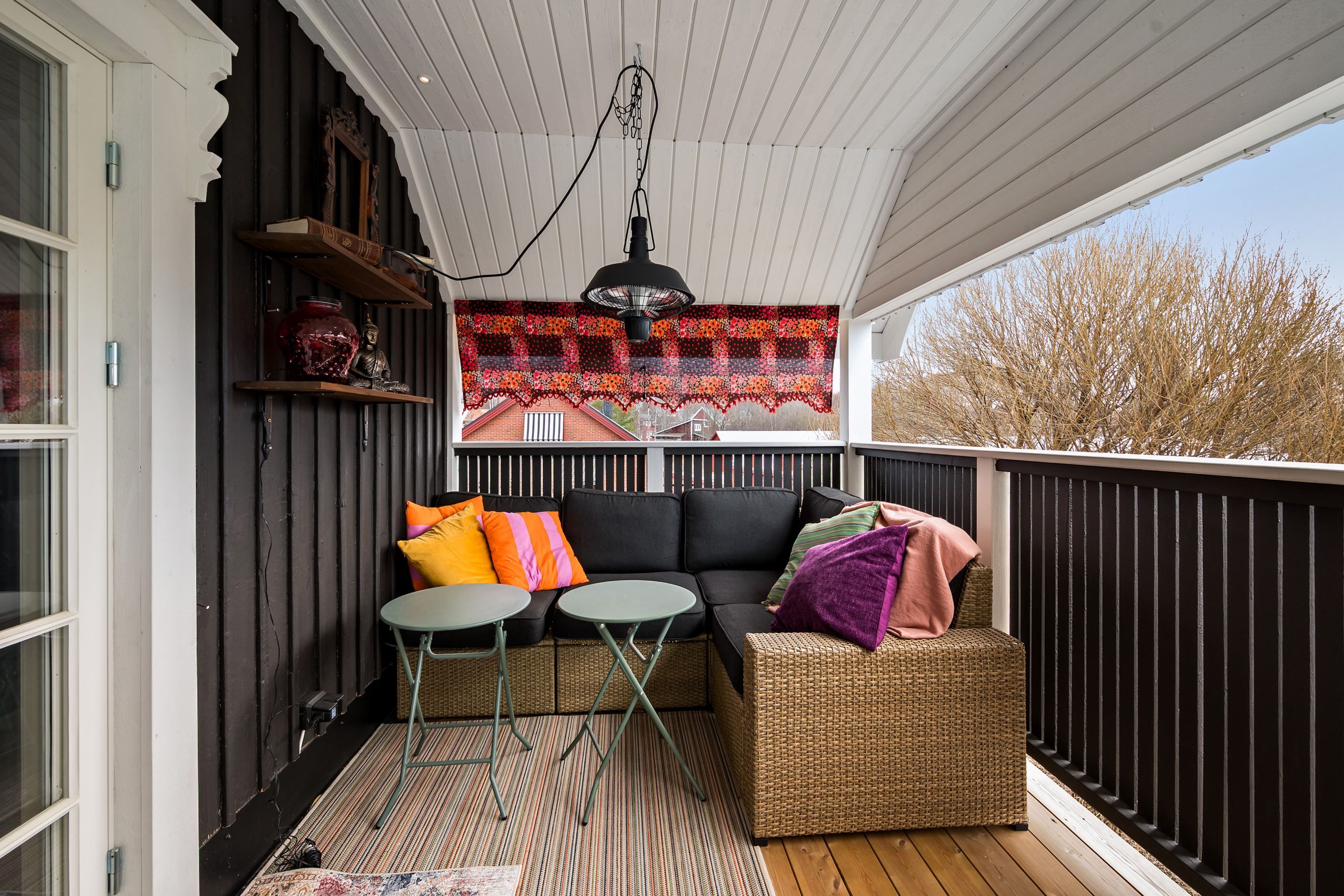 Kaminen skapar en varm mittpunkt och förstärker husets själ, en detalj som förhöjer både atmosfär och trivsel under årets kallare månader.