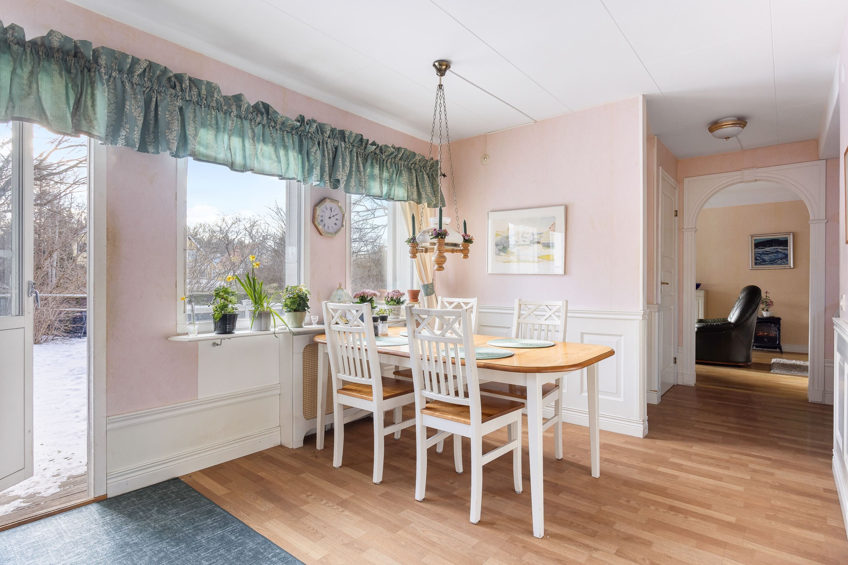 Huset är välskött och omsorgsfullt underhållet genom åren och har nyligen målats om, vilket ger ett fräscht och inbjudande intryck utvändigt. Planlösningen är genomtänkt och erbjuder generösa ytor för både vardagsliv och umgänge. Bostaden rymmer fyra sovrum i bra storlek – perfekta som barnrum, gästrum eller hemmakontor – samt två badrum som underlättar vardagen för den större familjen. Här finns gott om plats för både privatliv och gemenskap.