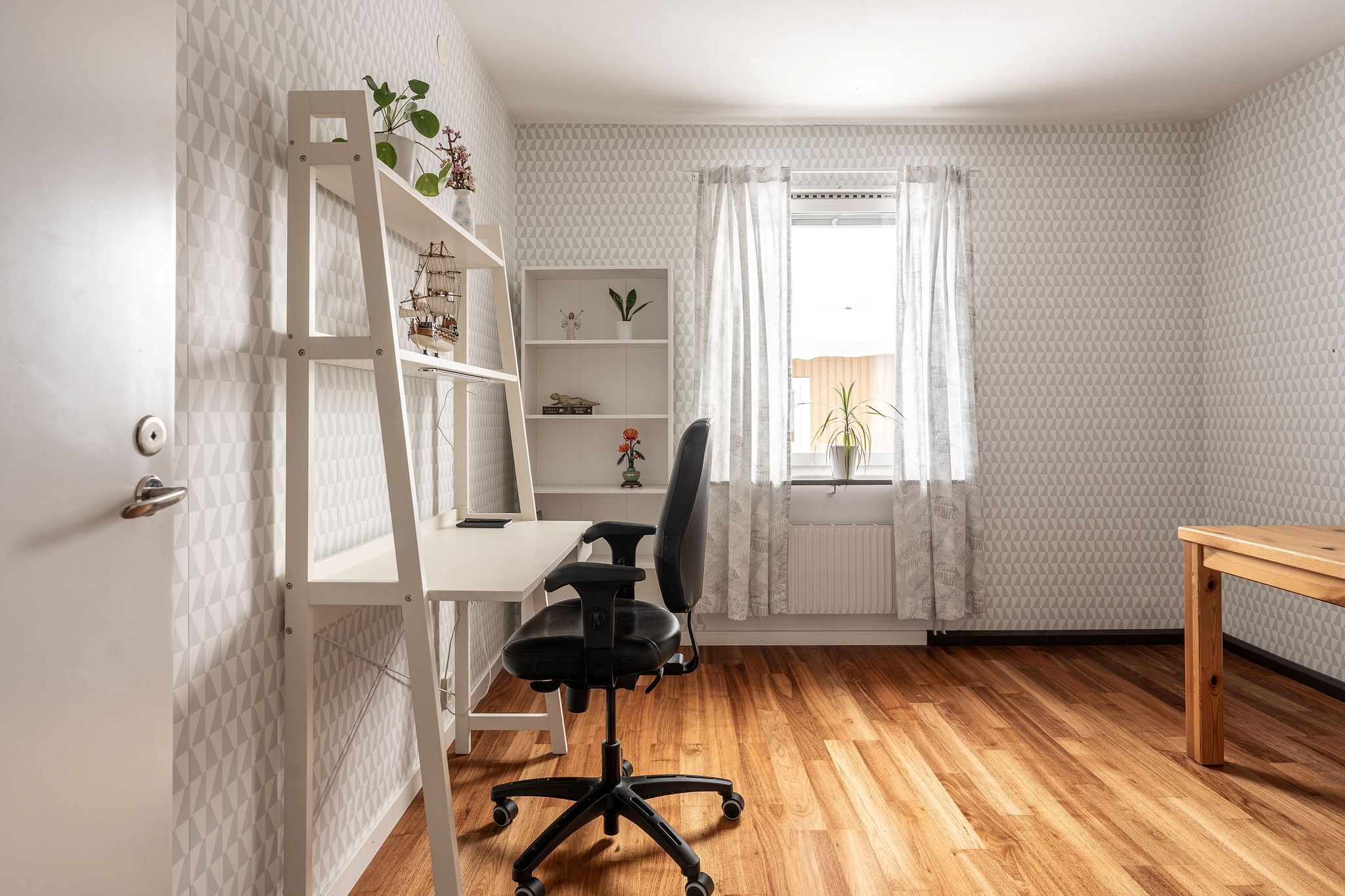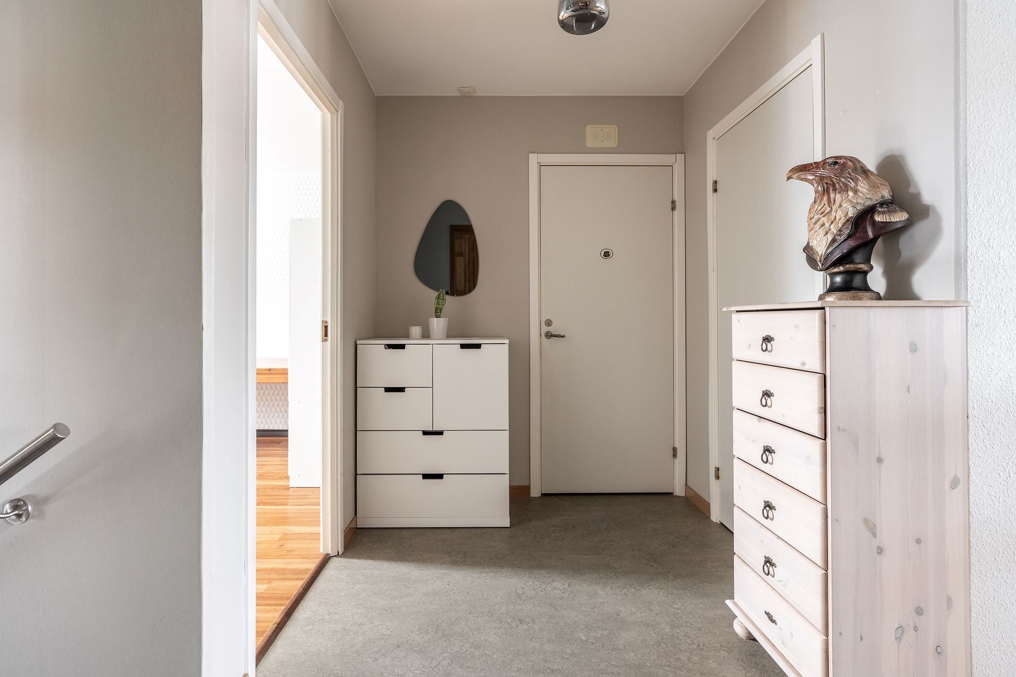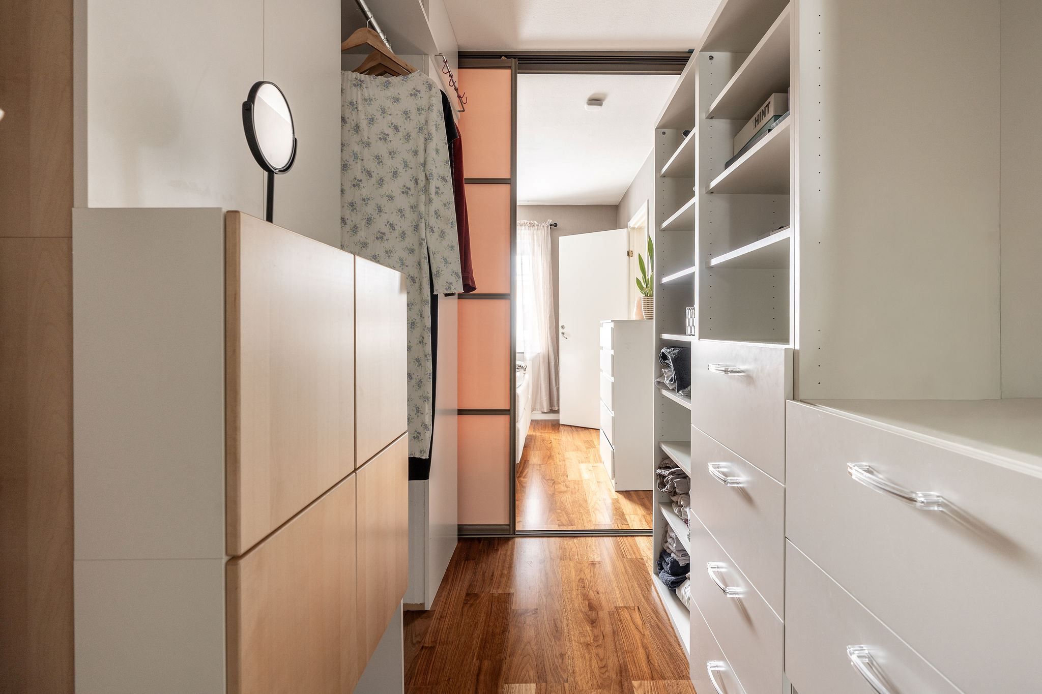 Förvaringen är smart planerad med en klädkammare i bostaden och ett förråd precis vid entrén, perfekt för att hålla ordning och reda i vardagen.