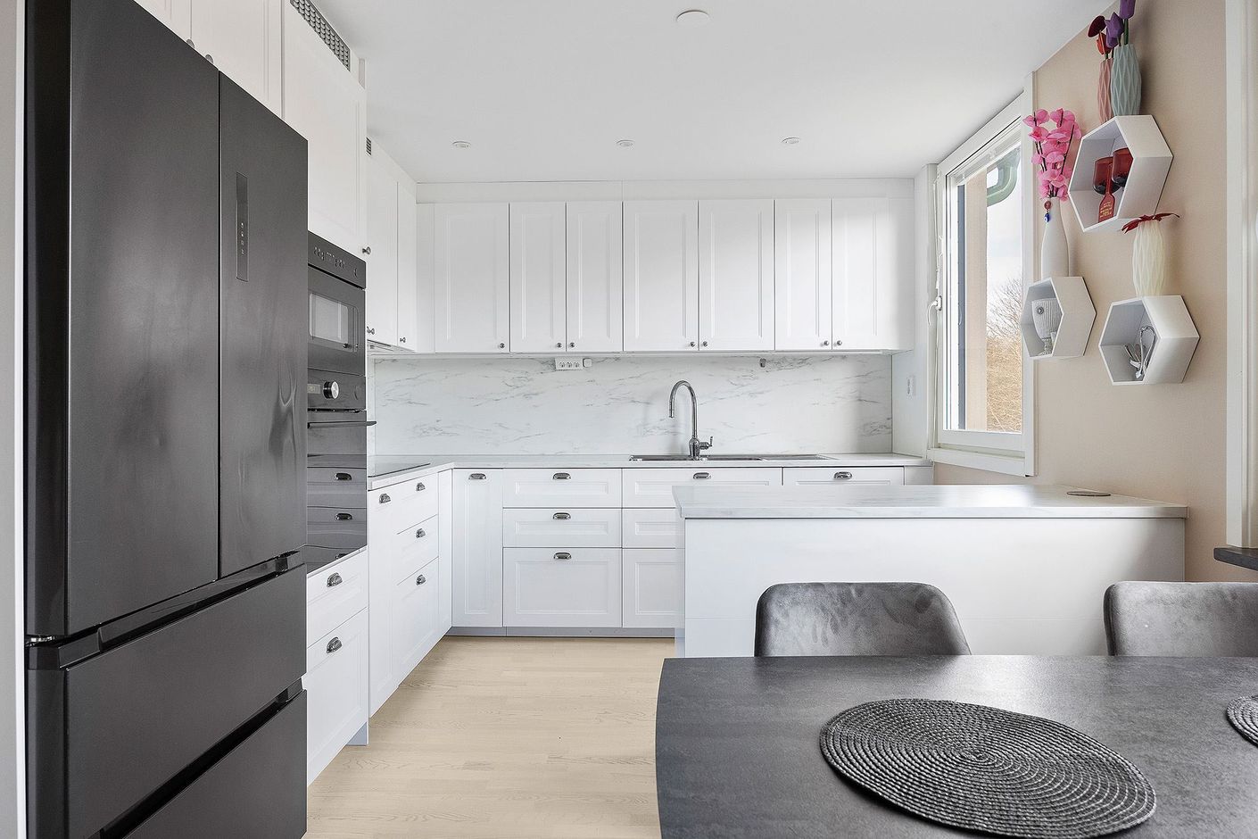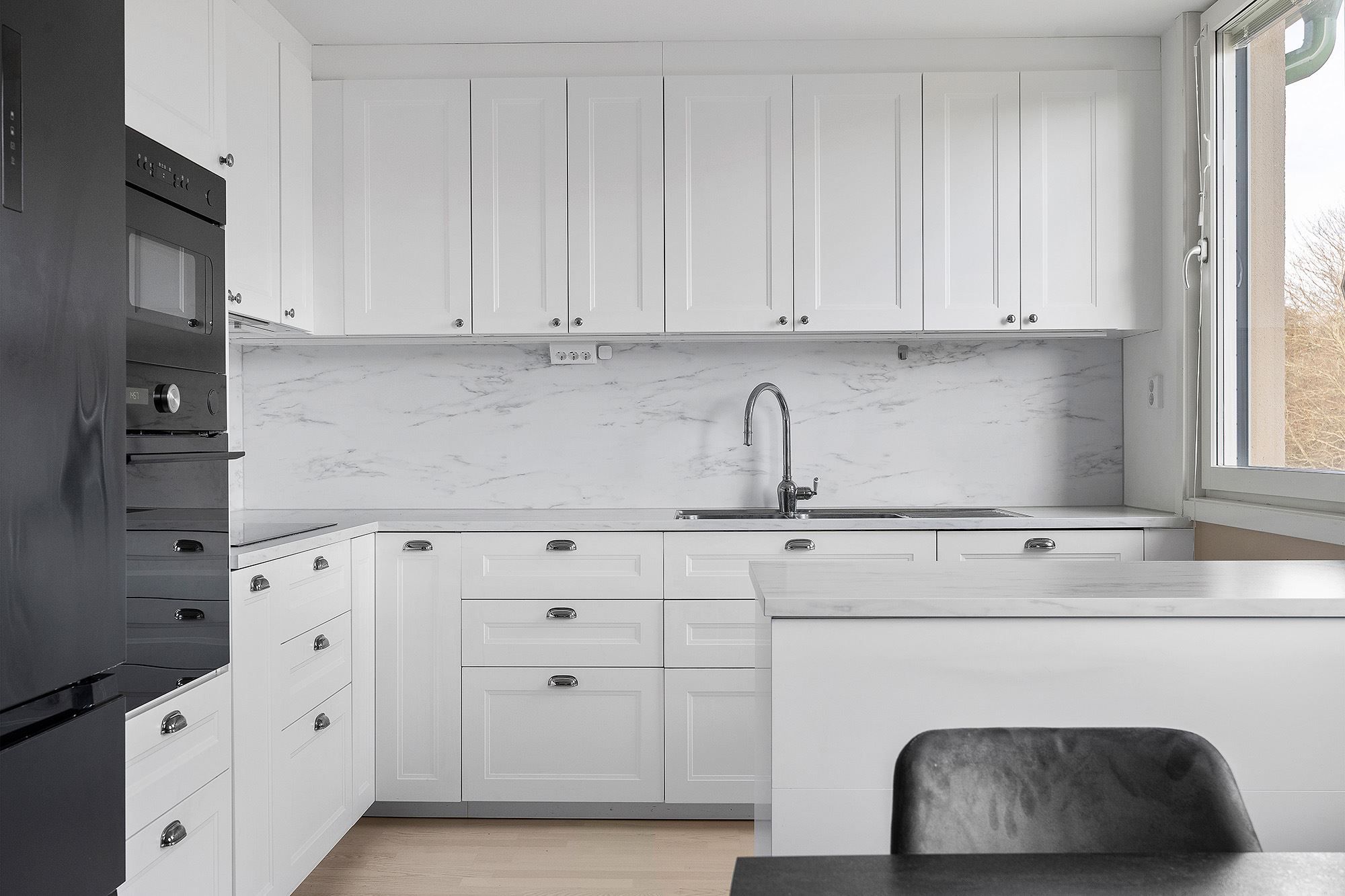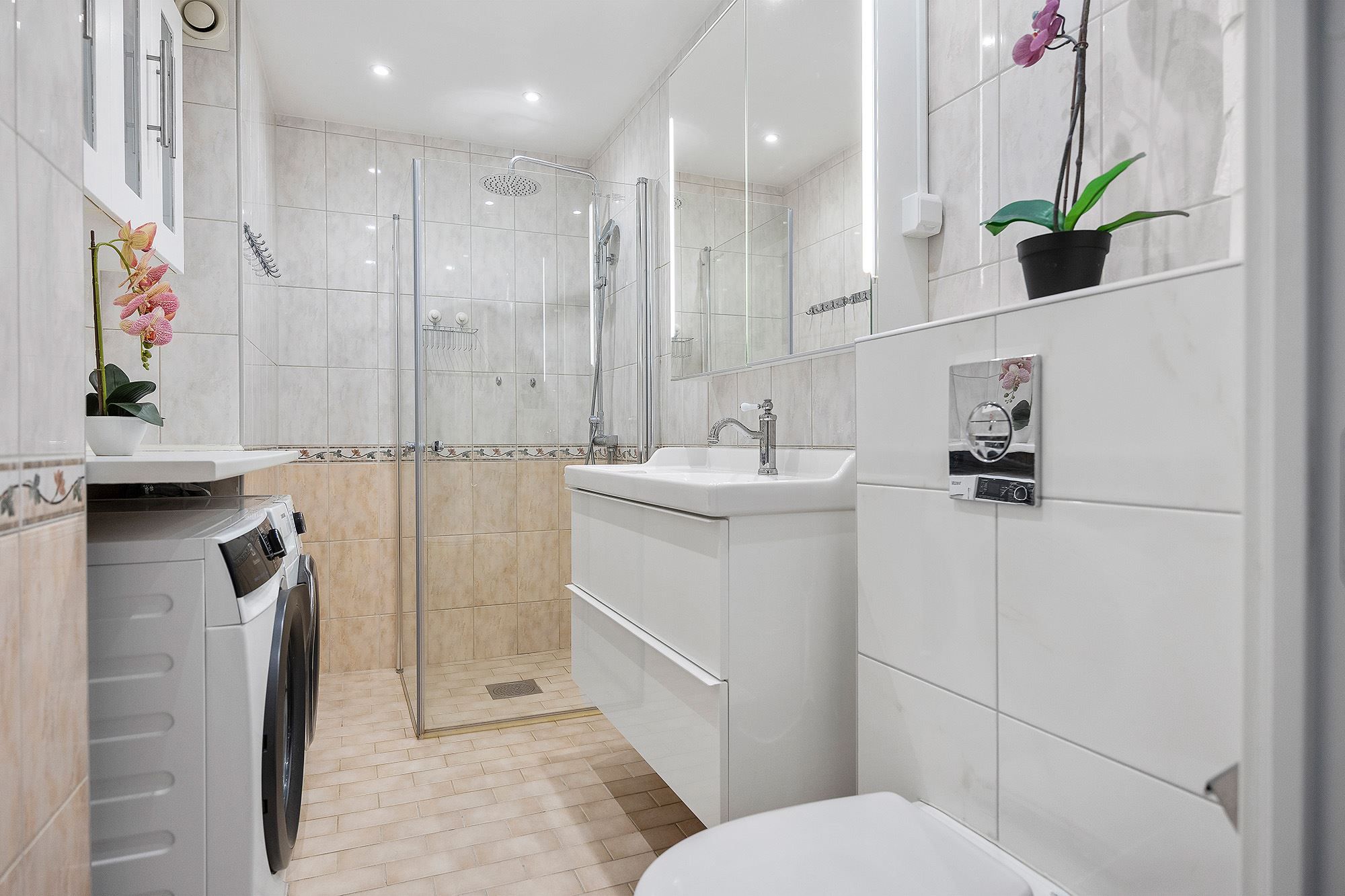 Varmt välkommen till denna perfekta och renoverade gavel fyra, högst upp i huset i områdets bästa förening! Omtimal planlösning, ingen insyn, stor inglasad balkong med bra solläge och dubbla badrum. Här bor ni i en populär och ekonomiskt stark förening, i en lägenhet som har ett underbart ljusinsläpp från stora fönsterpartier, smakfulla materialval och ljusa ytskikt. Lägenheten är välskött och i väldigt gott skick. Den genomtänkta planlösningen ger dig ett mycket praktiskt och behagligt boende med tre väldisponerade sovrum i bra storlek. Stilrent och modernt kök med full maskinpark och matplats för ca 6 pers intill fönsterpartier. Stort och luftigt vardagsrum med utgång till den underbara inglasade balkongen, där ni kan njuta av solen från morgon till eftermiddag. Helkaklat badrum med tvättdel samt duschrum. Goda förvaringsmöjligheter via garerobslänga i hallen. Även ett källarförråd medföljer.