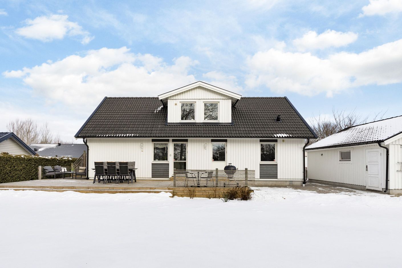 Generös uteplats i klockrent söderläge – perfekt för långa, soliga dagar och ljumma kvällar.