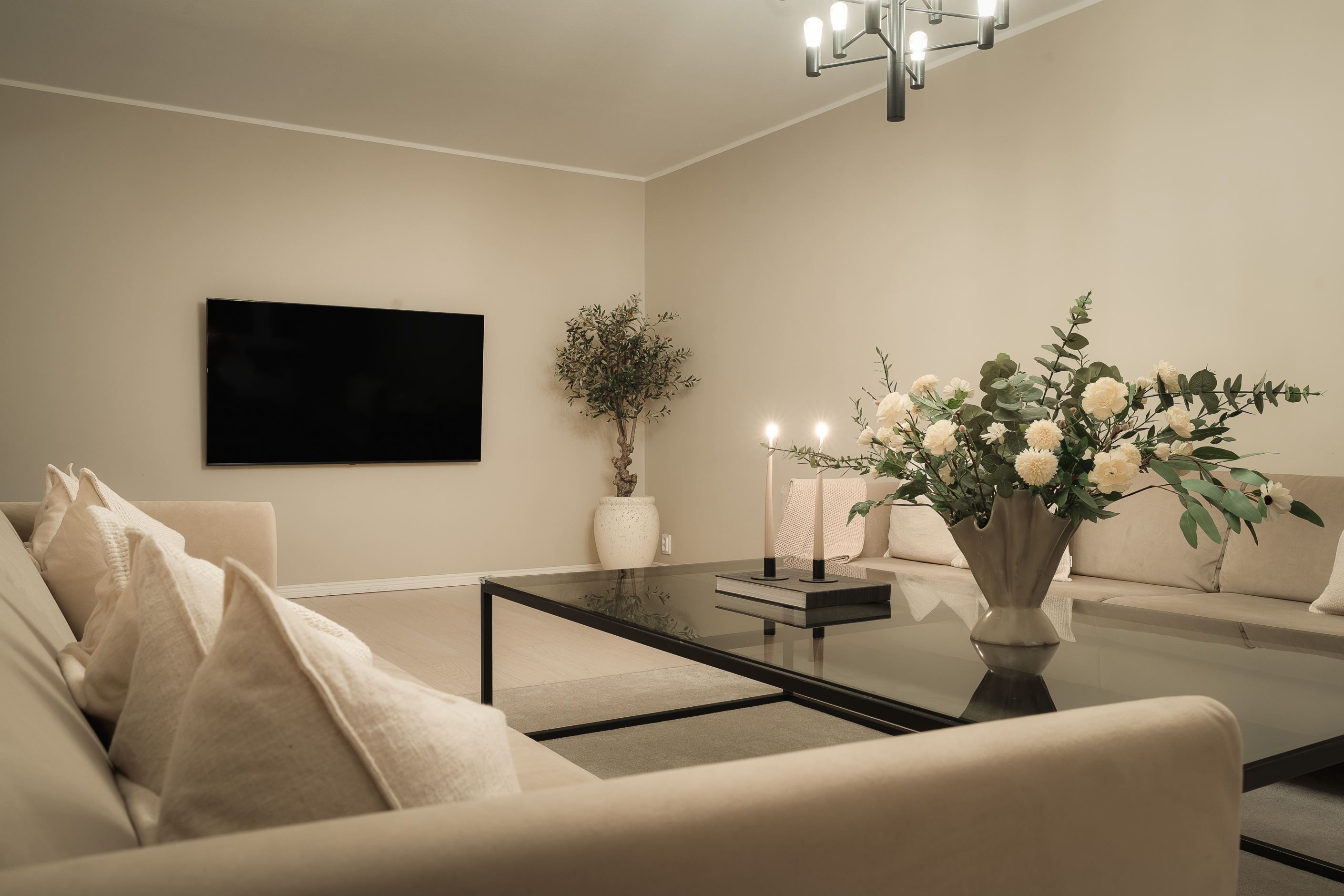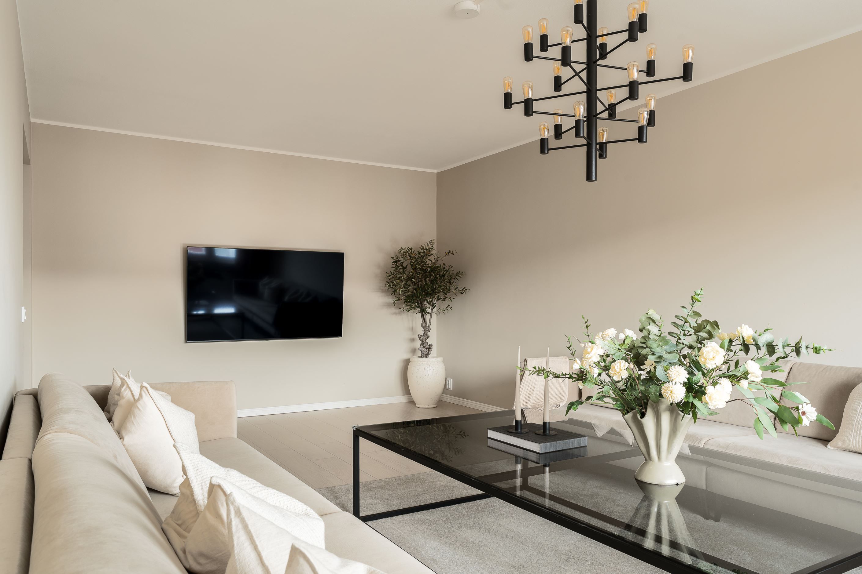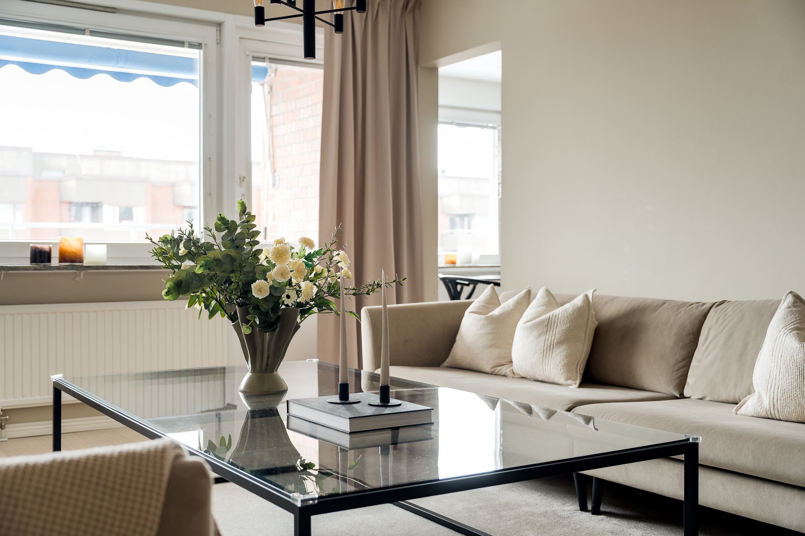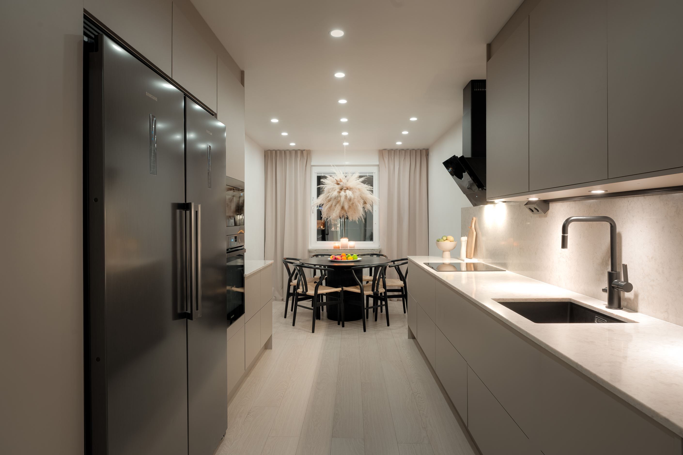 Köket är hemmets hjärta – en plats där stil, klass och funktion smälter samman. Härifrån leds du vidare in i ett luftigt vardagsrum, fyllt av rymd och ljus. När dagen går mot kväll kan du slå dig ner i balkongen och njuta av solnedgången tillsammans med en härlig utsikt.