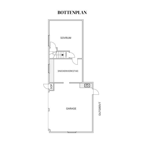 Sutterängplanet rymmer praktiska ytor samt direktaccess till det rymliga dubbelgaraget – optimalt för både bilentusiasten eller familjen med behov av extra förvaring.
