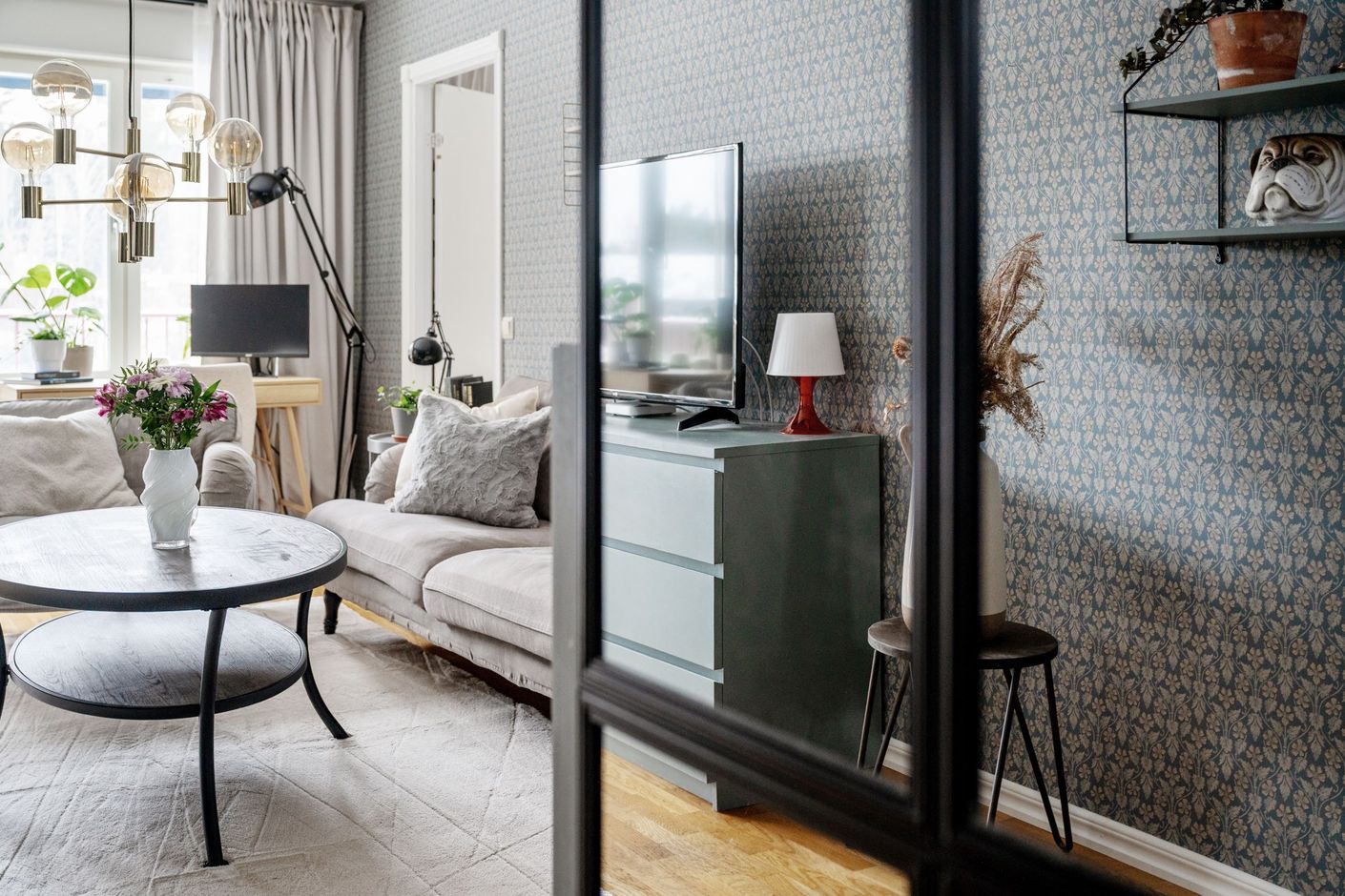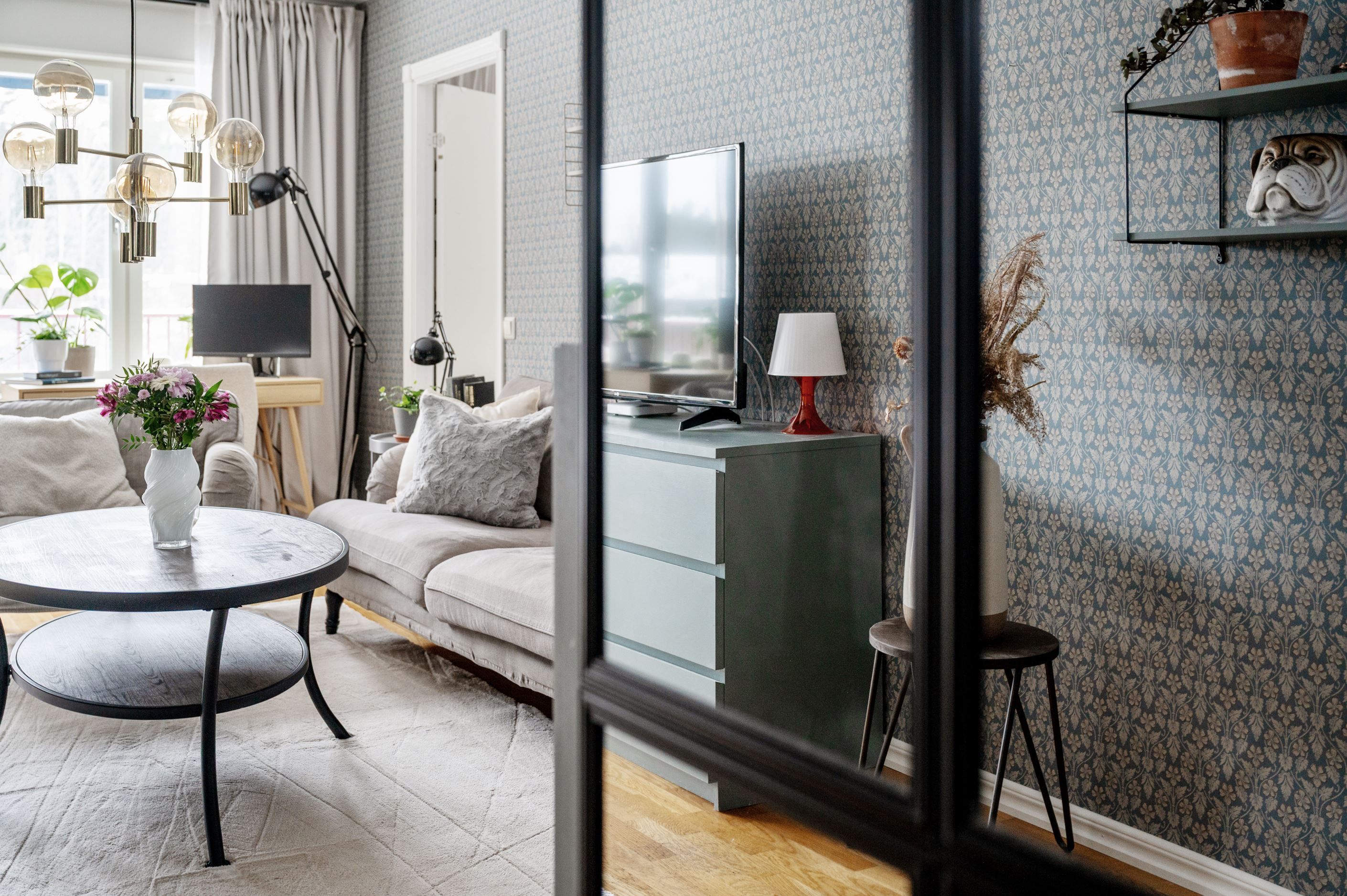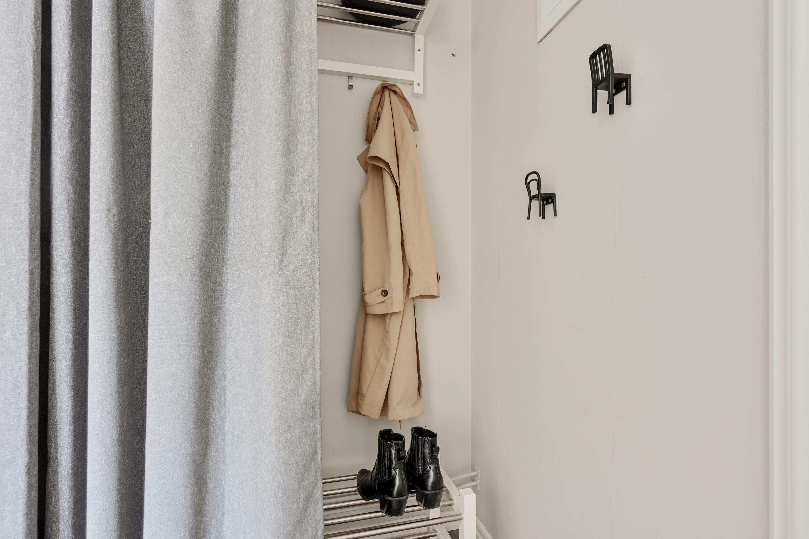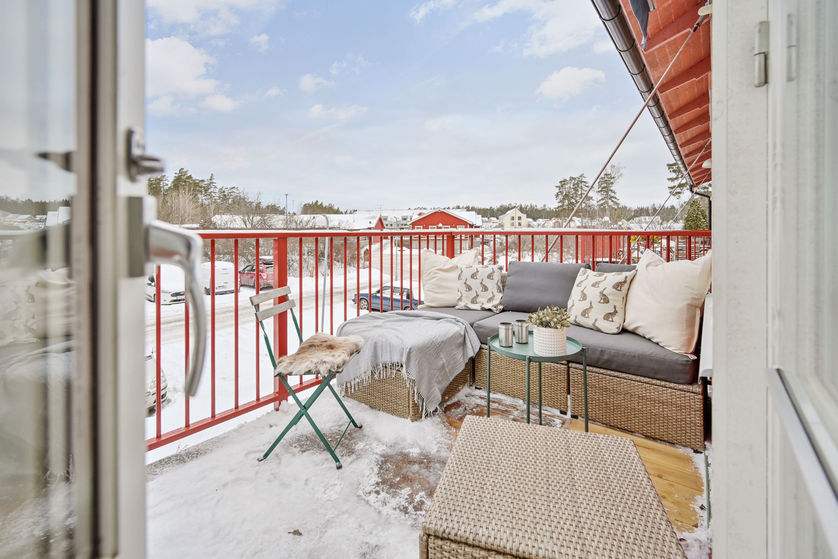 Väl innanför ytterdörren möts man av en rymlig hall med slitstarkt klinkergolv och gott om plats för avhängning. Planlösningen är genomtänkt och inbjudande med ett ljust vardagsrum som naturlig samlingspunkt. Härifrån nås balkongen. De stora fönsterpartierna ger ett fint ljusinsläpp och skapar en luftig och trivsam känsla.