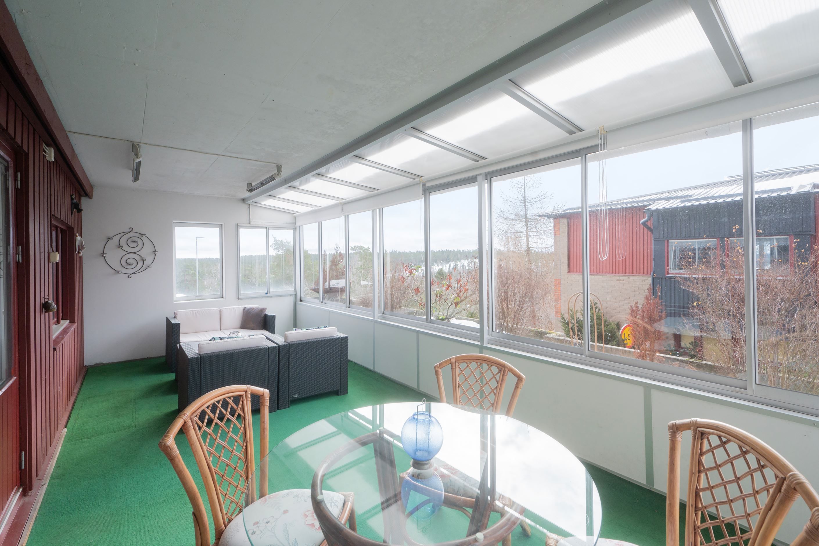 Här bor du lagom högt upp i huset med en fantastisk, stor inglasad balkong/terass om 21kvm i soligt läge. Balkongen är ett extra vardagsrum stora delar av året och rymmer utan problem både soffgrupp och matplats. Läget är lugnt och insynsskyddat, och utsikten skapar en rofylld inramning. Detta är en underbar plats för morgonkaffet, middagar med vänner eller en stilla stund i kvällssolen.