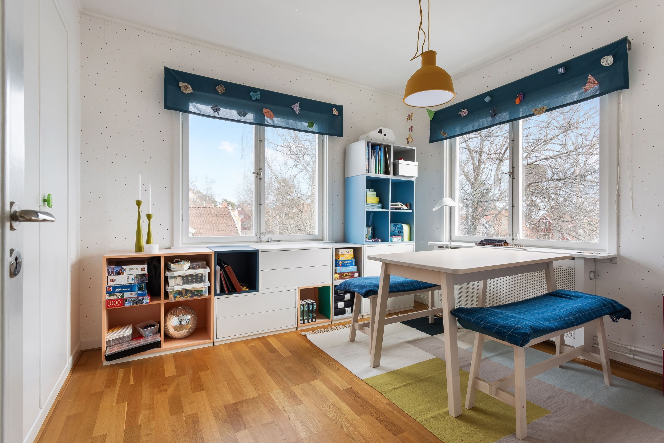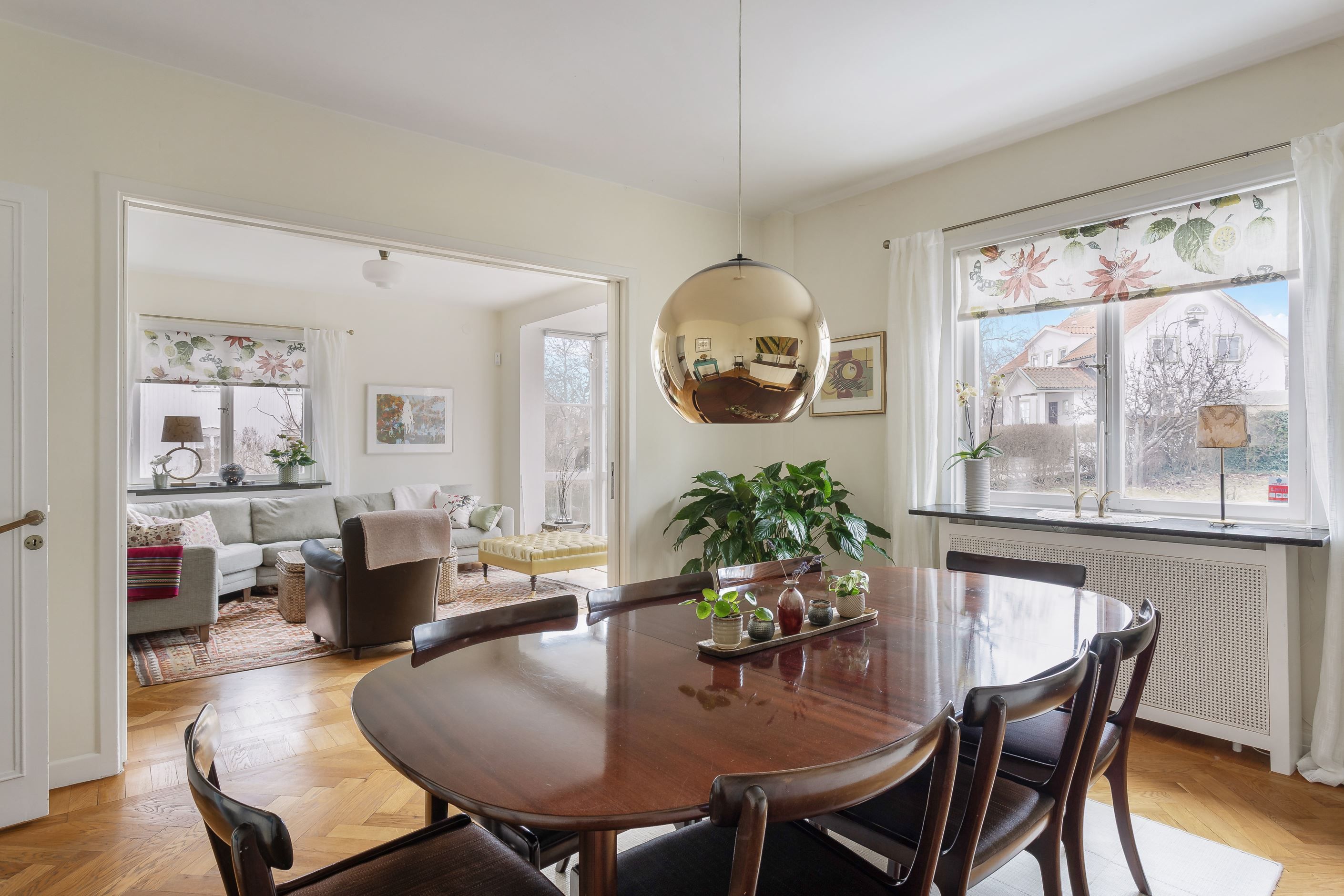 Välhållen Västerledsvilla, ritad av arkitekt och professor Uno Åhrén, i eftersökta kvarter med varm atmosfär och ljusa luftiga sällskapsytor som trivsamt öppnar upp mot altan och tomt. Härlig familjevilla om tot. 277 kvm med vardagsrum och matsal i fil, rymligt kök, fem sovrum, bra våtrum samt gott om förvaringsytor. Löpande renoverad genom åren, se säljarens åtgärdslista. Barnvänlig skyddad och lättskött hörntomt i bästa S/V-läge som blommar vackert från vår till höst. Synnerligen välbelägen med närhet till T-bana, skola och rekreation. Ca 10 minuters pendelavstånd till City.