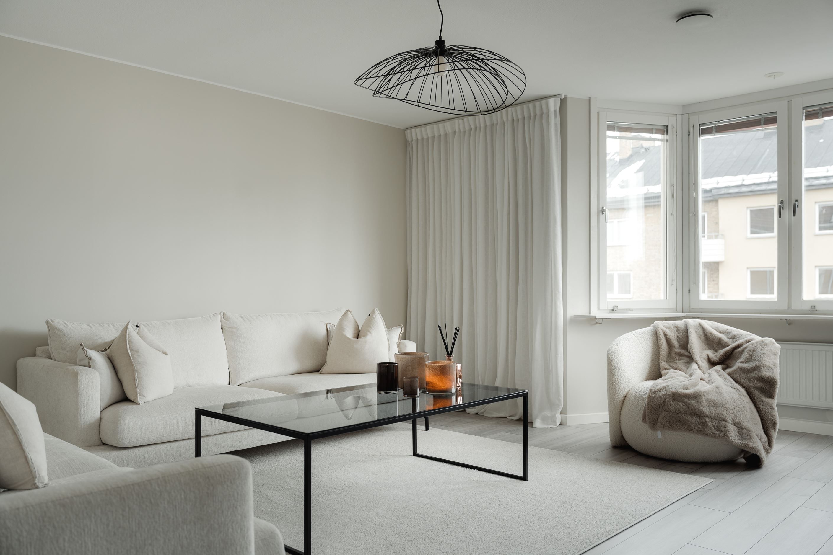 Den genomtänkta renoveringen gör att lägenheten känns både fräsch och inbjudande, vilket skapar en perfekt balans mellan stil och funktionalitet. Bostaden har ett rymligt kök som går i vinkel med matplats. Luftigt vardagsrum med plats för soffmöblemang samt ett rymligt sovrum. Helkaklat stilfullt badrum med både tvättmaskin och torktumlare samt en praktisk klädkammare.