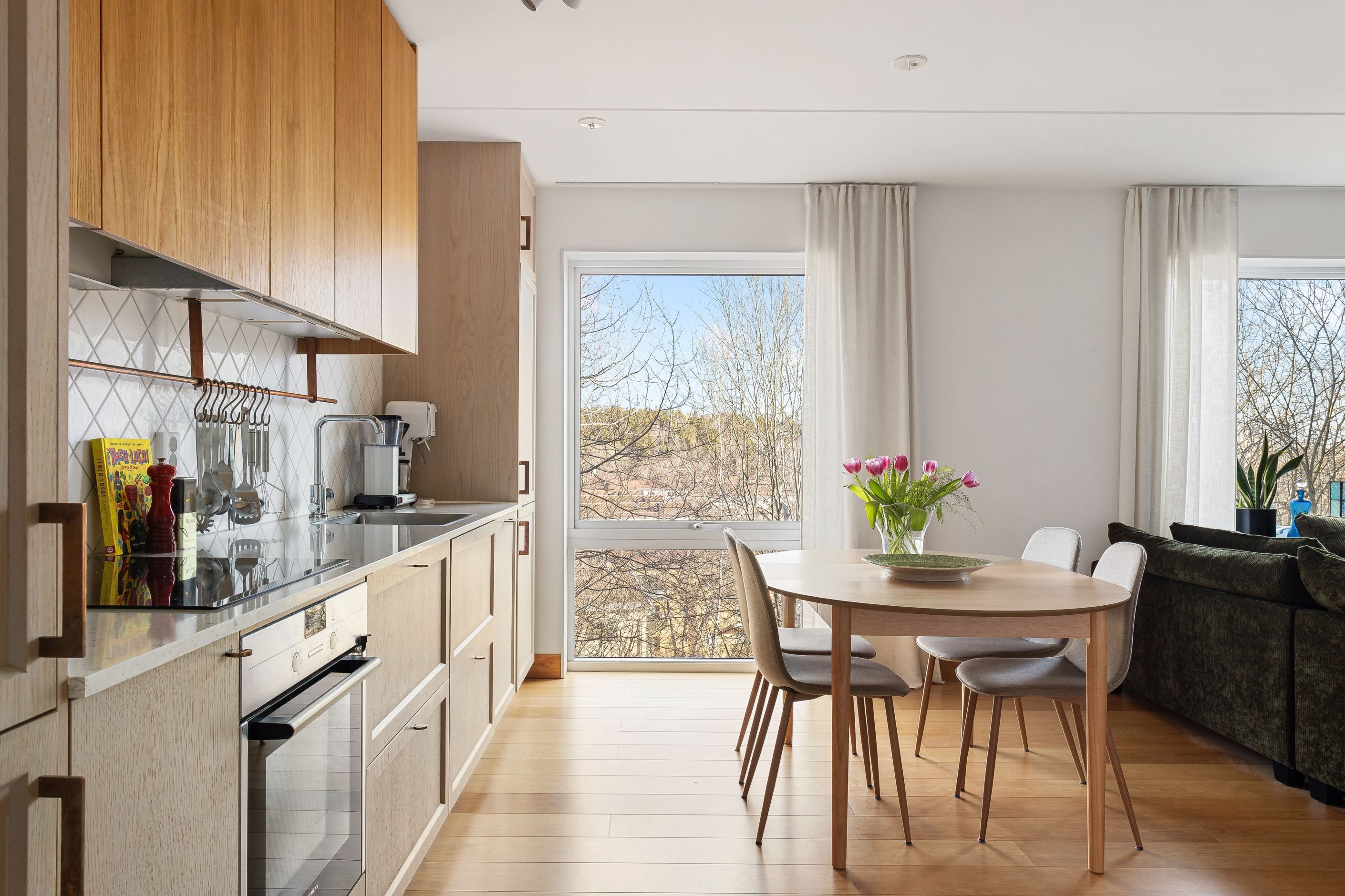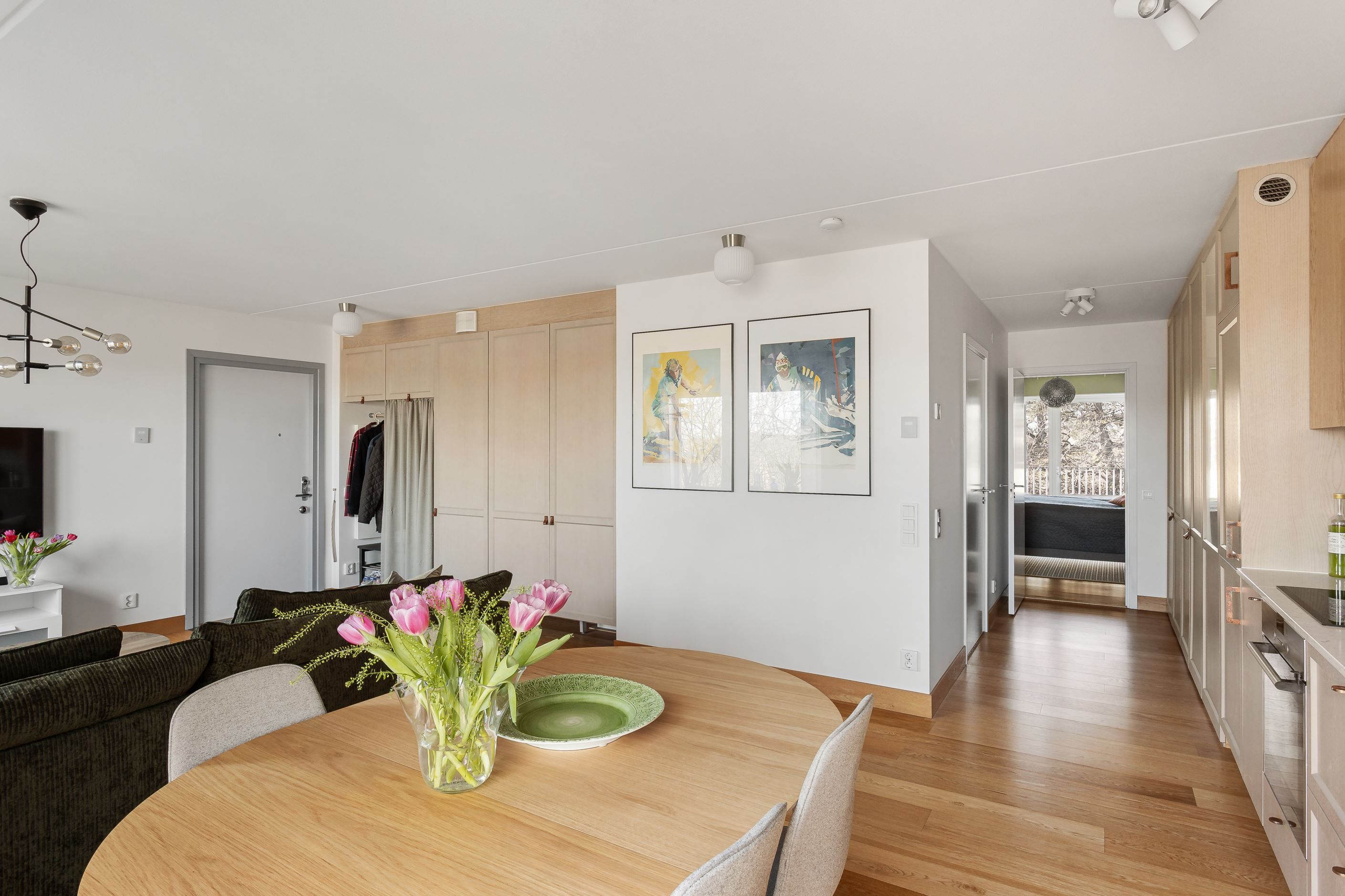 Välkomna till denna fantastiska lägenhet på 56 kvm med solig balkong i sydvästläge. Trevligt planerad med bra sociala ytor och öppen planlösning. Lättmöblerad och ljus sällskapsdel med stora fönsterpartier. Rymligt sovrum med plats för dubbelsäng. Exklusiva materialval och gott om förvaringsmöjligheter. I huset finns det hiss som enkelt tar dig upp till föreningens gemensamma takterrass.