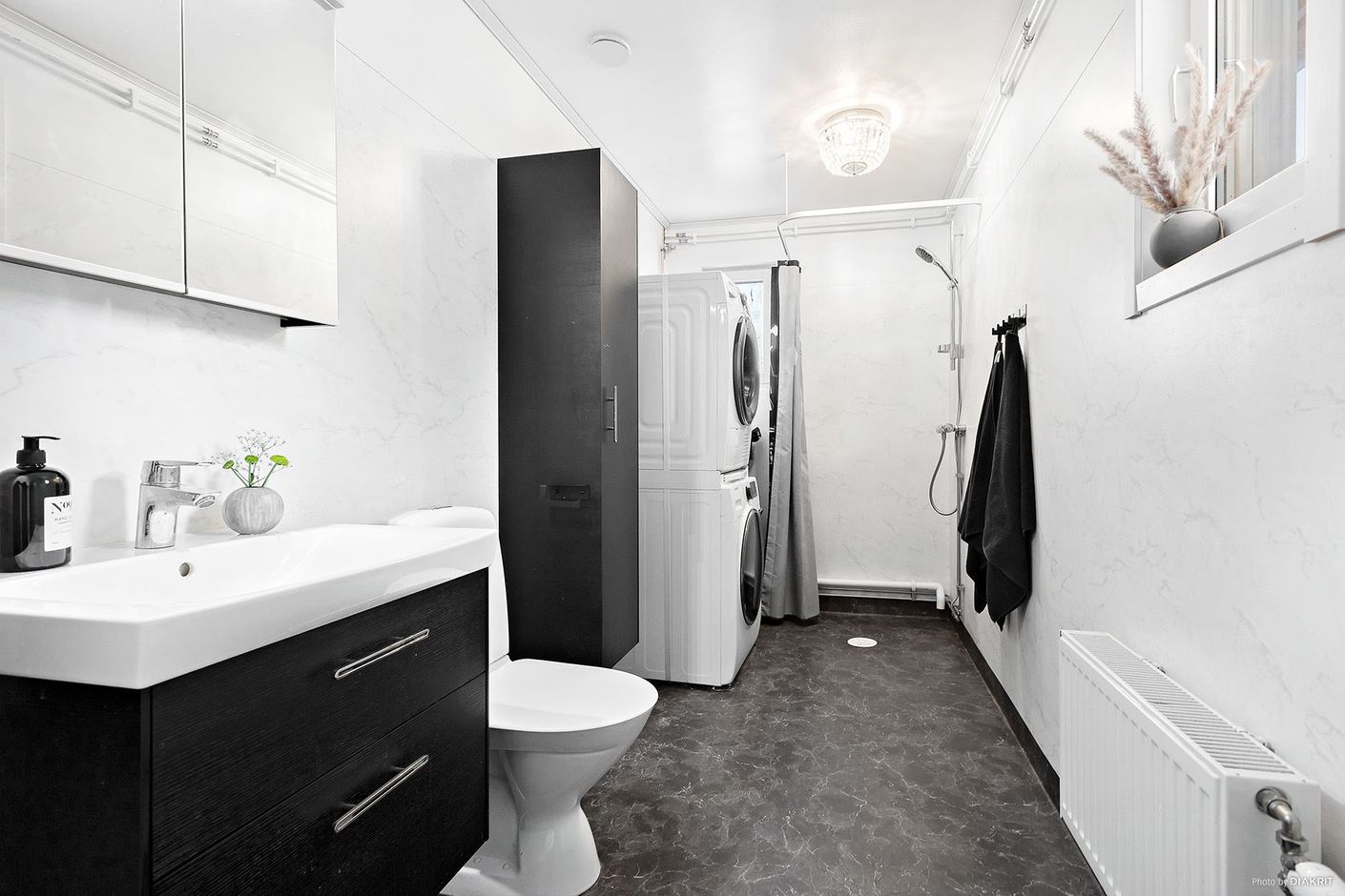 Vardagsrummet och de två sovrummen har genomgående fina ytskikt, vilket bidrar till lägenhetens ljusa och fräscha känsla. Badrummet renoverades 2020 av firma och är utrustat med både tvättmaskin och torktumlare, vilket underlättar vardagen. På entréplan finns även en mysig uteplats, perfekt för morgonkaffet eller kvällsgrillen.