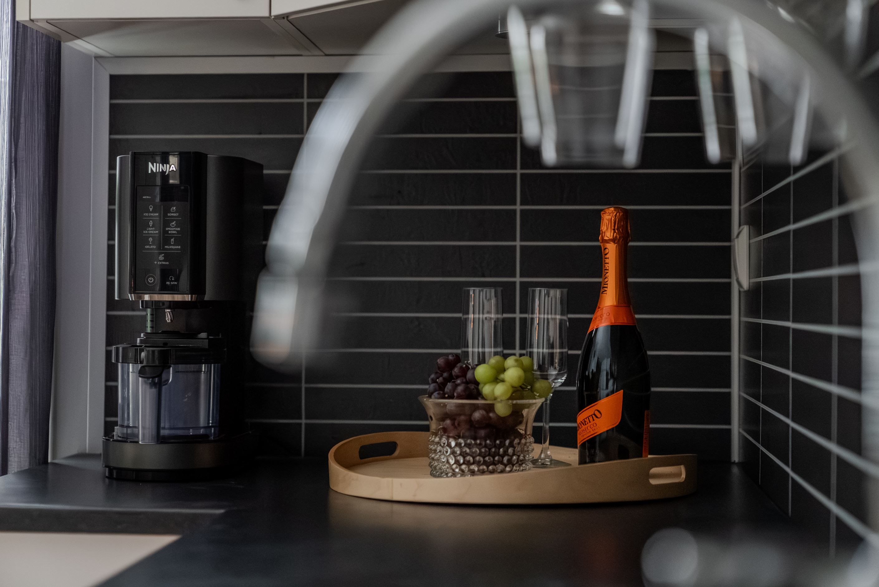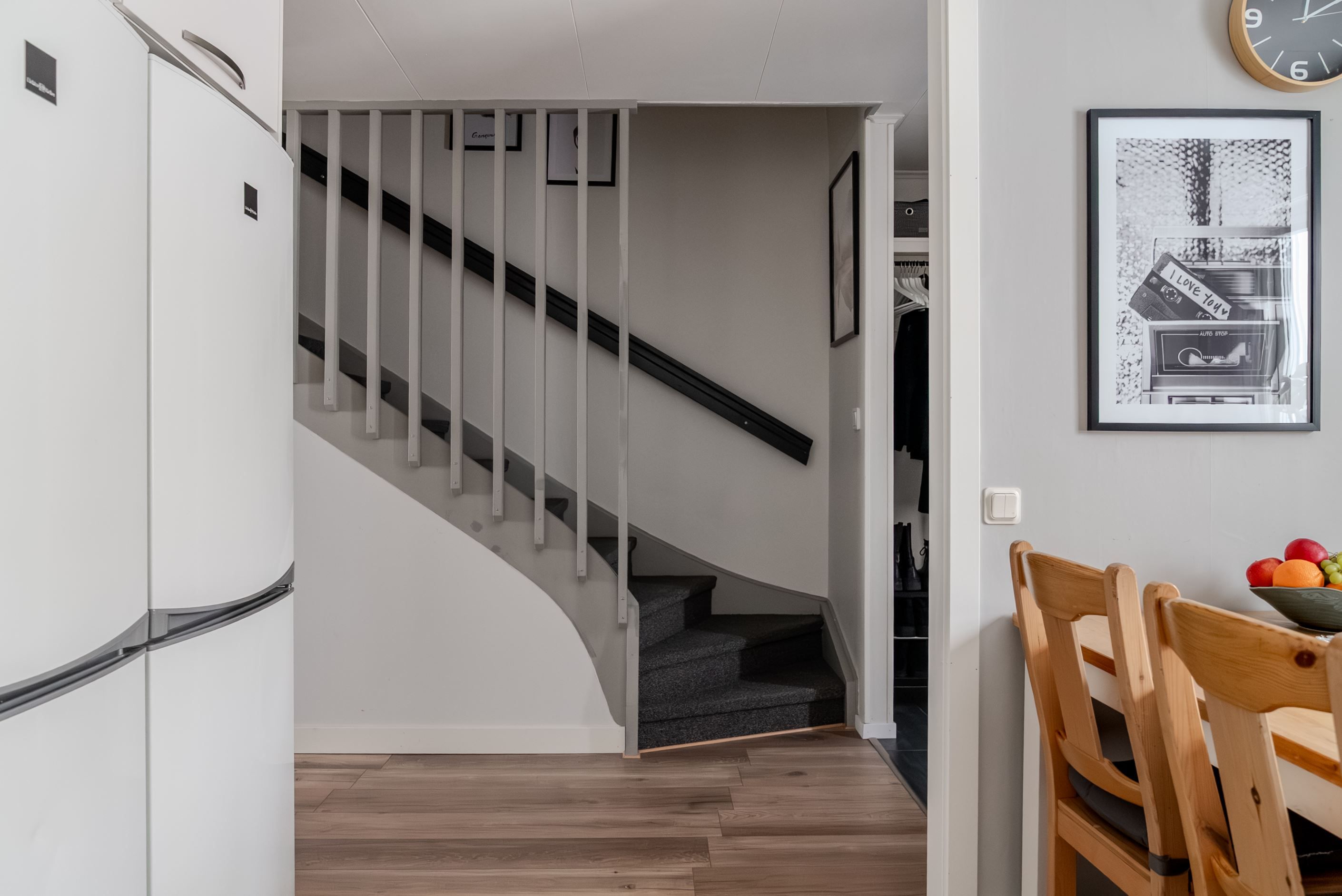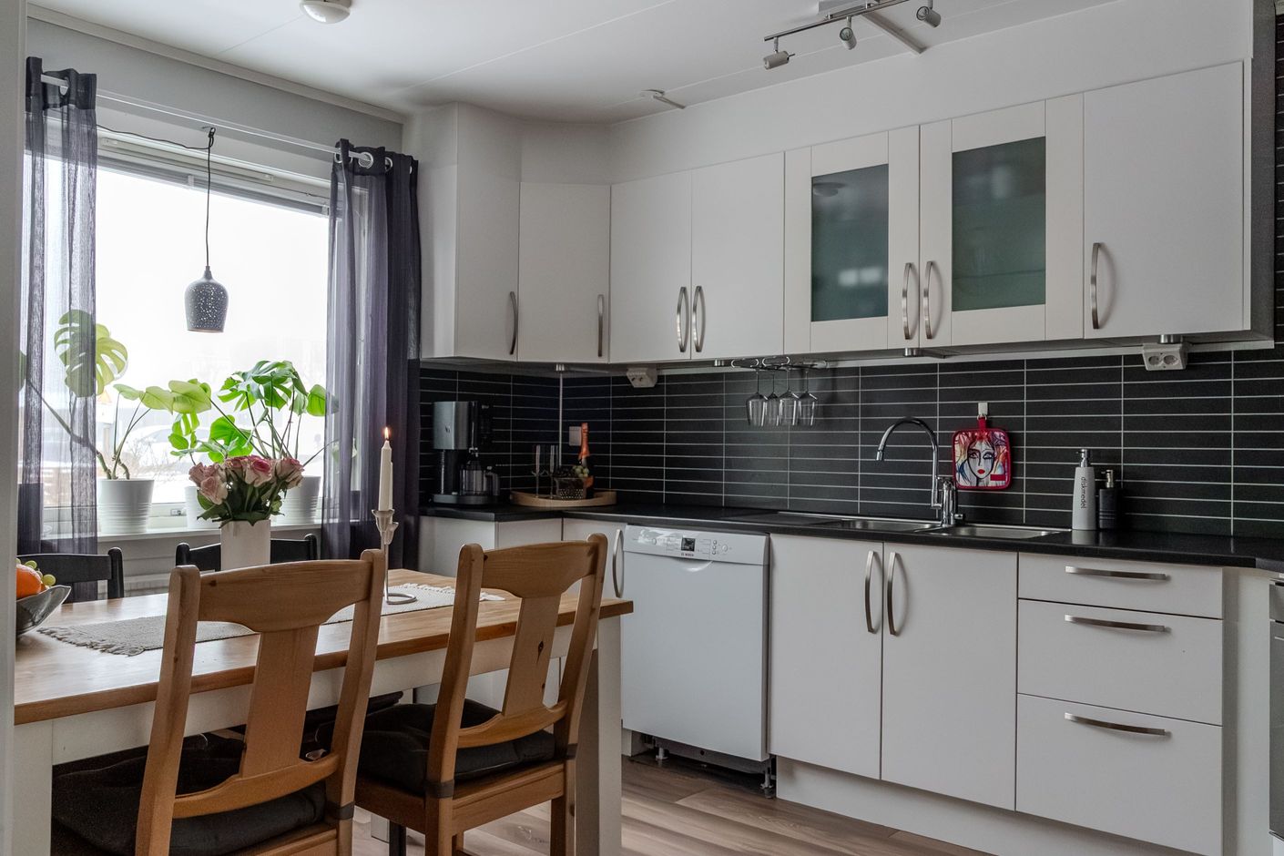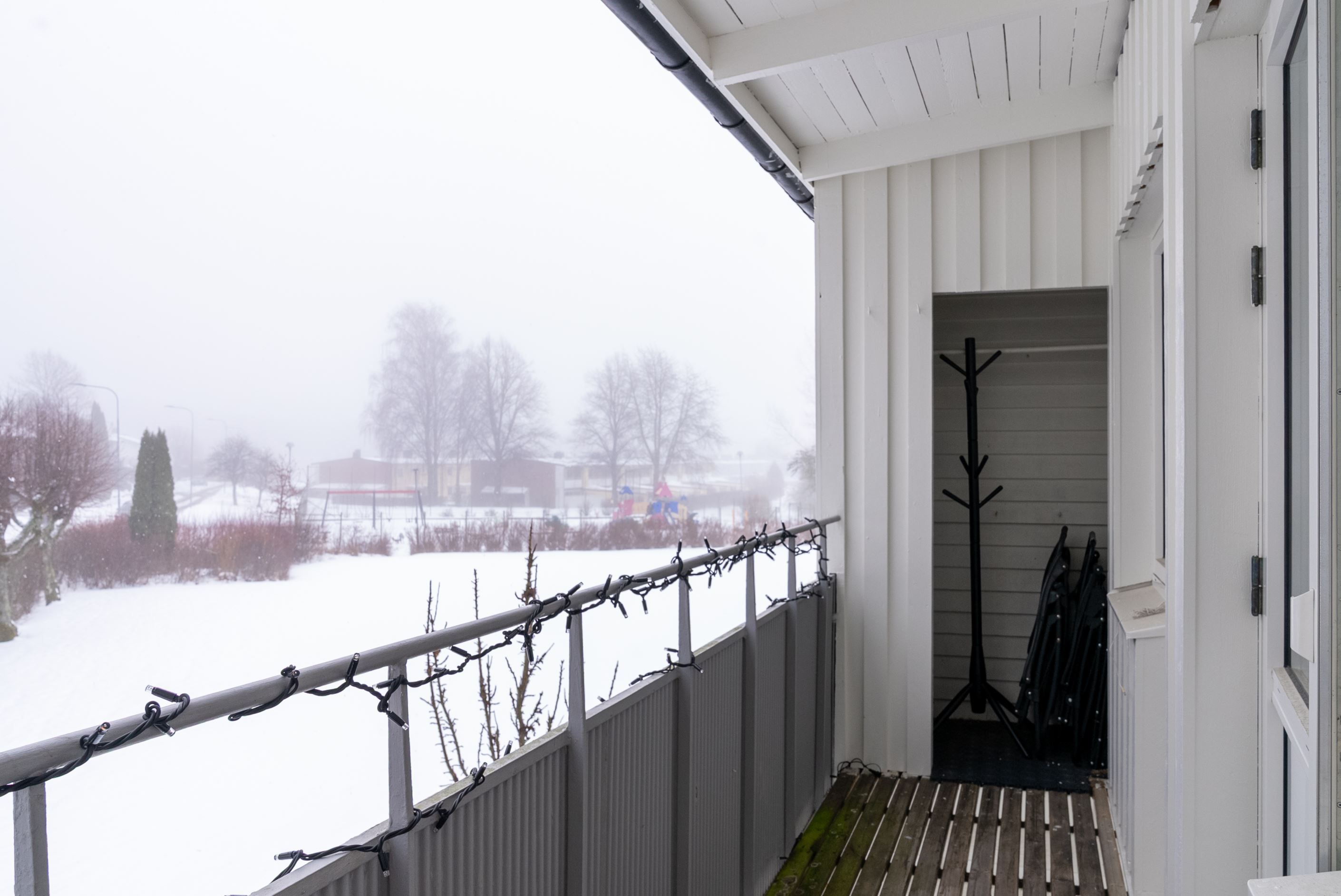 Bostaden erbjuder ett stort och ljust kök med gott om arbetsytor och plats för sociala middagar. Den härliga uteplatsen ger en naturlig förlängning av hemmet under sommarhalvåret, medan balkongen på ovanvåningen skapar ytterligare en plats att koppla av och njuta av omgivningen.