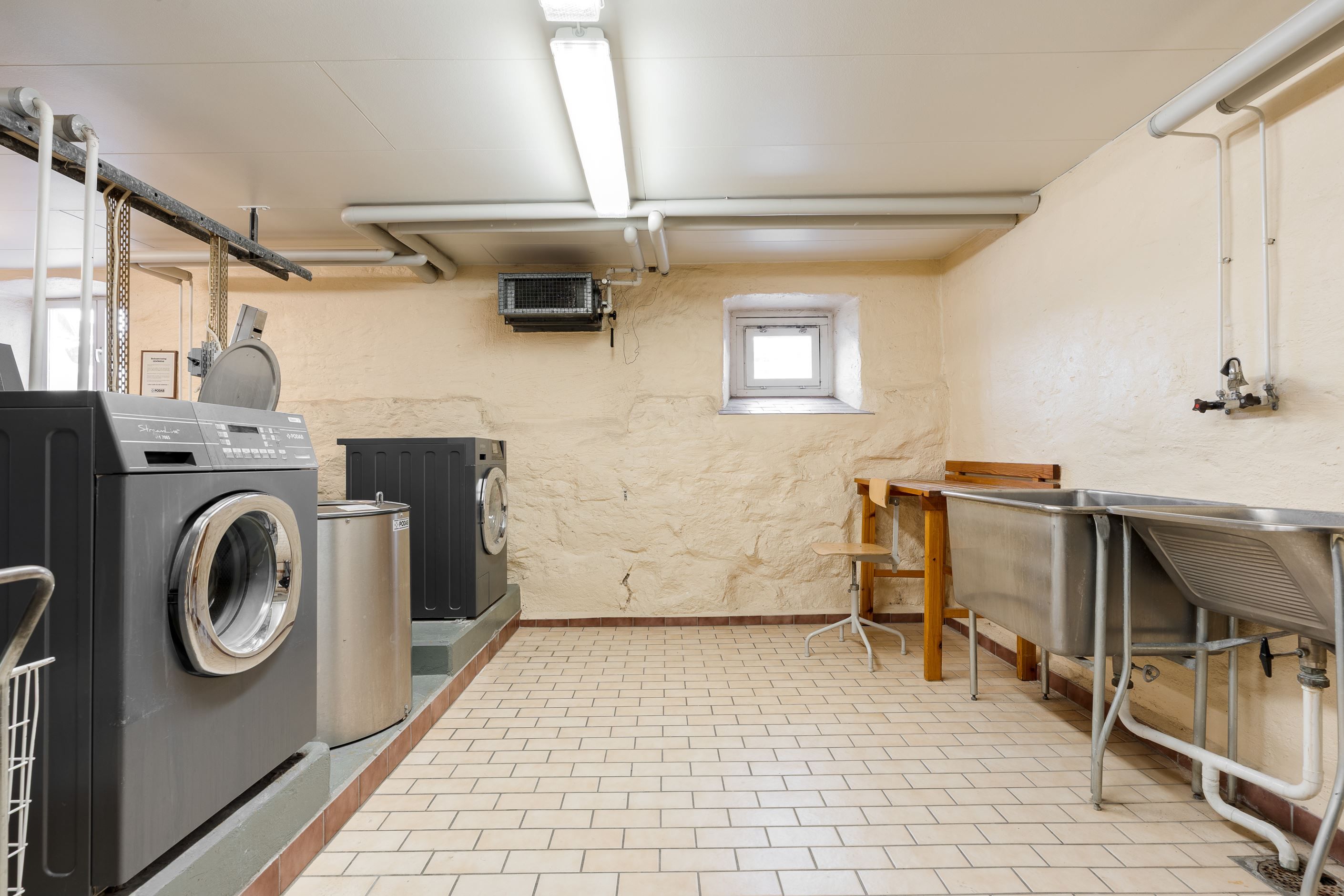 Sovrummet är rofyllt med utrymme för dubbelsäng och förvaring i garderober. Badrummet är utrustat med badkar, handfat och tvättmaskin, vilket ger en praktisk vardag.