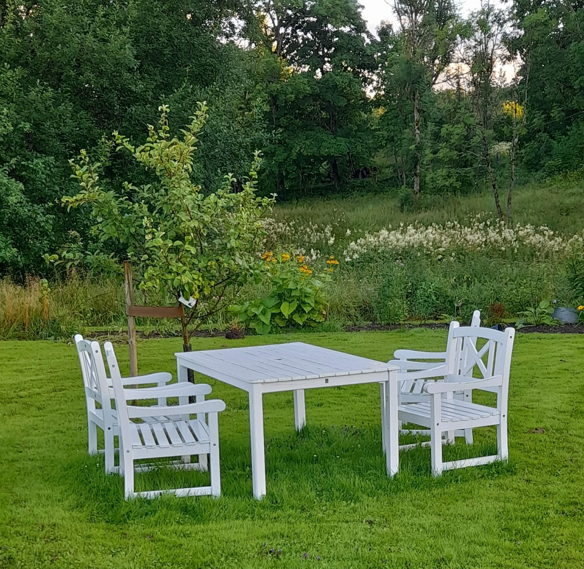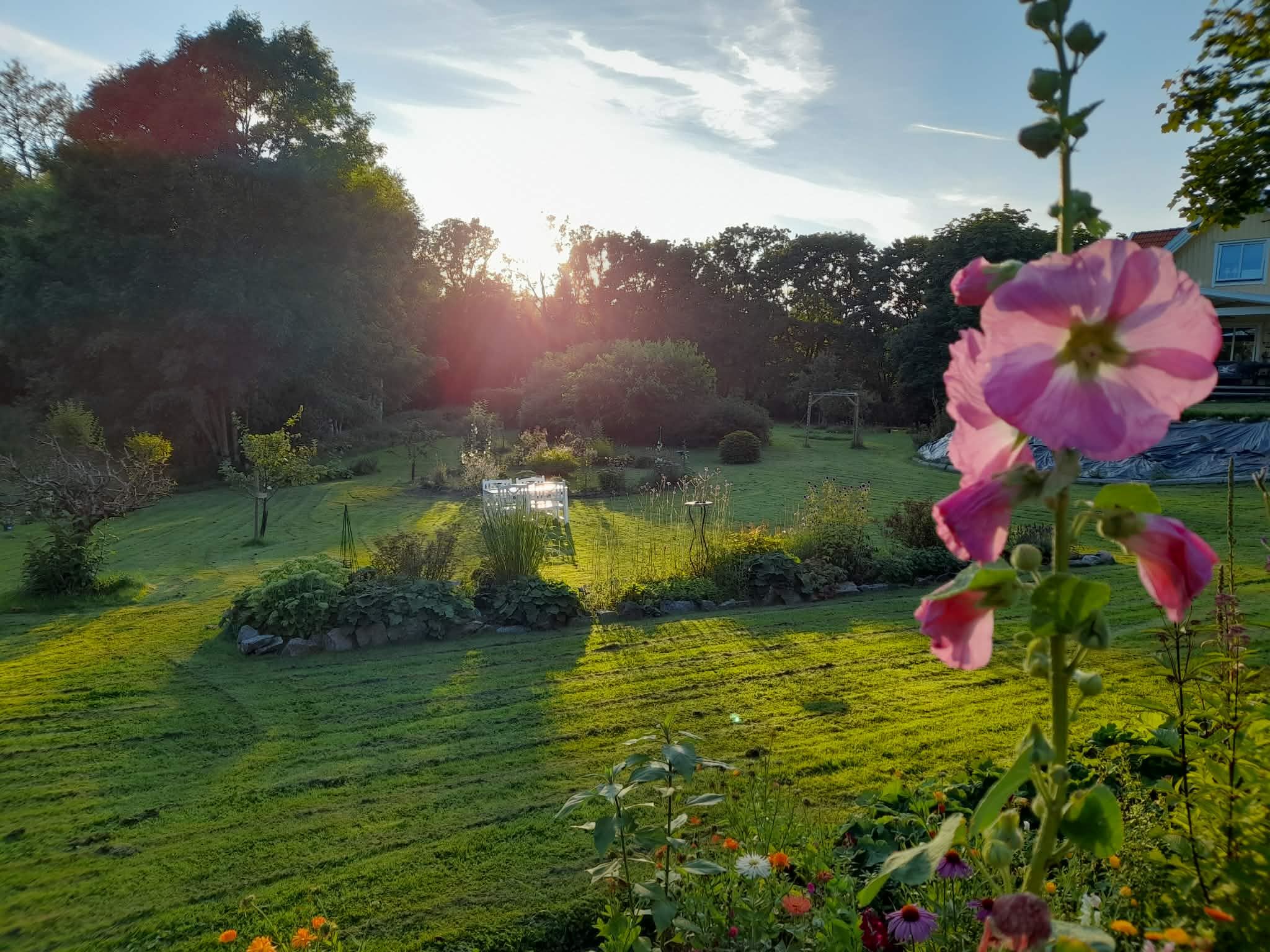 Den friköpta marken om 7 ha rymmer både trädgård, gräsmatta och natur. Här finns fruktträd, bärbuskar och en härlig altanmiljö med soldäck, takad del och inglasat uterum – perfekt för långa sommarkvällar.