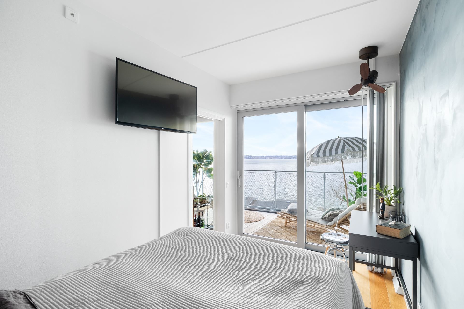 Sovrummet är rofyllt placerat och bjuder även det på en vacker utsikt över Vättern – här vaknar du till en storslagen vy varje morgon. I anslutning finns en praktisk walk-in closet med generösa förvaringsmöjligheter.