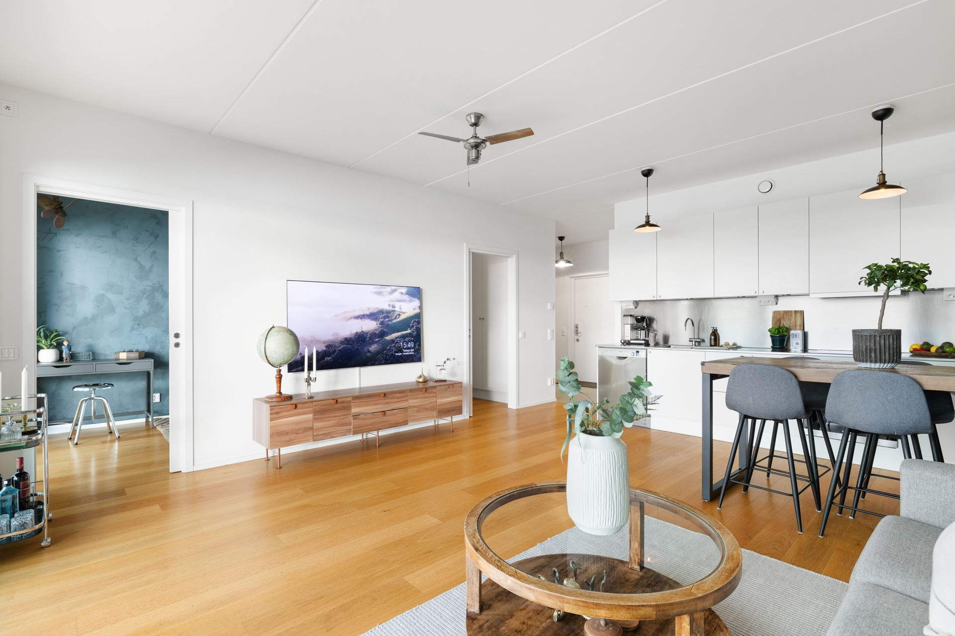 Föreningens namn, Solsidan, känns knappast slumpmässigt när du blickar ut från vardagsrummet och möts av denna hänförande vy där du får njuta av årstidernas skiftningar – från vårens första solstrålar till höstens färgsprakande vyer. Här får namnet verkligen sin rätt. Bostaden är belägen i ett modernt hus färdigställt 2018, med alla bekvämligheter som dagens boende kräver. Från garaget tar du enkelt hissen hela vägen upp till lägenheten.