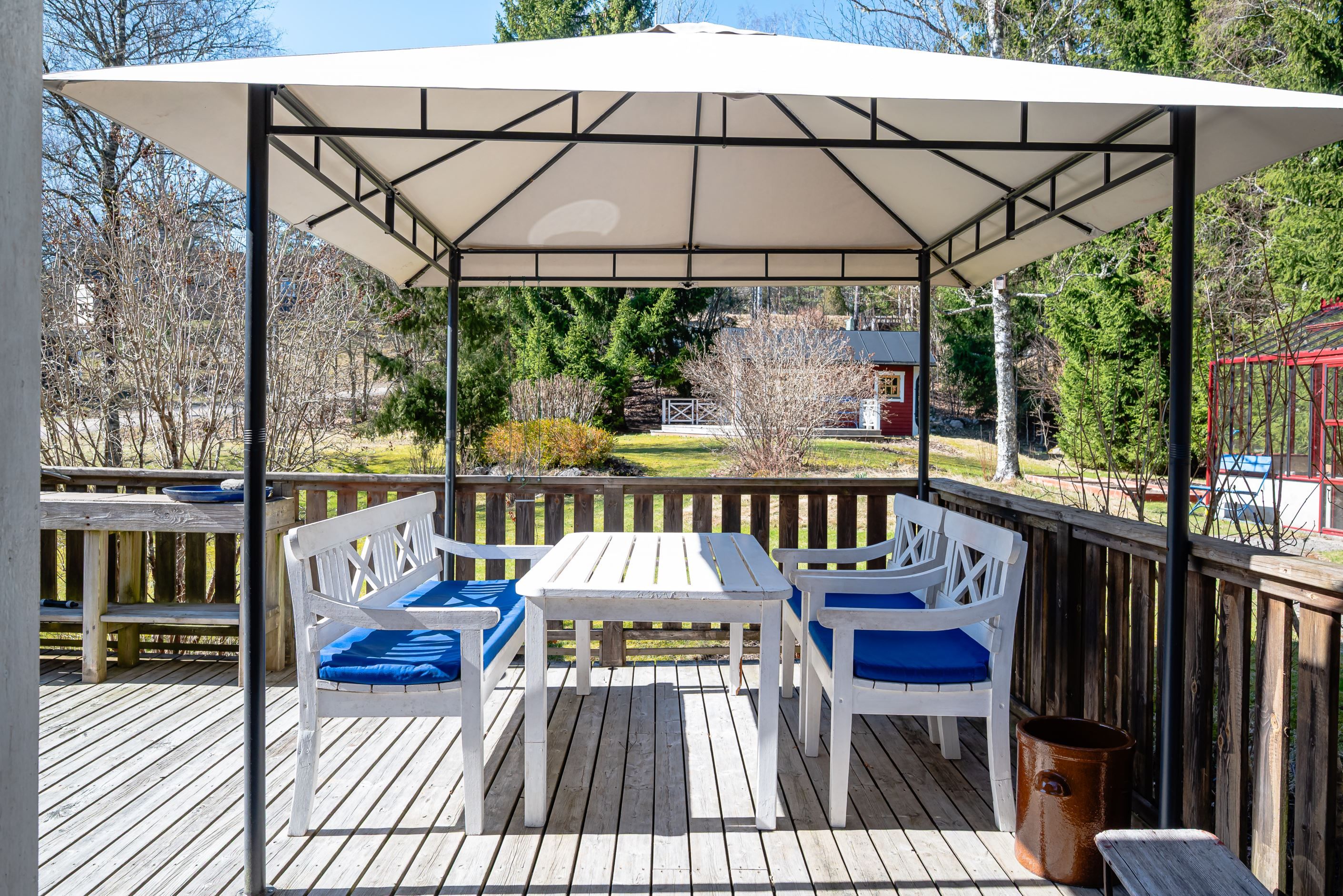 En mycket charmig fastighet med en prunkande trädgård, ett fint växthus, bra gäststuga och lite sjöutsikt från den skyddade farstubron. Runt huset går en altan som fångar upp solens alla lägen och bakom huset växer en hög häck som skyddar mot grannens insyn. Området präglas av dess vackra omgivningar och fina badsjöar, Marvikarna erbjuder både härliga bad, fina kanotturer och härliga vandringsleder. Från Svinsjön tar man sig till E20 på ca 10 minuter och vid Läggesta kan man ta snabbtåget till Stockholm på ca en halvtimme. Till Mariefred tar man sig på drygt 15 minuter, en stad som sprudlar av liv sommartid, annars ligger Gnesta med pendeltåg och affärer 20 minuter åt andra hållet. Varmt välkomna till Svinsjö gård!