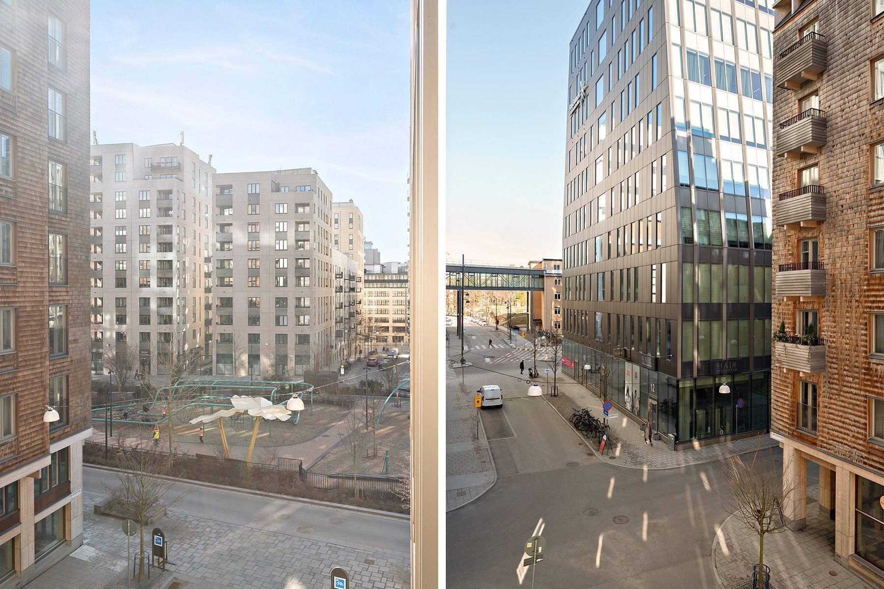 Utanför porten färdigställs Nya Norra Stationsparken och sträcker sig vidare mot Hagaparken. Samtidigt anläggs tunnelbanans gula linje inom cirka 100 meter, en tydlig framtidsfaktor som ytterligare stärker läget.