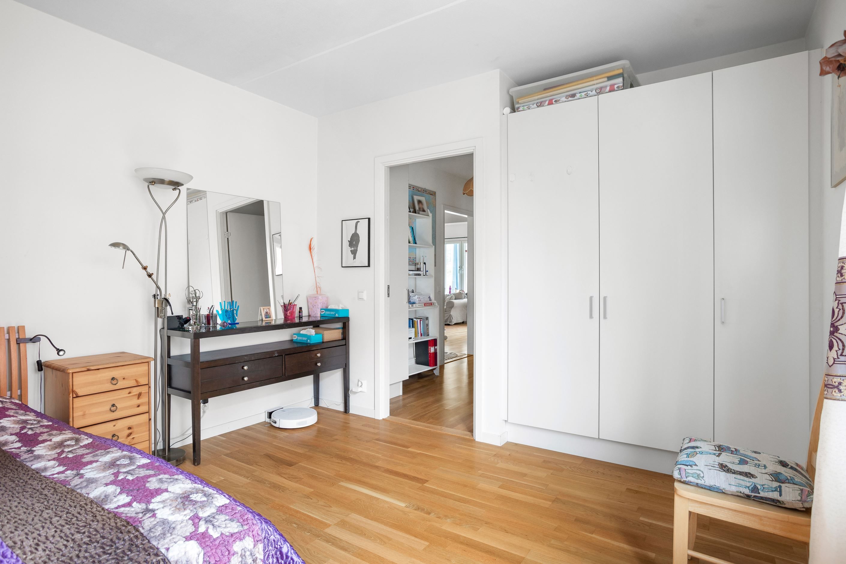 Lägenheten erbjuder ett helkaklat badrum med golvvärme och goda förvaringsmöjligheter. Stort sovrum med plats för dubbelsäng samt ytterligare ett rum som passar som sovrum eller kontor. Till lägenheten hör även ett rymligt förråd.