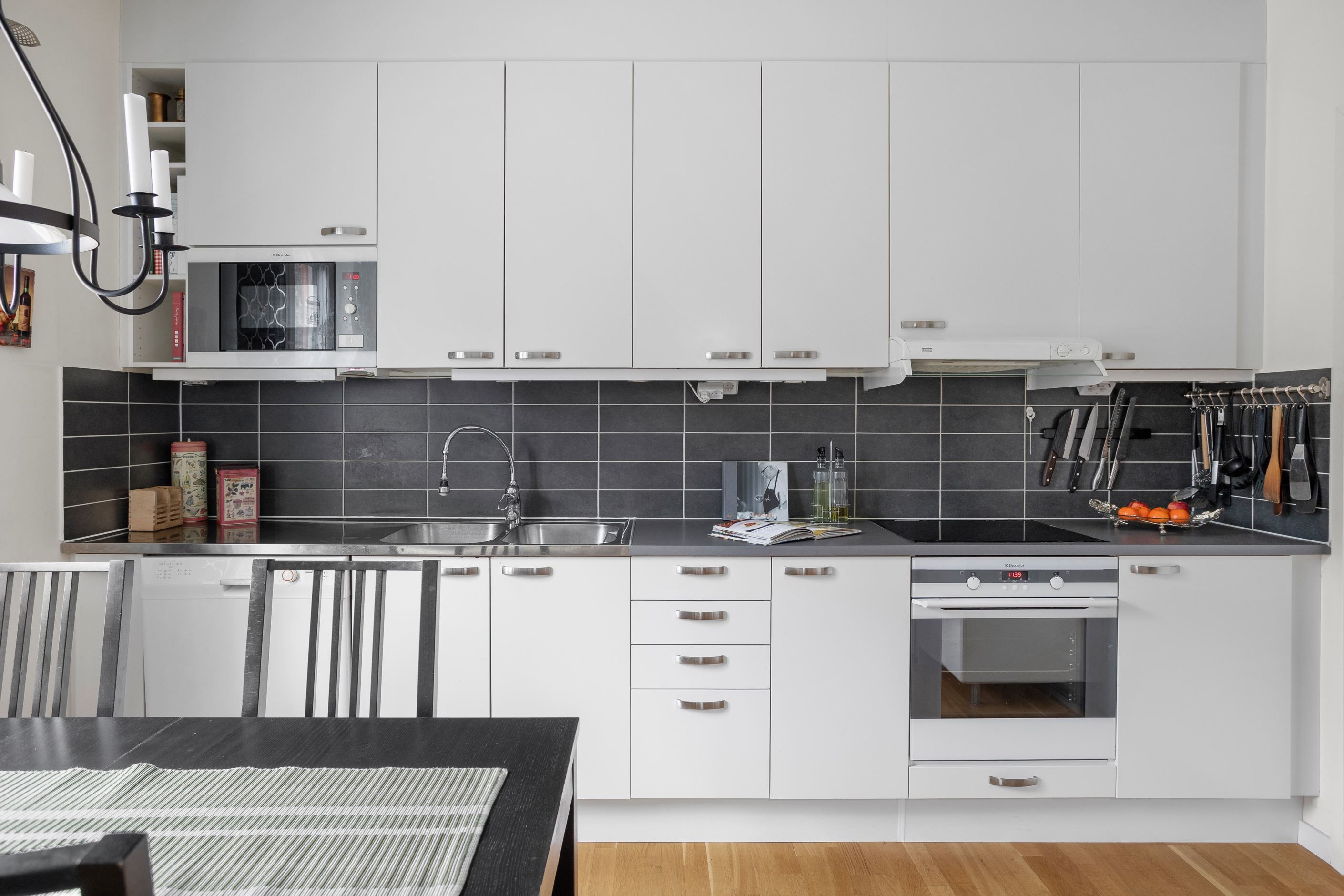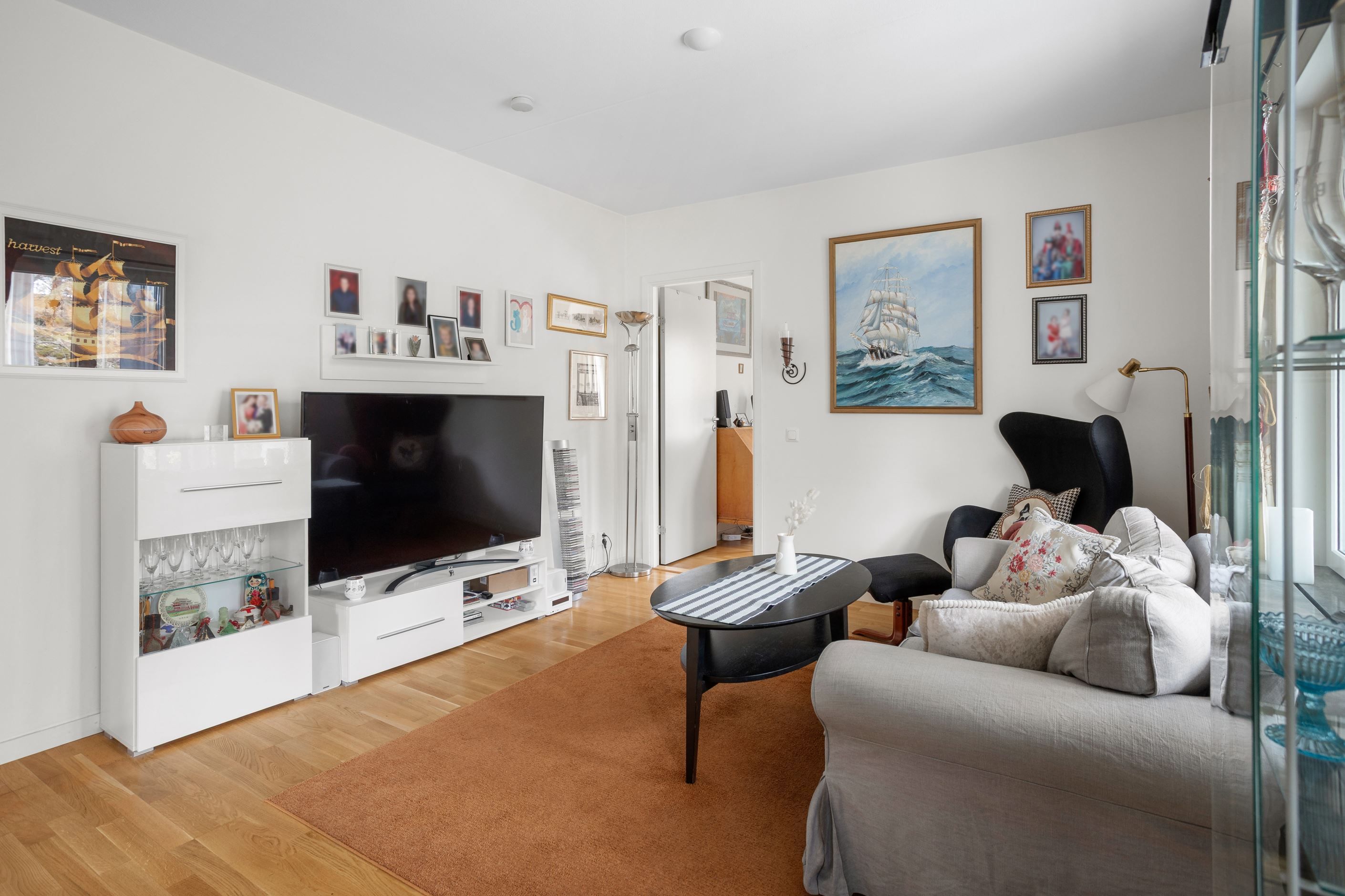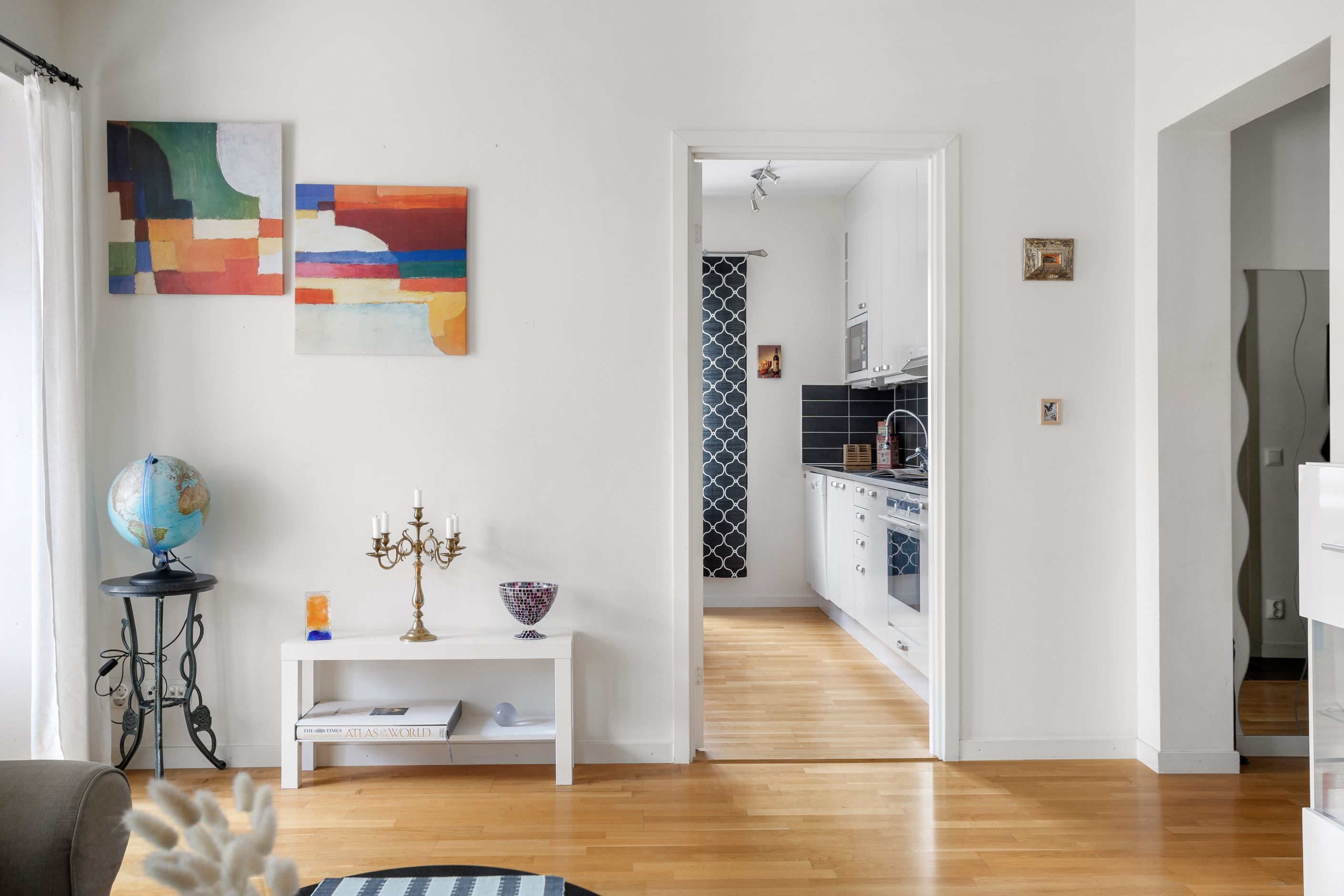 Välplanerad trea med bra rumsindelning mellan kök och vardagsrum. Från vardagsrummet nås en rymlig balkong i soligt läge.