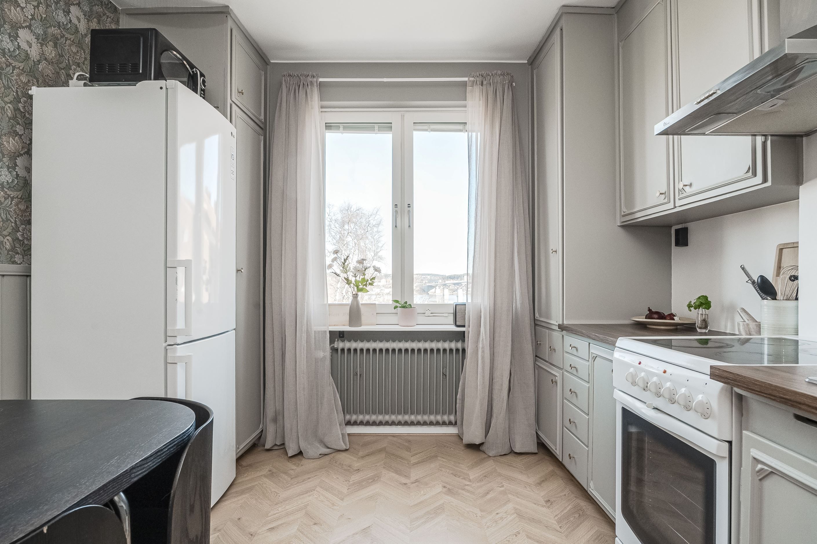 Bostaden har genomgått en ytskiktsrenovering under 2023/2024 där golv, väggar och kök fått ett modernt och enhetligt uttryck. Även badrummet är renoverat under samma tid, vilket ger ett fräscht och bekymmersfritt boende. Tack vare generöst ljusinsläpp och en tilltalande takhöjd upplevs lägenheten som både ljus och luftig. Från den trivsamma balkongen kan du njuta av utsikten över både Södra Berget och Sundsvallsbron.