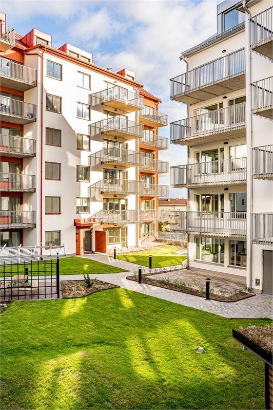 Brf Sandbyhofs Gård är omgivet av hus som omsluter den gemensamma innergården. Här hittar du gräsytor, häckar, plattbelagda gångar, träd och belysta planteringar som skapar en intim och trivsam miljö. De kök som är diskret avskärmda i öppna planlösningar skapar vackra rumssamband och gör ditt boende ännu mer inbjudande.