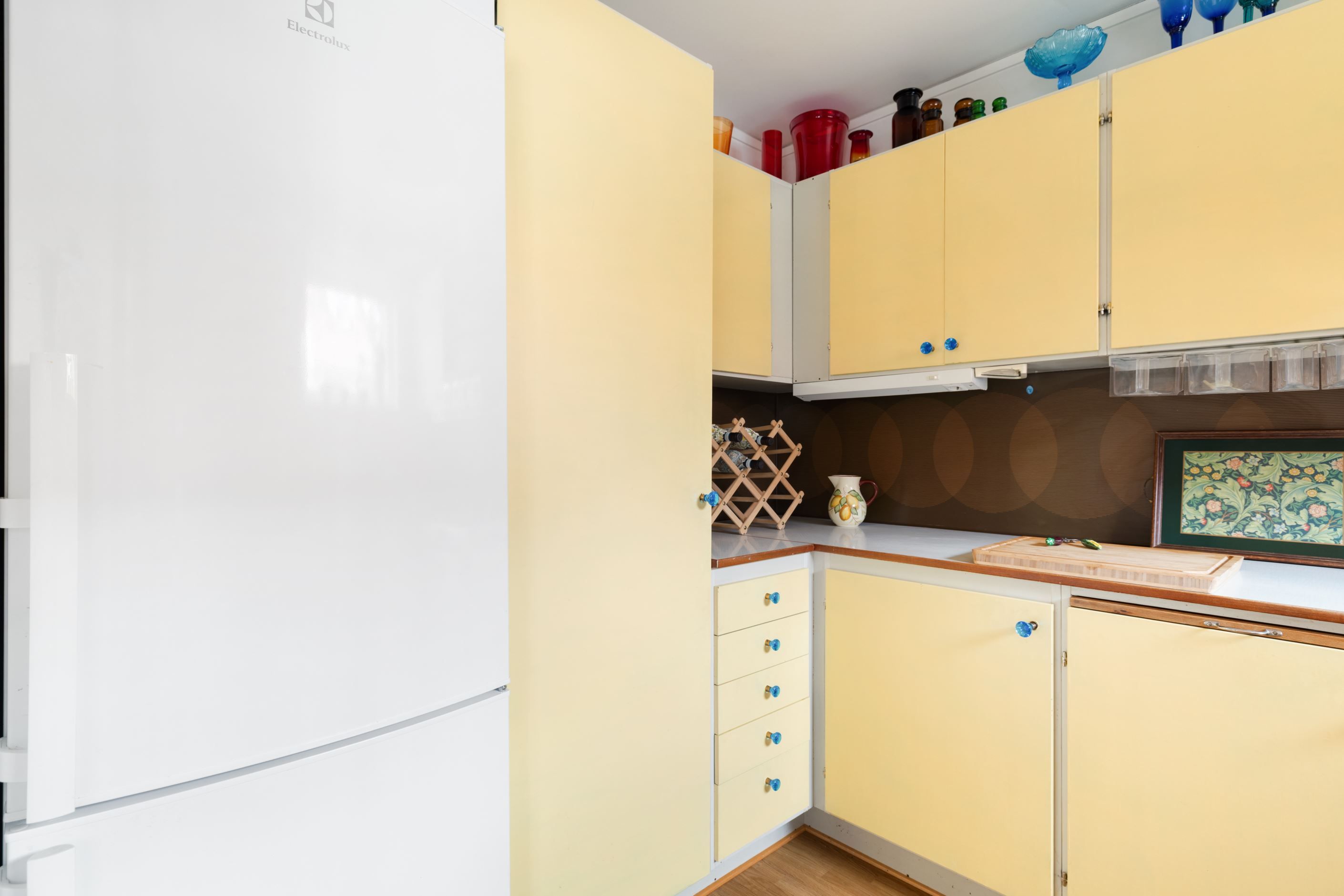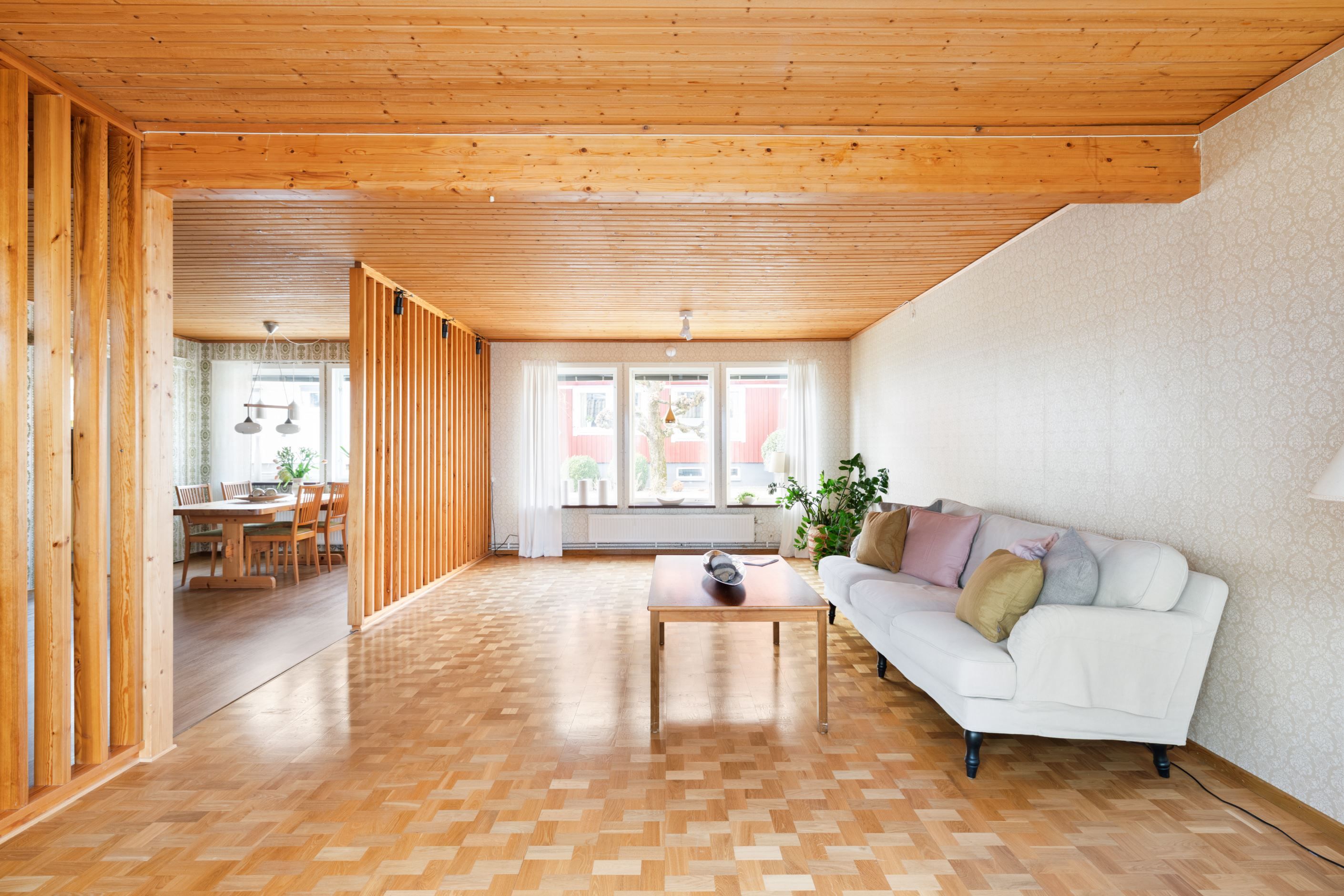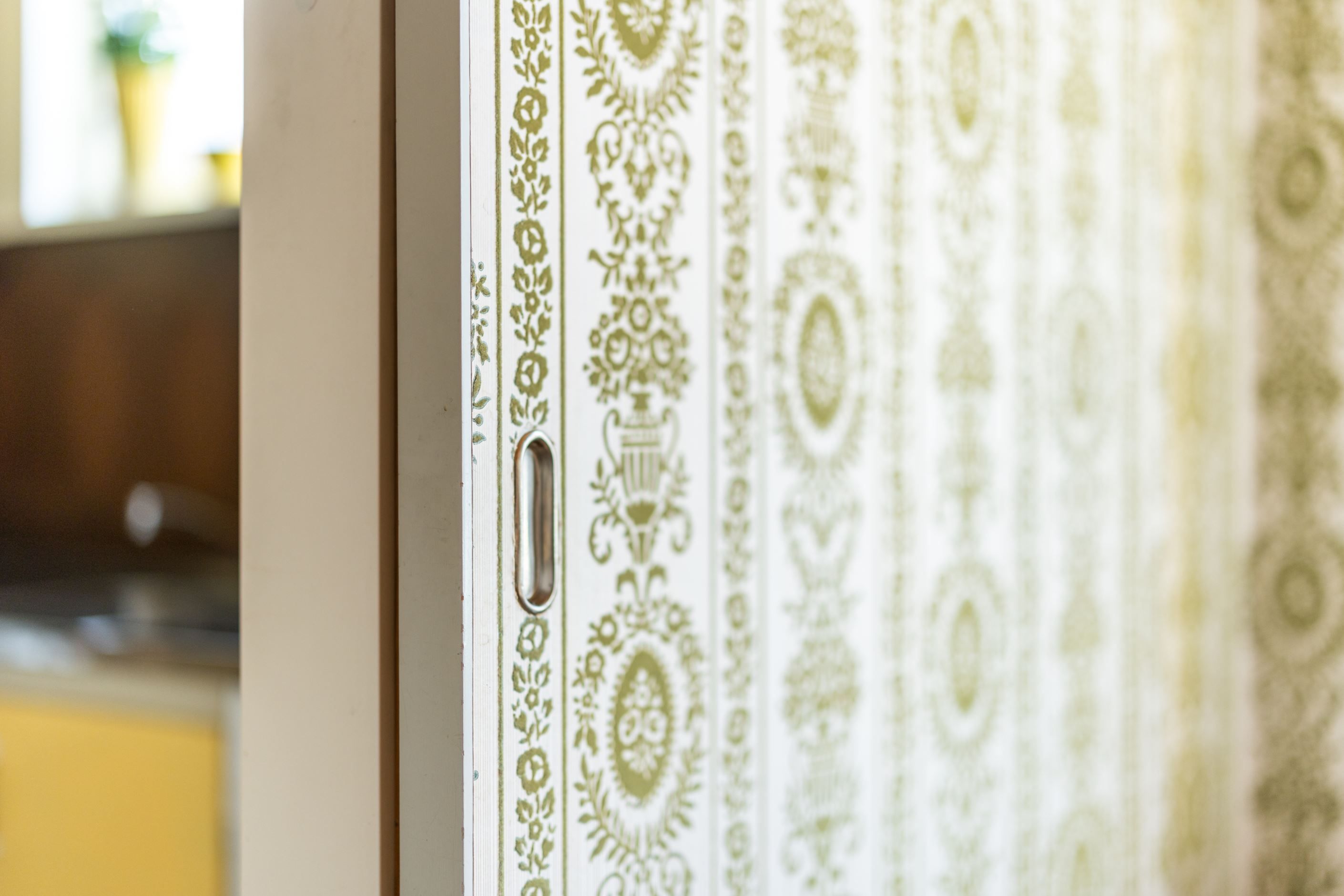 Redan vid första steget in möts du av en atmosfär som är svår att återskapa – mönstrade tapeter, varma toner och vackra parkettgolv samspelar och skapar en genuin och inbjudande känsla. Det är som att kliva in i en tidskapsel, där varje detalj bär på sin egen historia och charm.