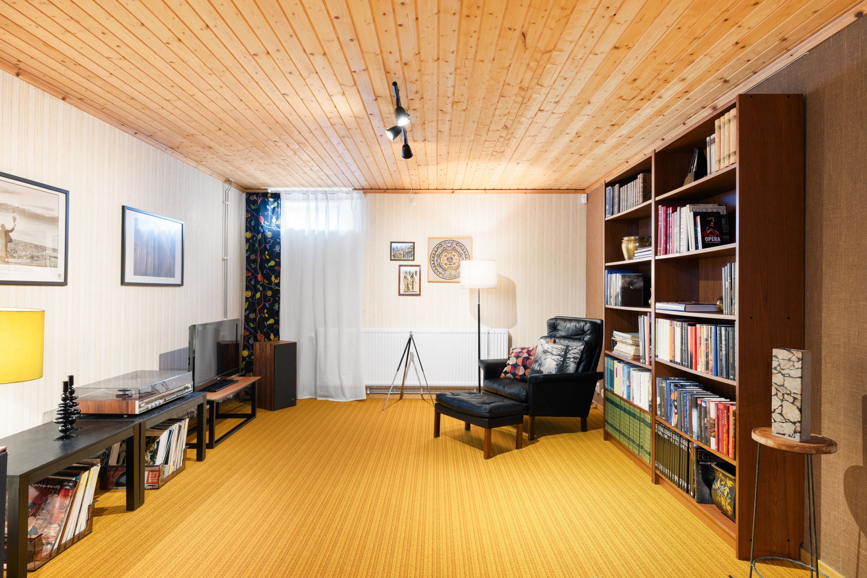 Källarplanet erbjuder goda förvaringsmöjligheter, en tvättstuga samt en mysig gillestuga, perfekt för tv-kvällar, hobbyverksamhet eller som en avskild plats för avkoppling. Här finns även möjlighet att inreda ett badrum med bastu i ett av utrymmena – något flera av grannarna redan har gjort.