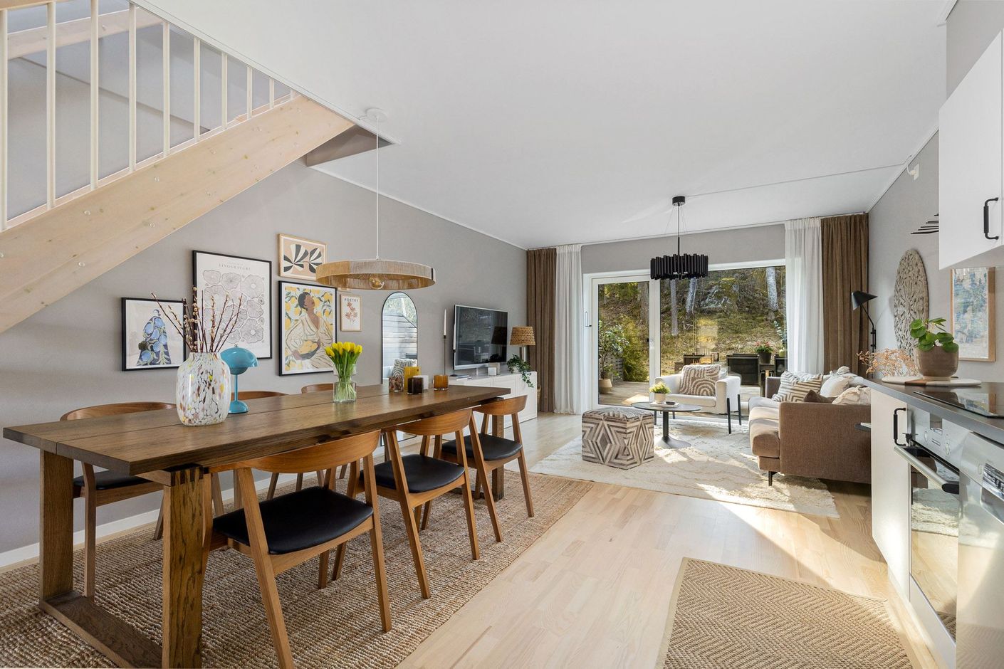 Hemmet präglas av genomtänkt design med en öppen och social planlösning. Stora fönsterpartier släpper in ett generöst ljusflöde, och takhöjden skapar en härlig känsla av rymd. Här bor du i ett av områdets mest attraktiva lägen, med utsikt mot grönskande natur.