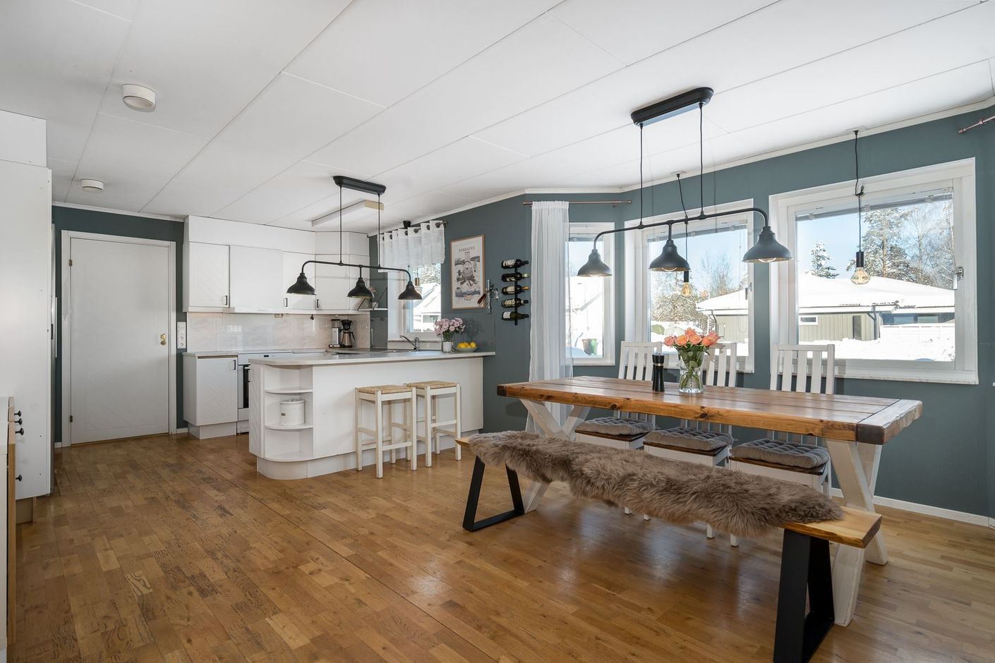 Välkommen till denna fina 1-plans villa med stor sociala ytor. Du erbjuds tre sovrum i bra storlek var av ett sovrum har utgång till altan. Två badrum var av det ena med bastu och det andra renoverat under 2020. Köket är ett socialt kök med gott om bänkyta och rymlig matplats med burspråk. I husets ekonomidel finns tvättstuga, garage och förråd. Detta är ett väldigt fint hus med härliga sociala ytor och fin altan i vinkel som ger både insyns och vindskydd. Varmt välkommen att anmäla intresse!