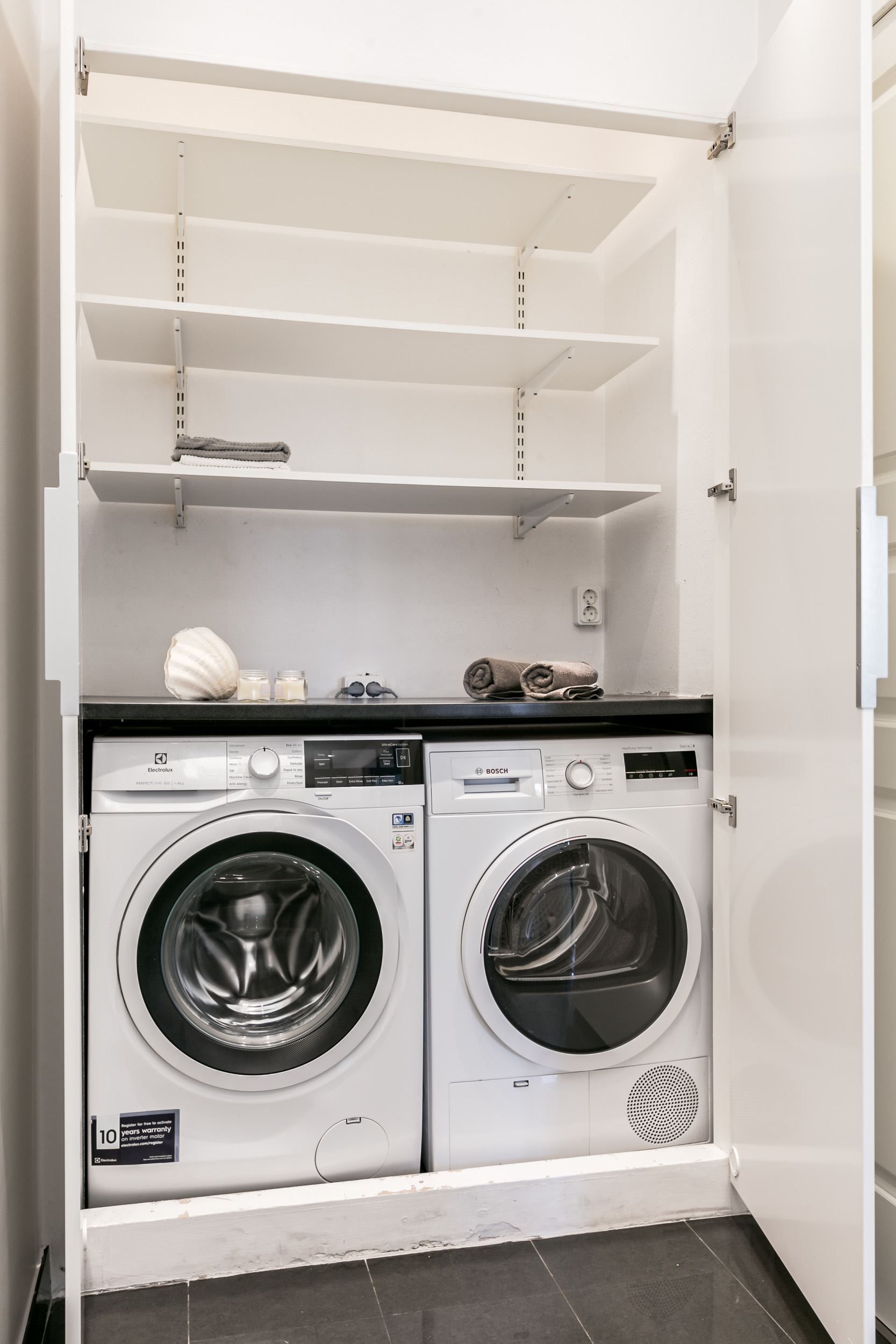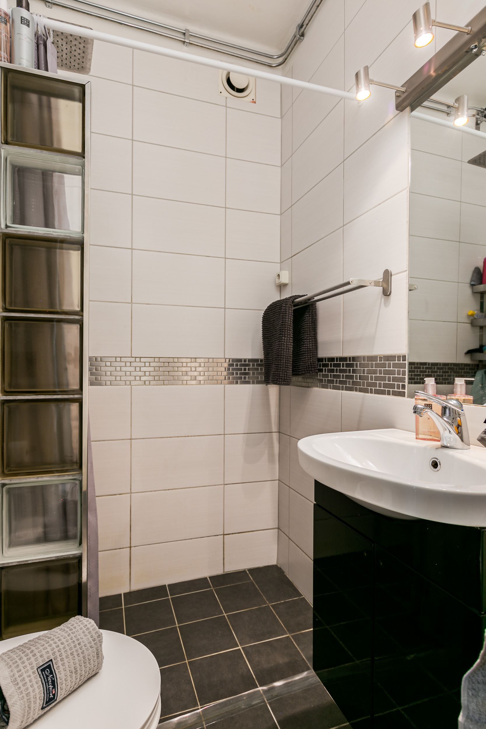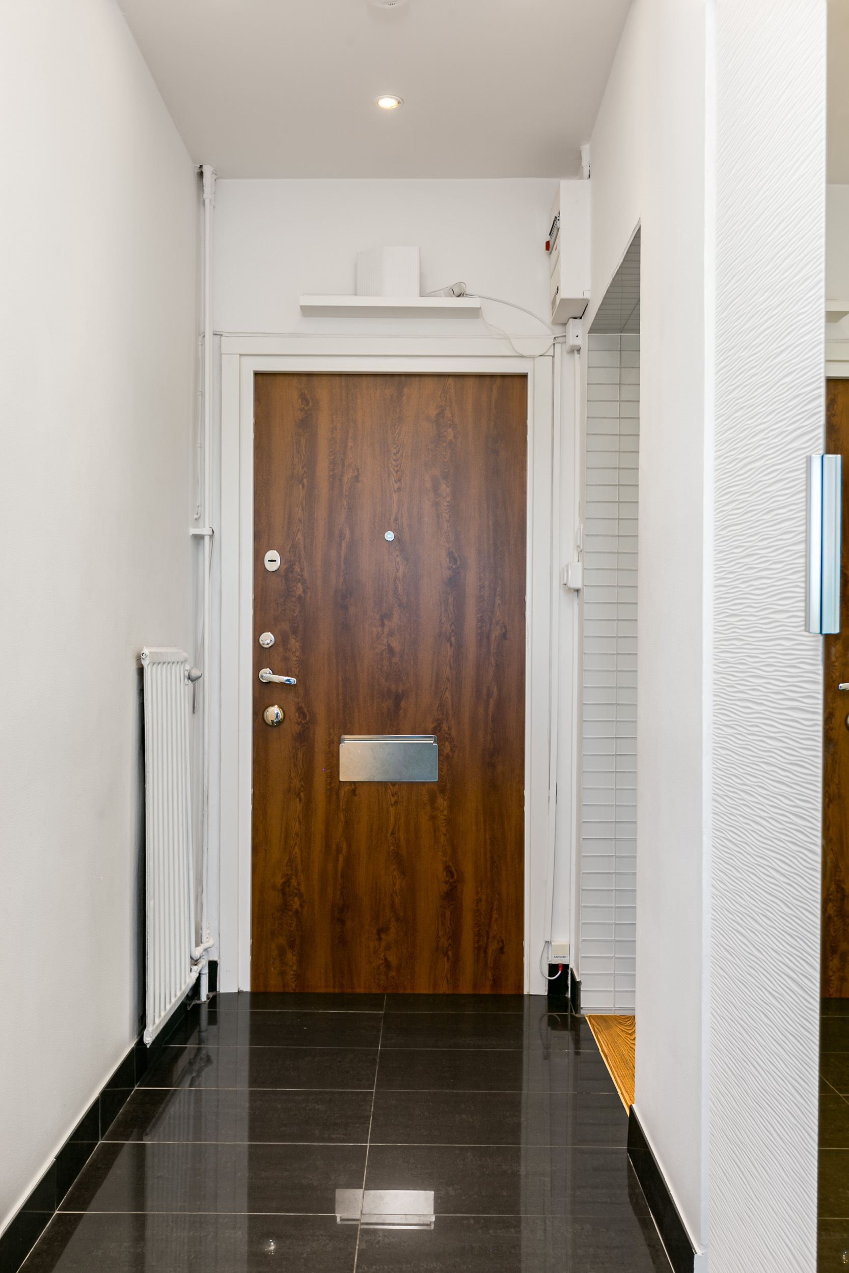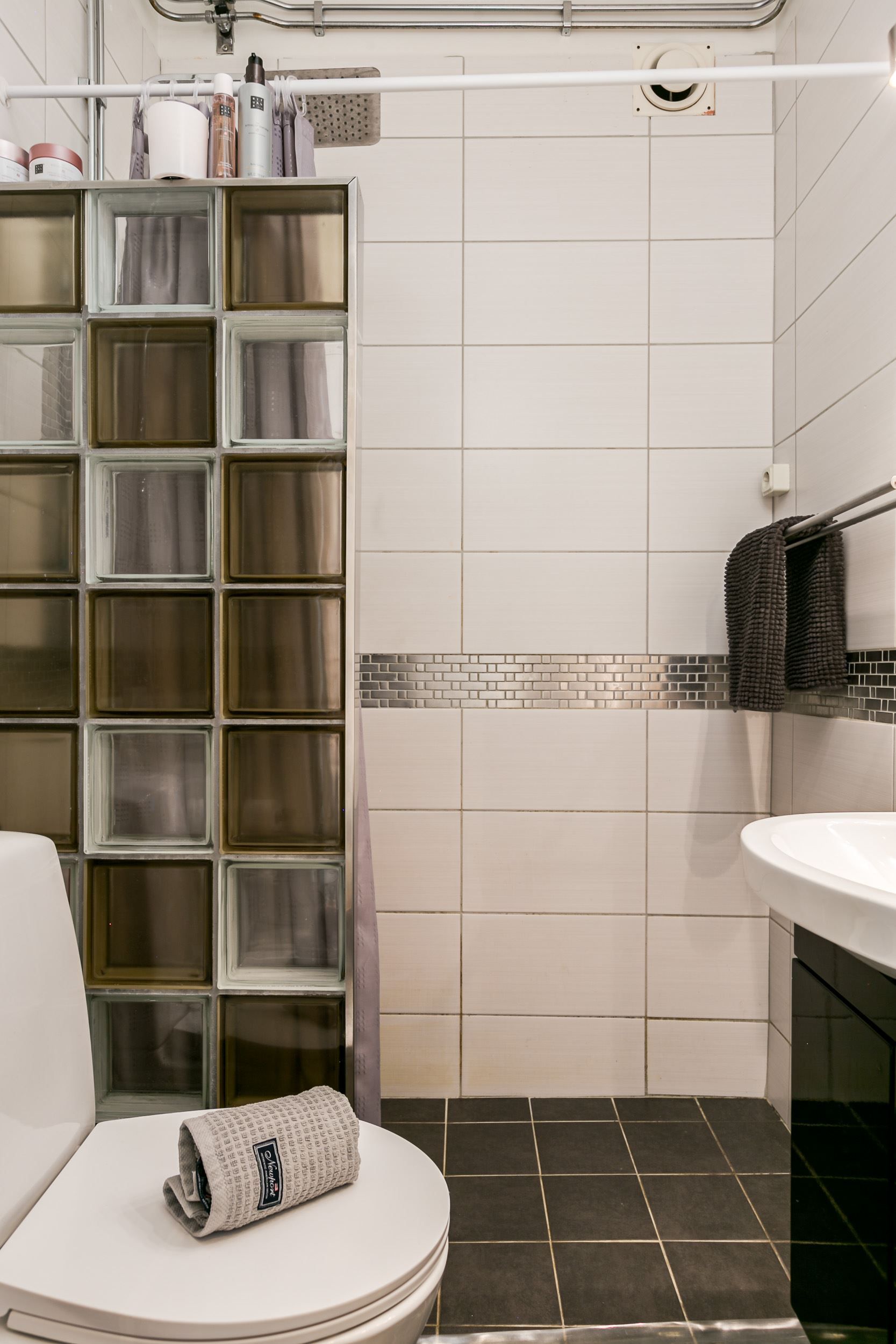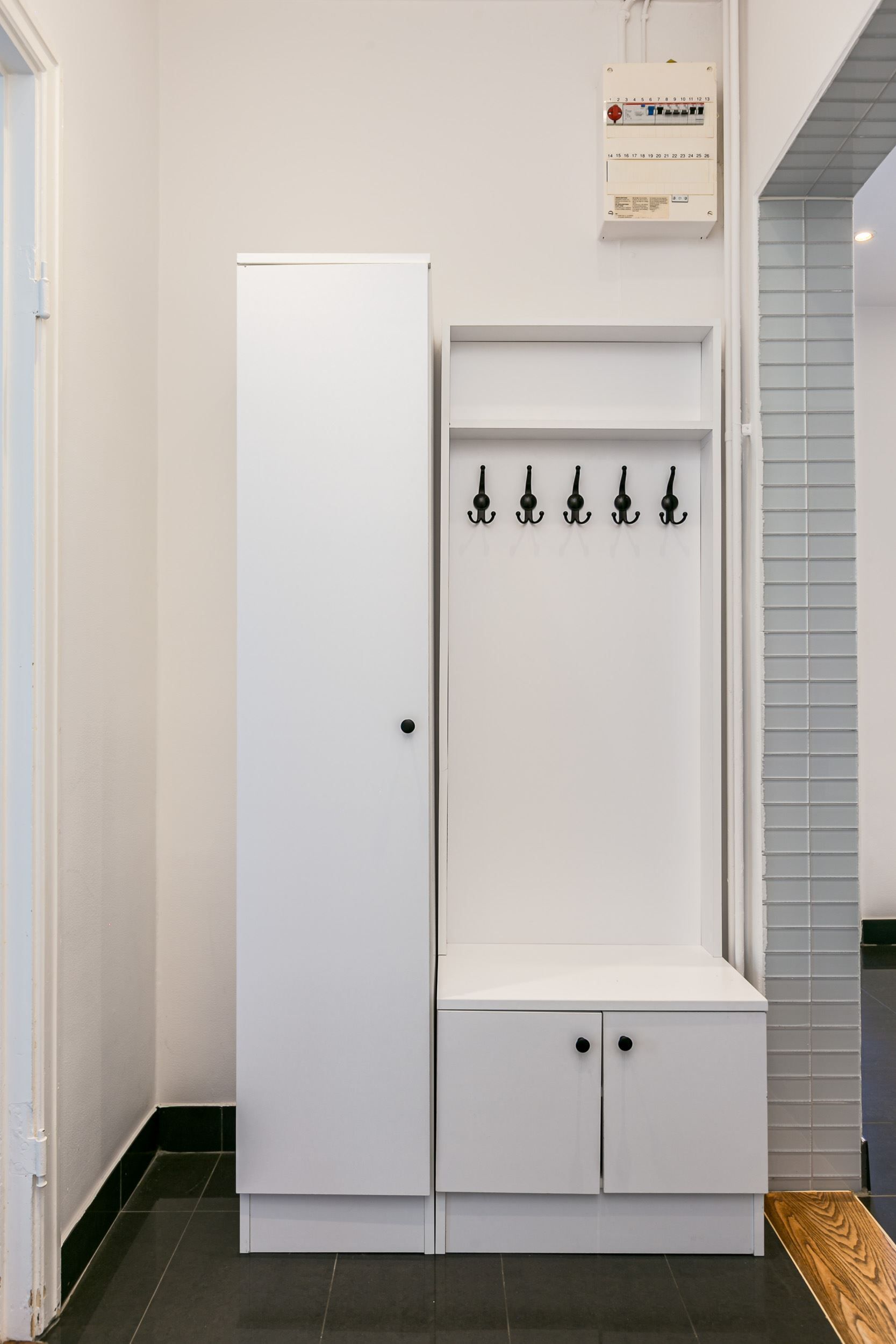 Bostaden har två fräscha, helkaklade badrum, vilket ger en känsla av lyx och komfort. Säljarna har även låtit sig utföra en besiktning av våtutrymmen. Du finner både ett badrum och en separat WC för extra bekvämlighet. Hallen rymmer en praktisk tvättavdelning med både tvättmaskin och torktumlare samt extra förvaringsutrymmen, vilket underlättar vardagslivet.