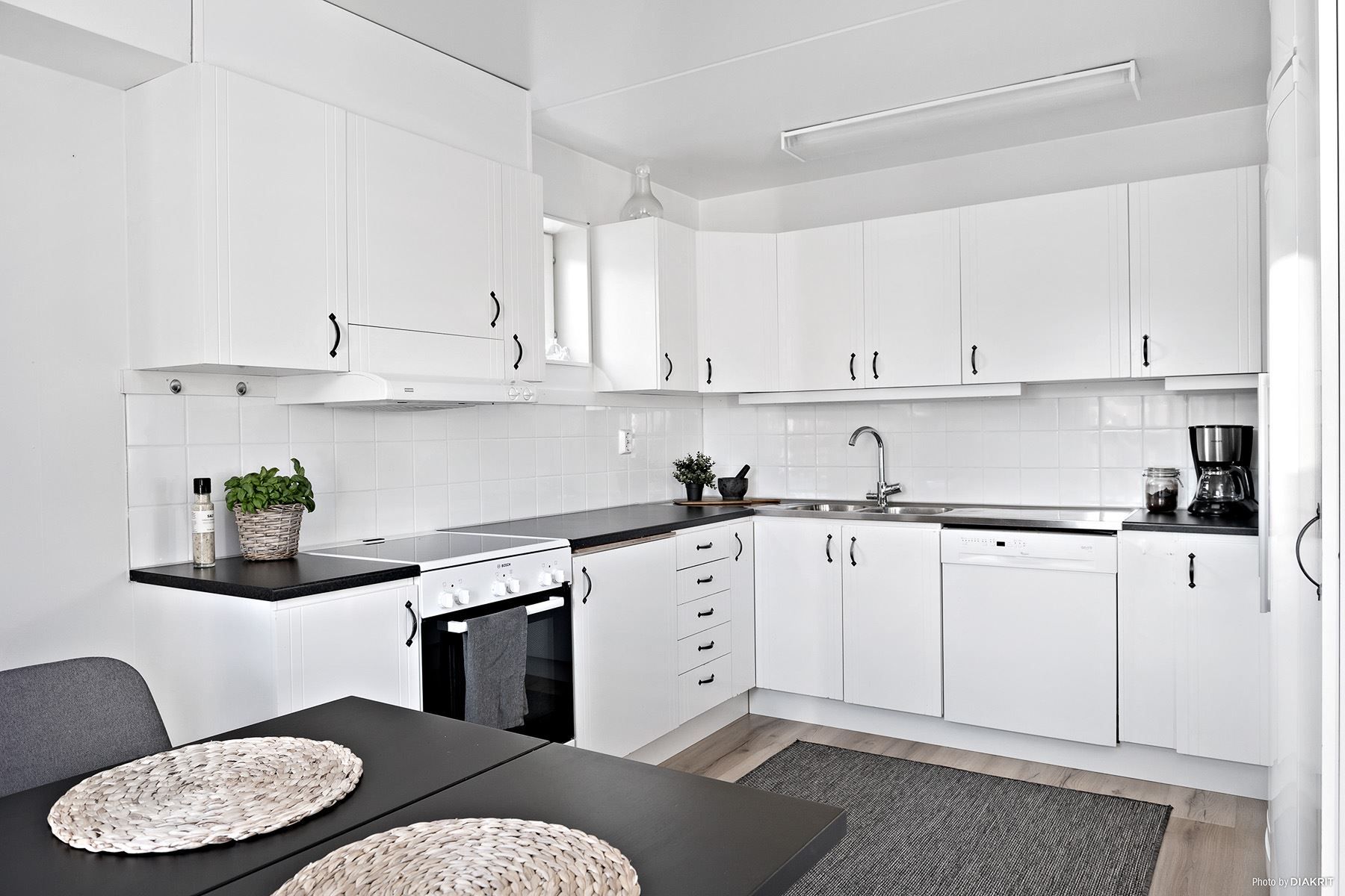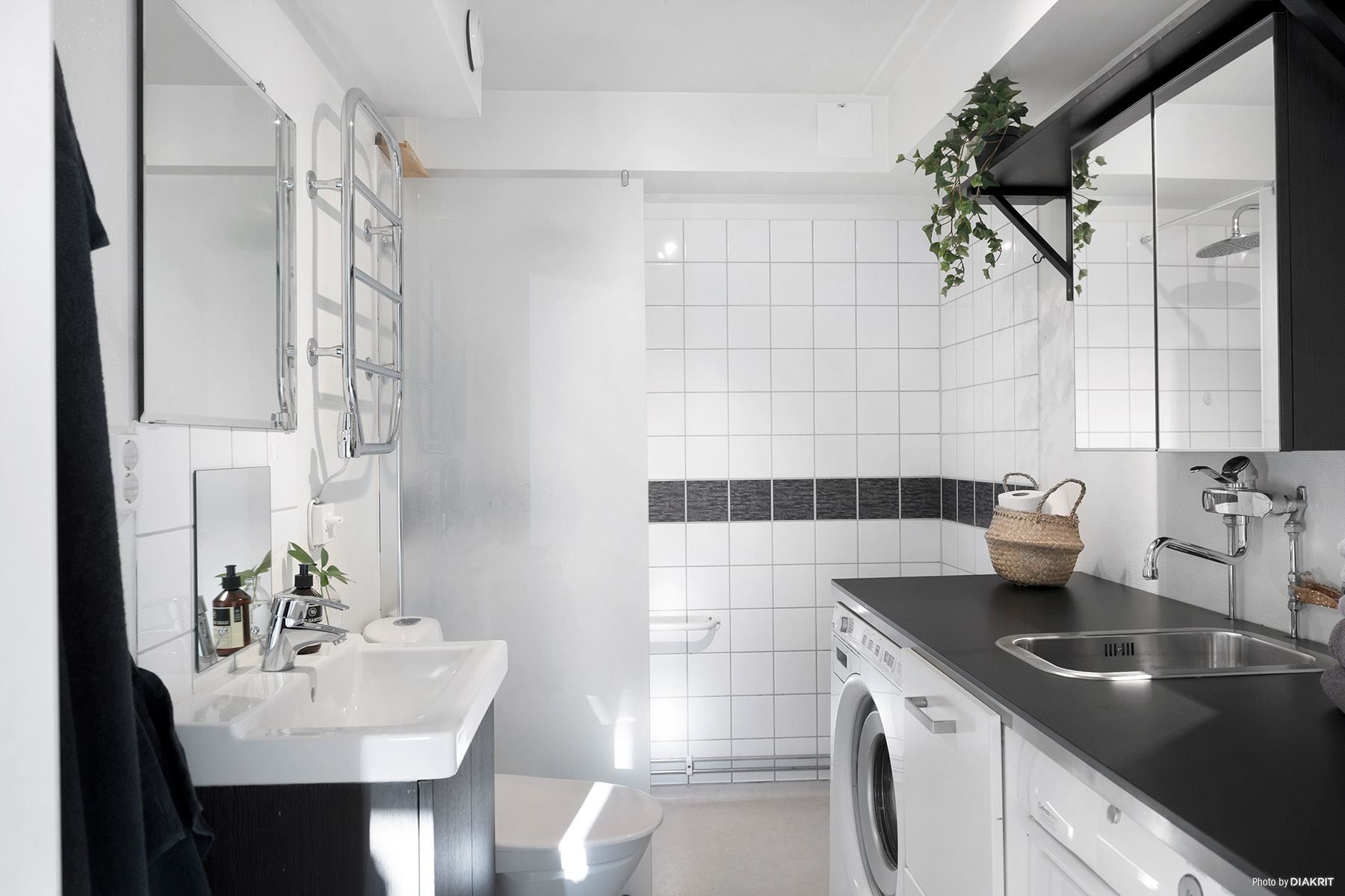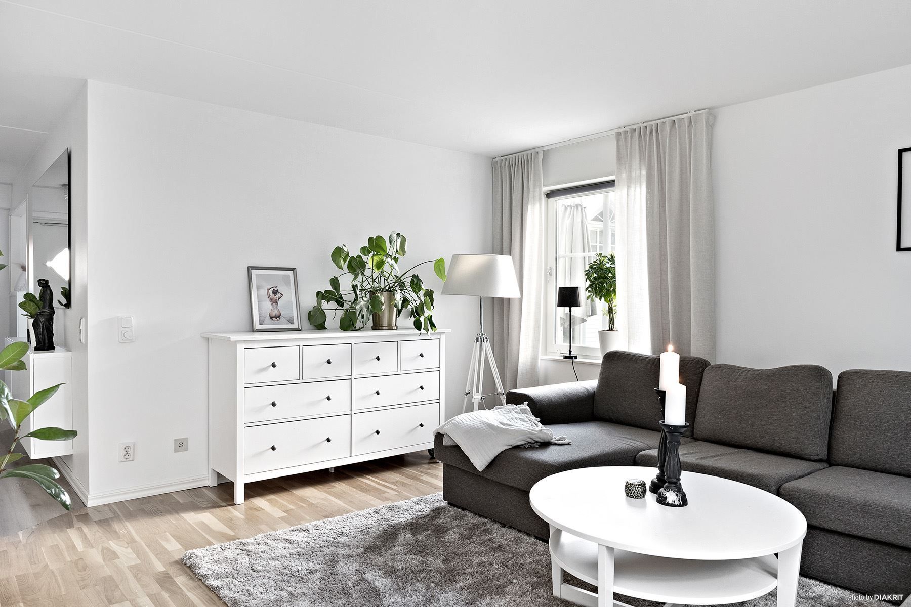 Invändigt finner vi en ljus lägenhet med en trevlig planlösning. Praktiskt kök med gott om förvaring och arbetsyta. Två sovrum varav det ena innehar en större klädkammare.