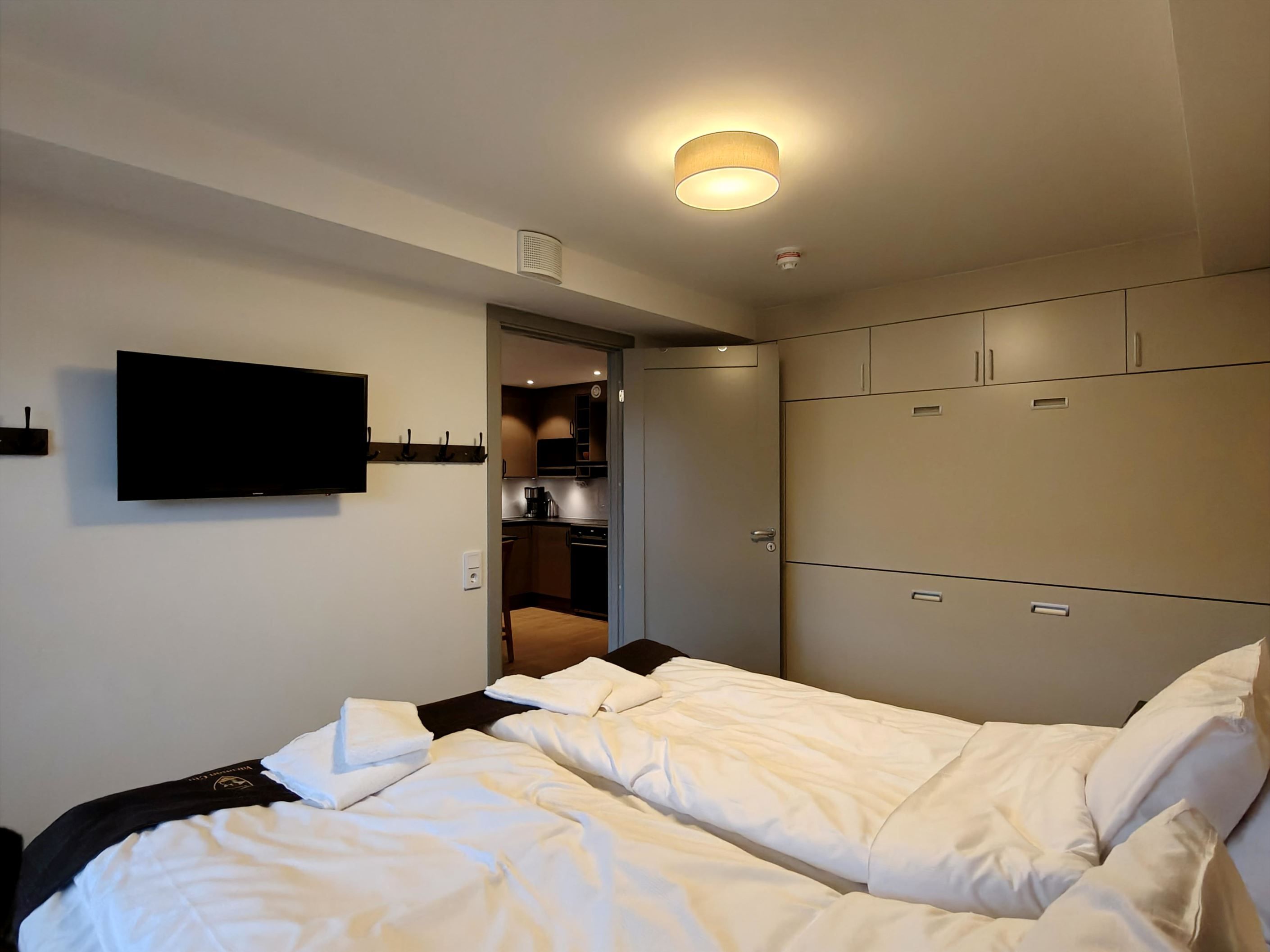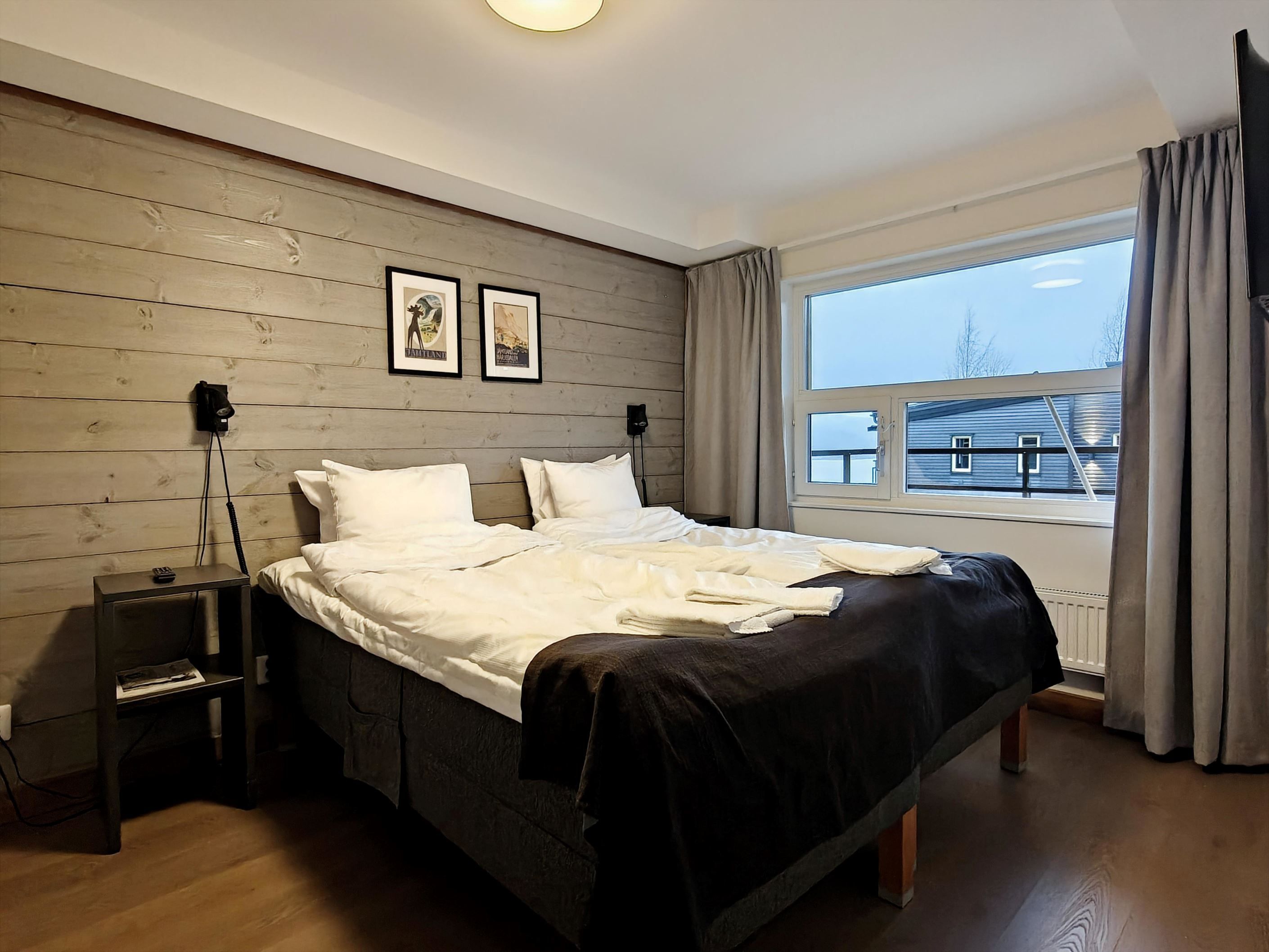 Denna rymliga och funktionella lägenhet på 50 m² är perfekt för både avkoppling och gemenskap. Lägenheten har ett stort sovrum med våningssängar som enkelt kan tas fram ur sängskåp. Efter en dag på fjället kan du njuta av avkoppling i lägenhetens egen bastu. Dessutom finns en stor balkong där du kan koppla av och njuta av utsikten ned över Åresjön. Lägenheten ligger ett stenkast från populära bageriet grädda som serverar frukost och lunch.