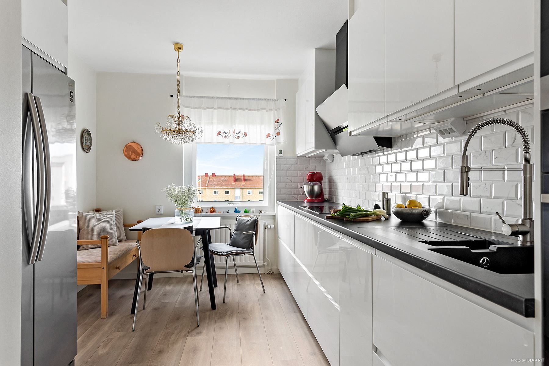 Varmt välkomna till Arkitektgatan 8 och denna väldisponerade trerummare högt upp i huset! Bostaden har genomgående en hemtrevlig känsla som ger ett fint och varmt bemötande. Ni får ett modernt nyrenoverat kök med alla bekvämligheter ni kan tänkas behöva. Stort vardagsrum med bra sällskapsutrymmen, stora fönsterpartier och en inglasad balkong med morgonsol. Sätt er med en kopp kaffe i handen och njut av utsikten. Två tilltagna sovrum, goda förvaringsmöjligheter genom flertalet garderober och ett helkaklat badrum. Samtliga ytskick är renoverade och all el i lägenheten är ny.