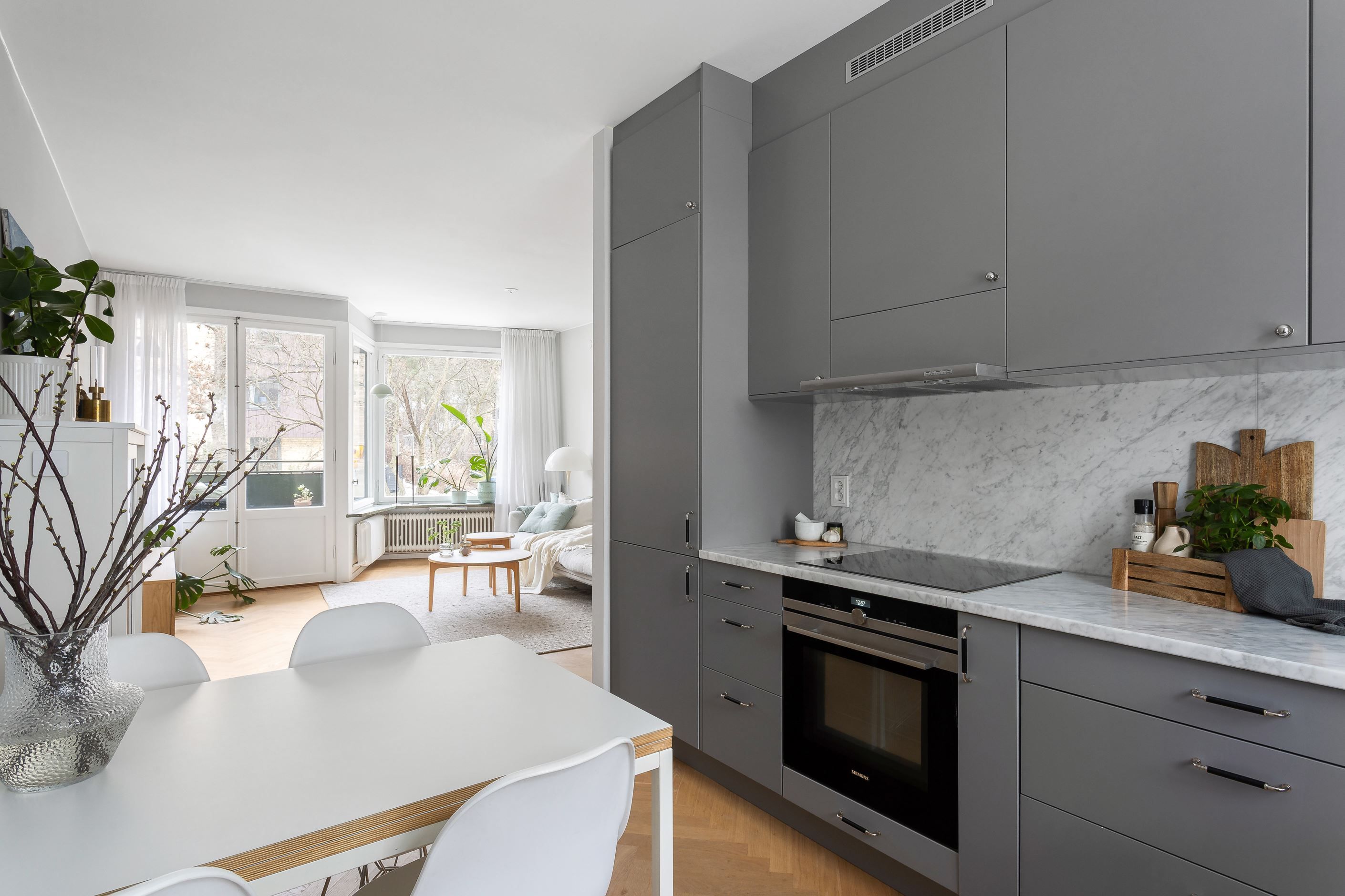 Områdets bästa 3:a - Genomgående renoverad - Exklusivt kök med bänkskiva i Carrara marmor - Öppen och social planlösning - Solig balkong i västläge - Fiskbensparkett - Två rymliga sovrum - Generös takhöjd - Stambytt badrum med badkar - Bra förening med en hyresrätt kvar - Parkeringsplatser på gården.