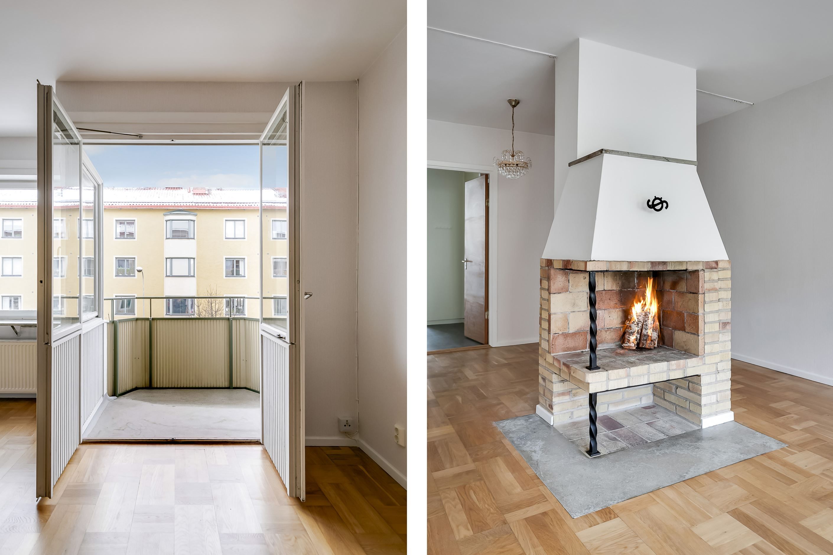 Vardagsrummet är generöst tilltaget med fina sociala ytor, fungerande öppen spis och utgång till den soliga balkongen i söderläge – en perfekt plats för avkoppling från tidig vår till sen höst. Köket är välplanerat och tidsenligt, med gott om förvaring och plats för matbord. Här finns fina möjligheter att bevara charmen eller sätta en mer modern prägel efter eget tycke. De två ordentliga sovrummen vetter mot den lugna gården och erbjuder rofyllda sovmiljöer. Bostaden har dessutom mycket goda förvaringsmöjligheter genom flera garderober samt en praktisk klädkammare.
