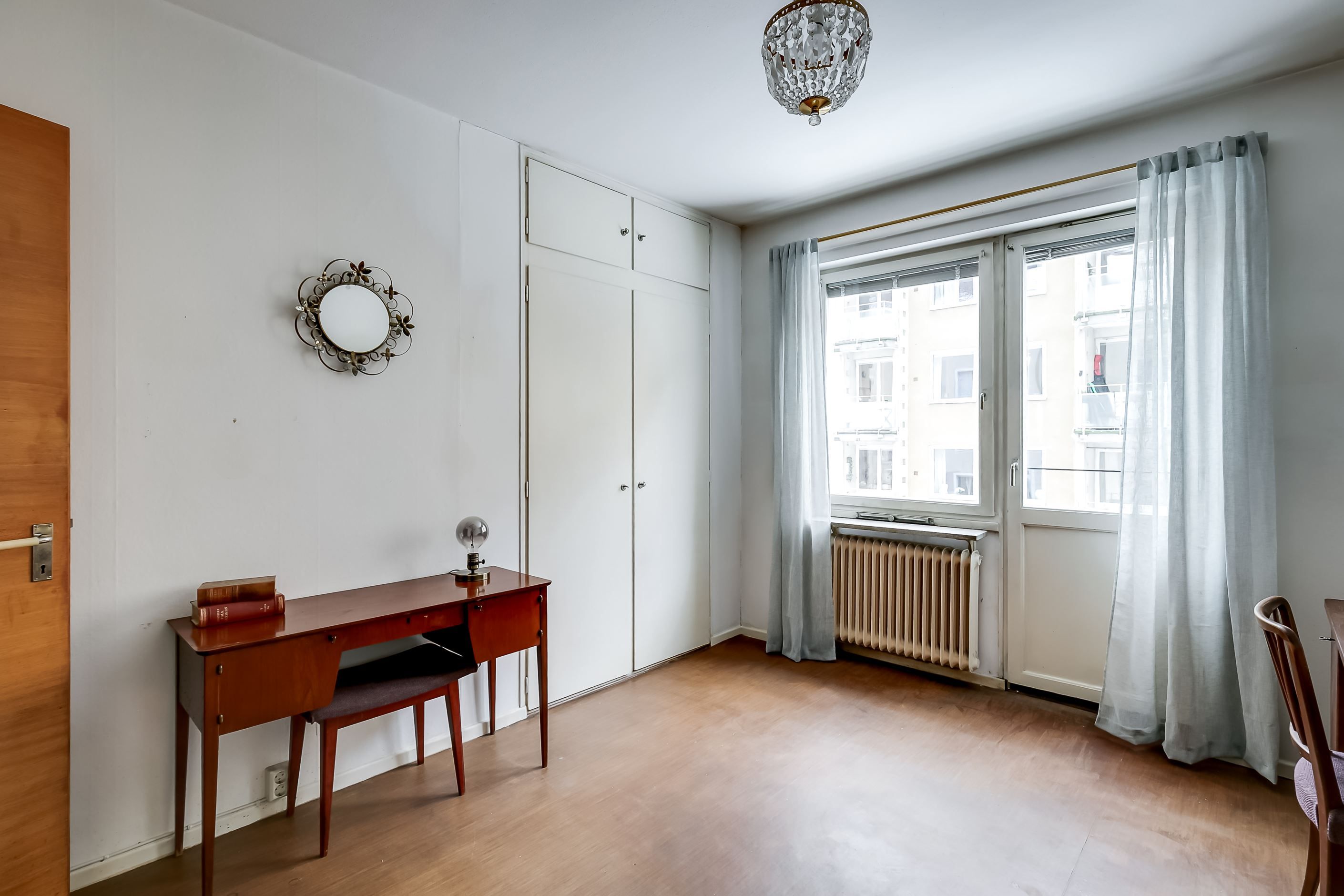 Bostaden är i behov av renovering, vilket ger en fantastisk möjlighet att sätta sin egen prägel. Samtidigt finns många eftertraktade originaldetaljer kvar såsom holländsk parkett, charmiga beslag, öppen spis och den karaktäristiska 50-talskänslan.
