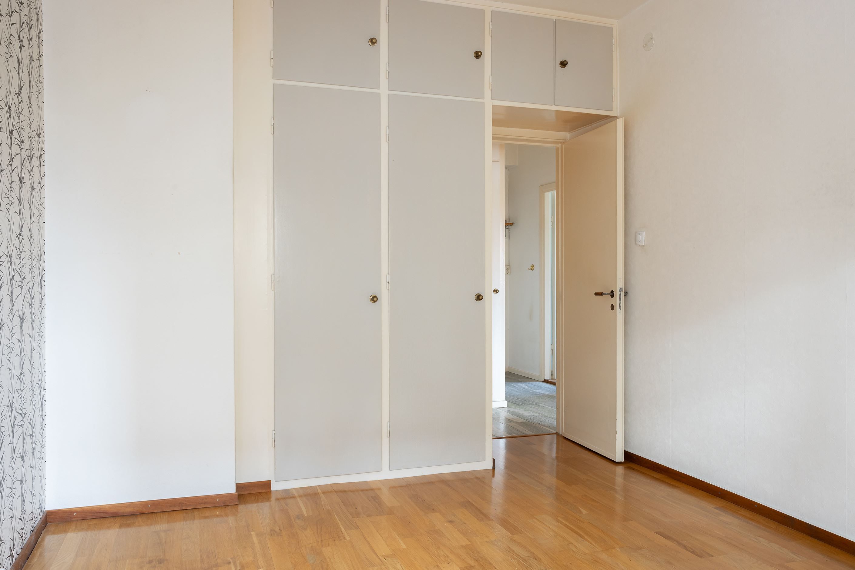Sovrummet är rogivande och rymligt med fönster som ger fint naturligt ljus. Här finns plats för dubbelsäng, sängbord och förvaringsmöbler. Platsbyggda garderober och överskåp ger generös förvaring utan att ta golvyta i anspråk.