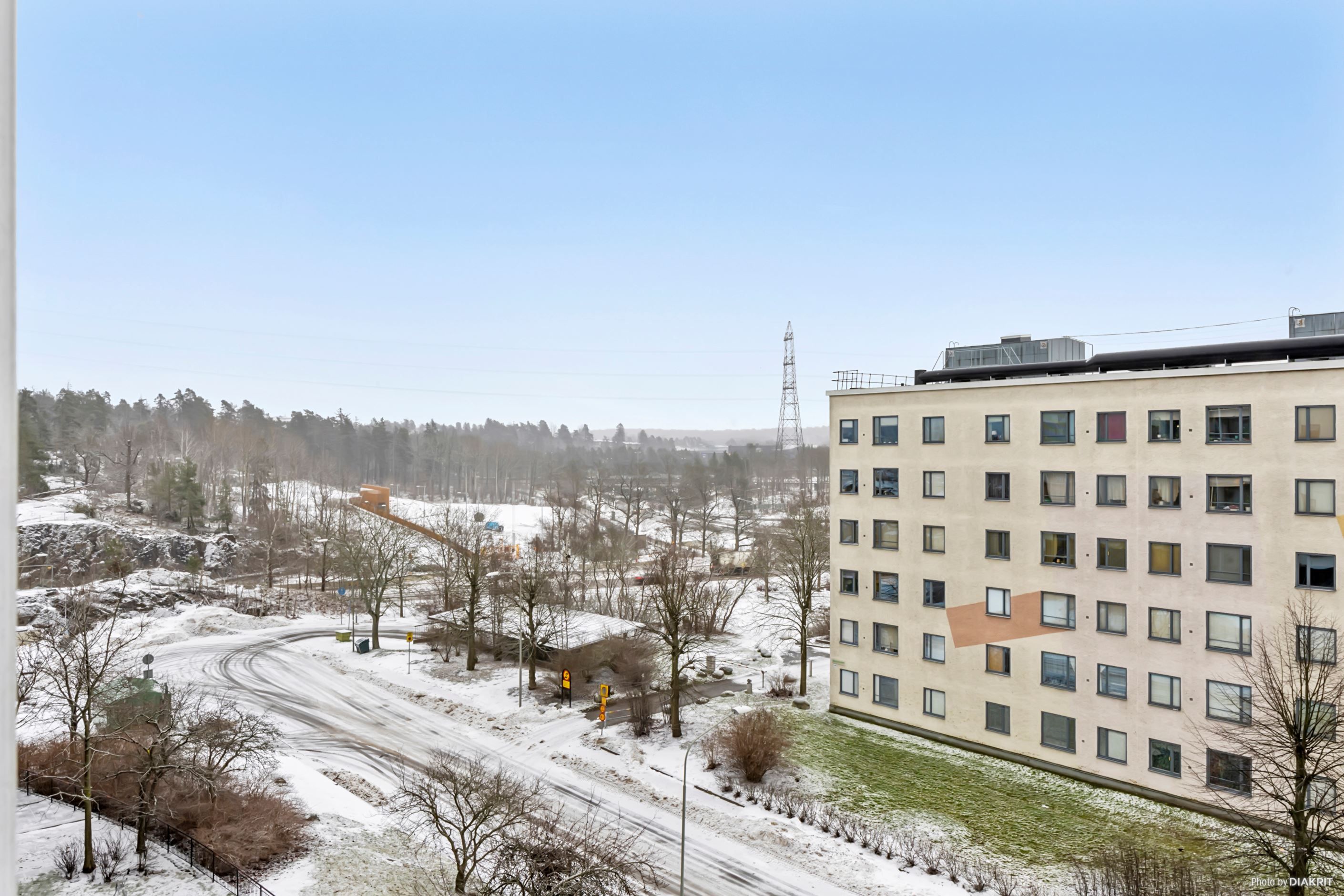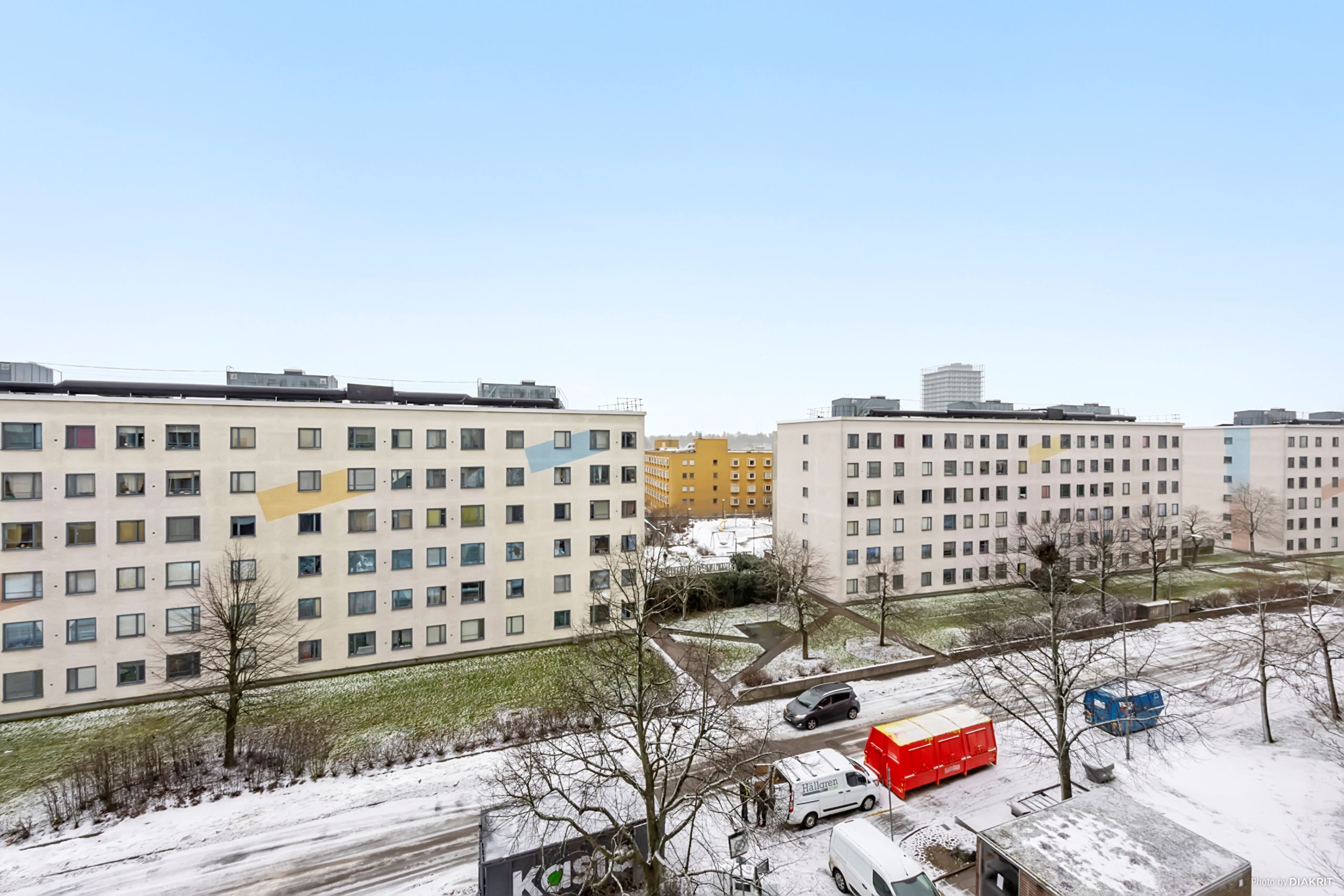 Från bostaden är det en kort promenad till Skärholmen Centrum med ca 200 butiker, restauranger och caféer. Tvärs över motorvägen finner du även det stora nöjescentret Heron City med biograf, caféer, bowling m.m och även den välkända handelsplatsen vid kungens kurva där du finner exempelvis IKEA, City Gross, Jysk m.m. Goda kommunikationer i form av bussar som tar dig vidare till bland annat Huddinge och Älvsjö eller varför inte ta tunnelbanan som via röda linjen tar dig in till Stockholm city på drygt 20 minuter.