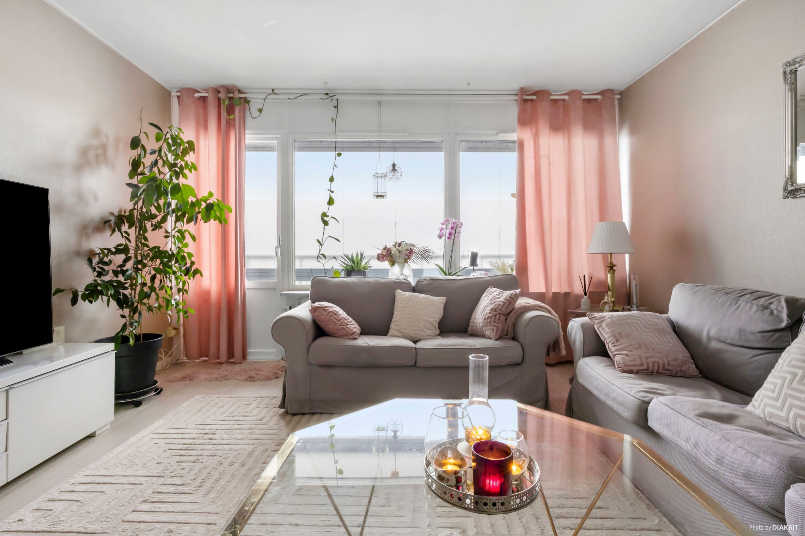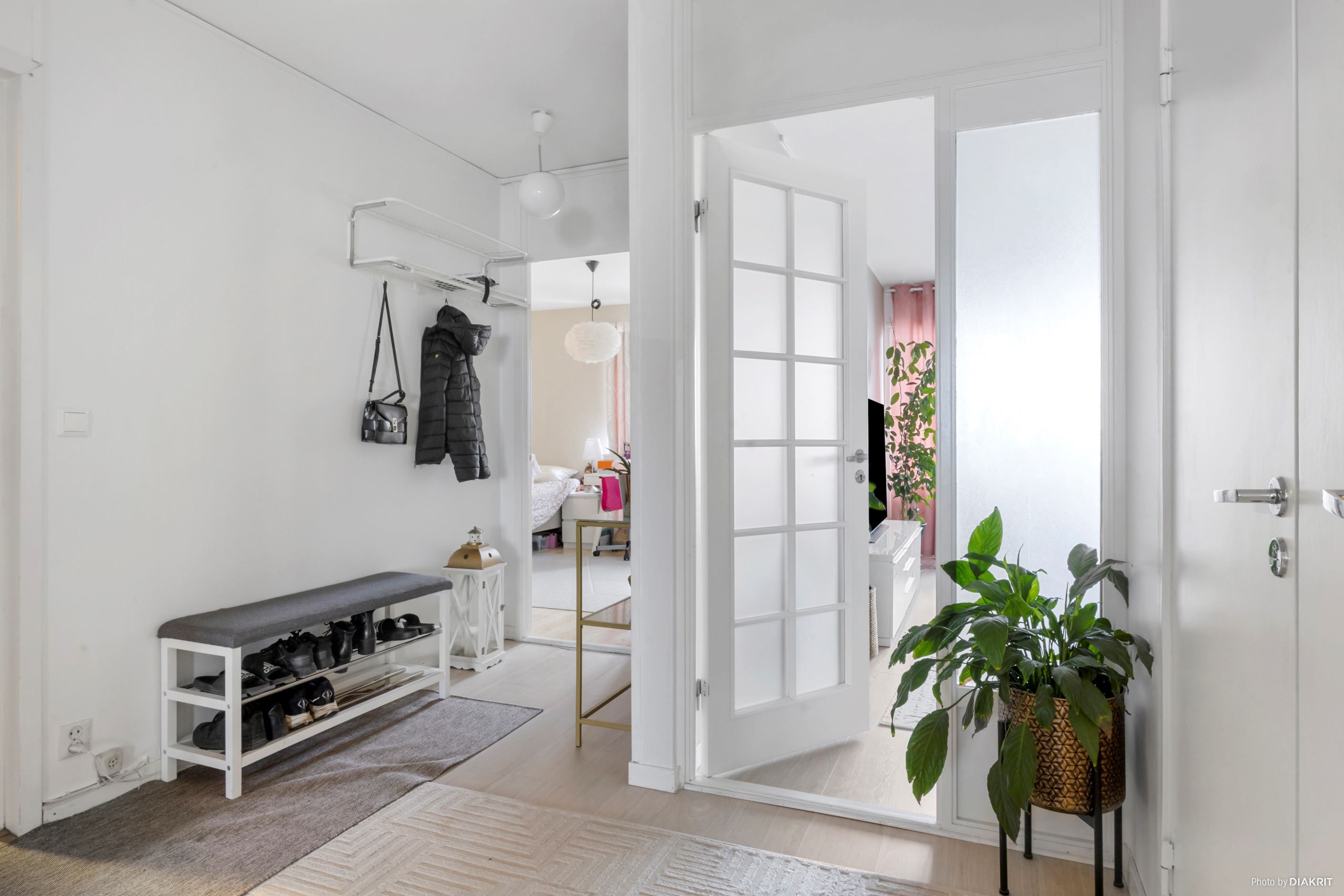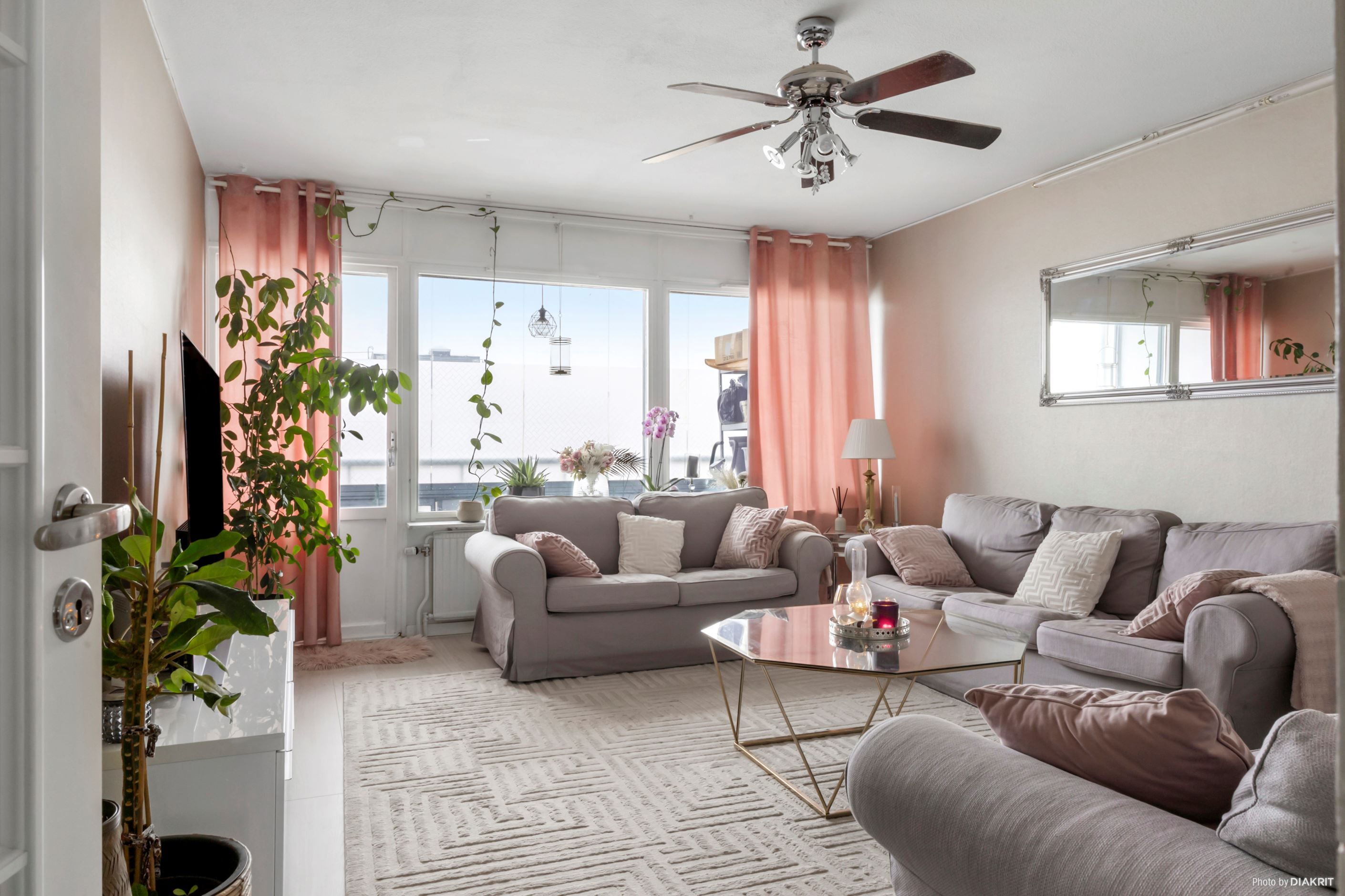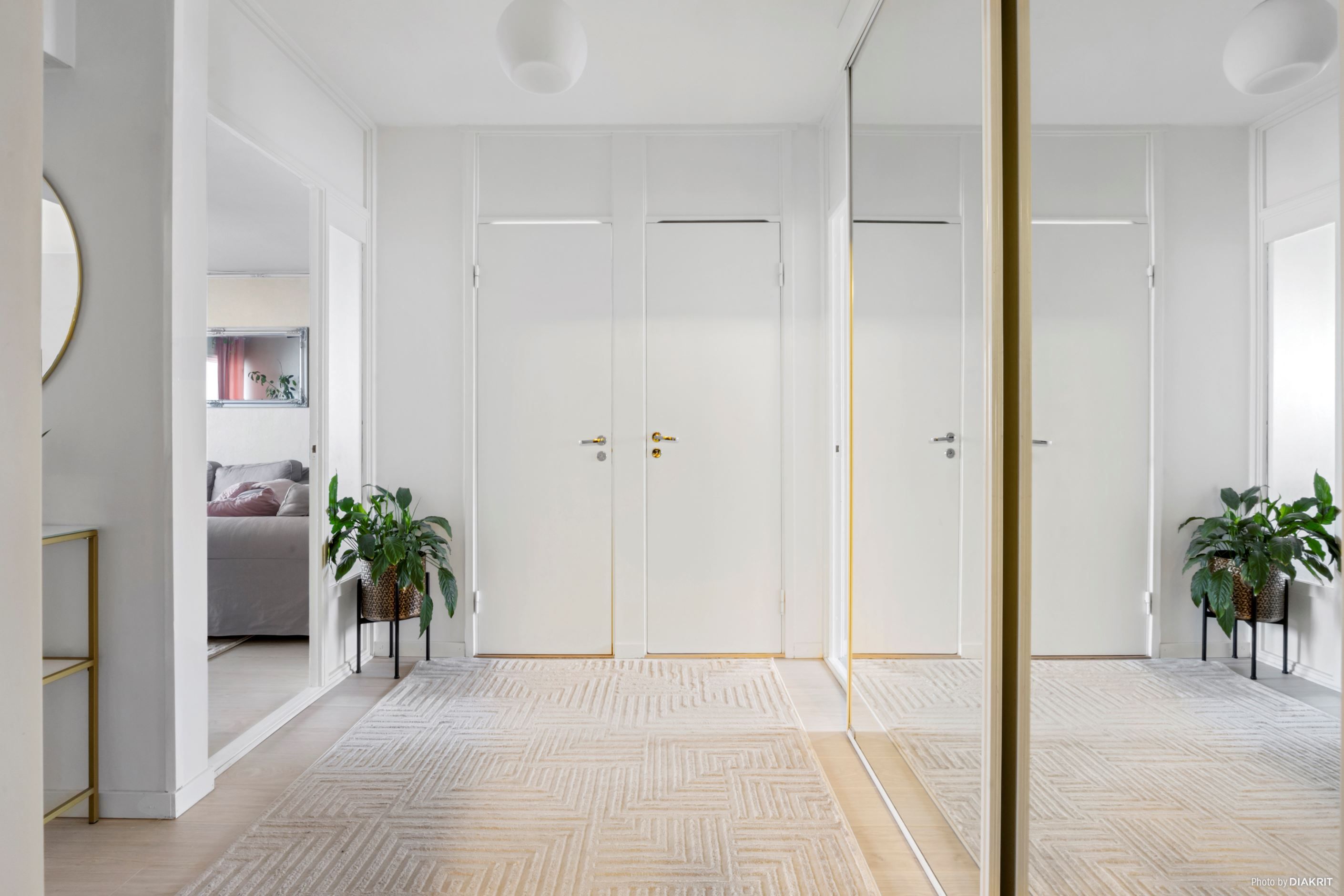 Rymlig hall med goda förvaringsmöjligheter via garderober och hatthylla. Modernt L-format kök med alla bekvämligheter man kan tänka sig ha som dessutom har stora fönsterpartier i ett högt och fritt läge. Vardagsrummet är ljus och luftig tack vare de tilltagna panoramafönstren i ett hög och fritt läge med magisk utsikt. Här bor ni helt privat, med begränsad insyn. Från vardagsrummet har ni även direkt tillgång till den magiska inglasade balkongen som även erbjuder en milsvid utsikt över takåsar och grönskande natur! Ett hem att trivas i helt enkelt!