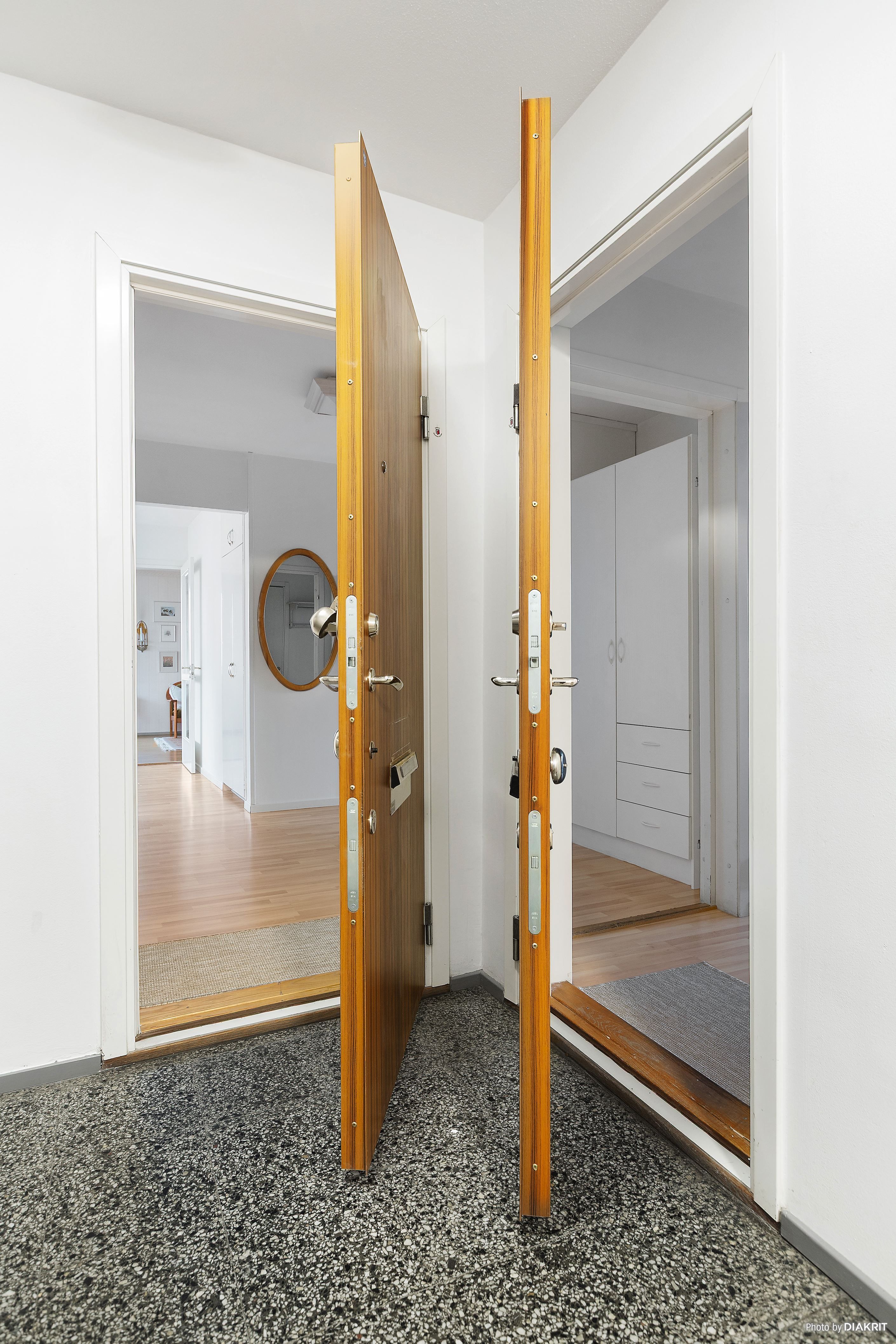 Dubbla entrédörrar (varav en till uthyrningsdelen)
