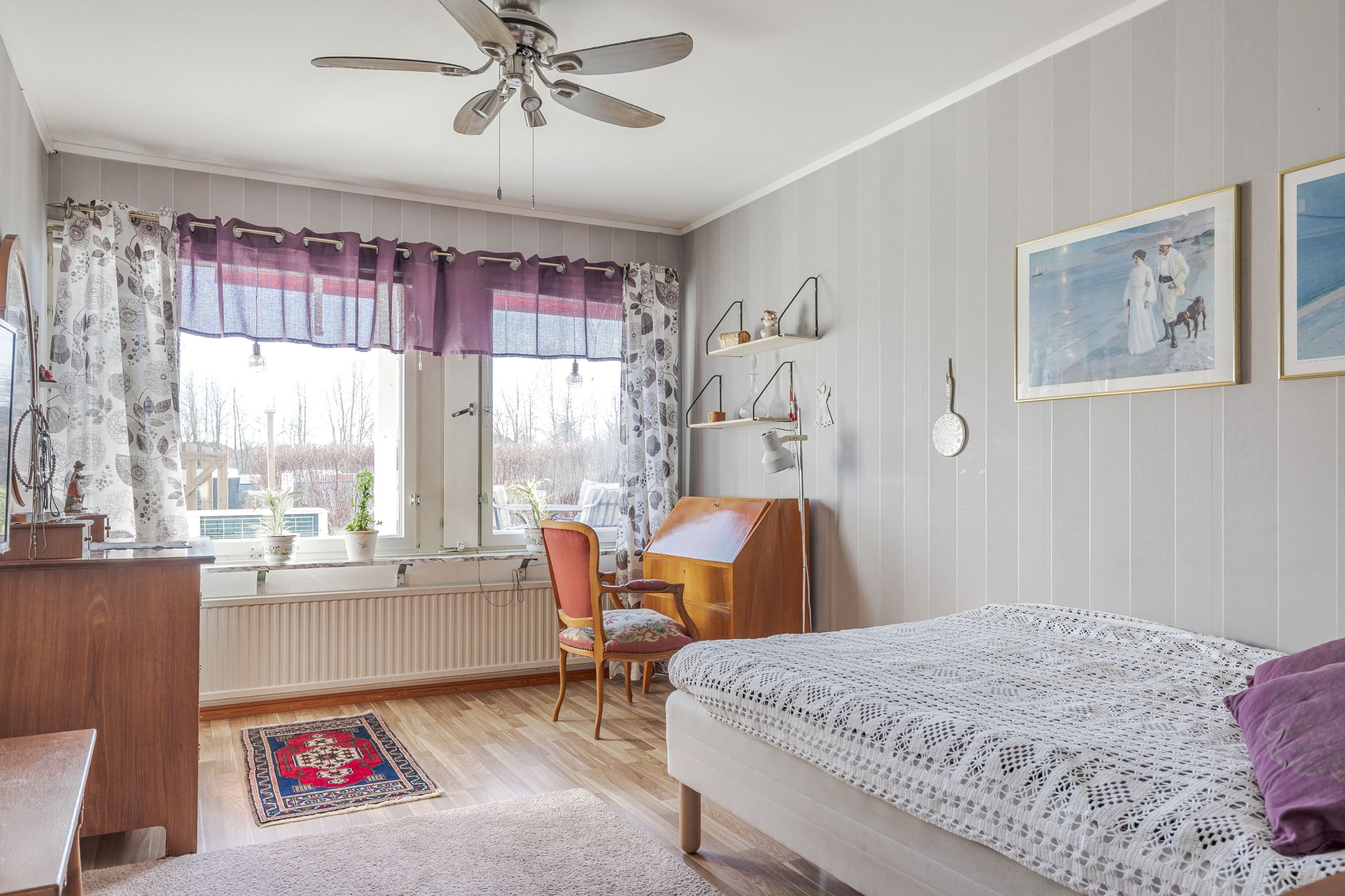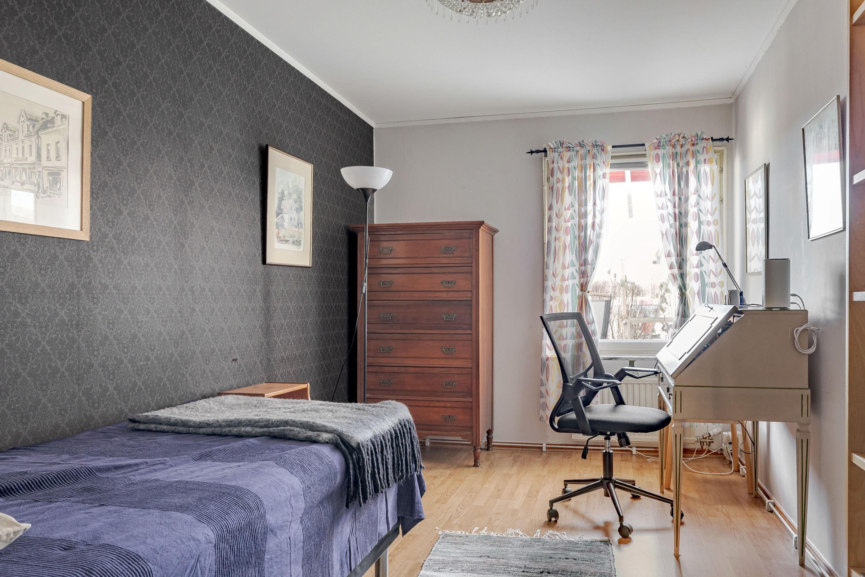 Bostaden har två ljusa och trivsamma sovrum. Ett av rummen erbjuder gott om plats för en dubbelsäng, medan det andra passar utmärkt som barnrum eller arbetsrum.