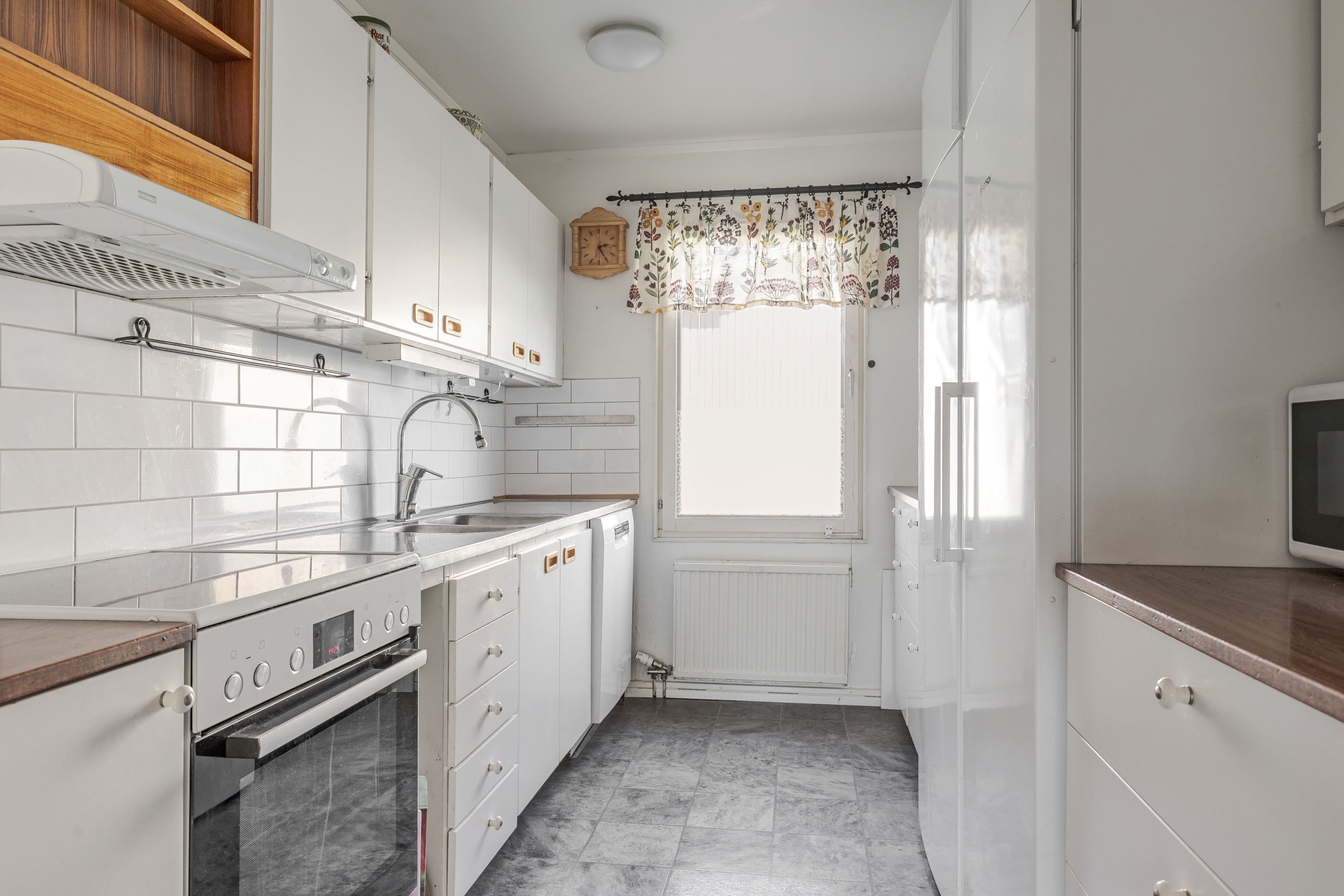 Köket är delvist renoverat och har gott om skåpsutrymmen samt arbetsytor. Den maskinella utrustningen består av kyl, frys, spis, ugn, fläkt och diskmaskin.