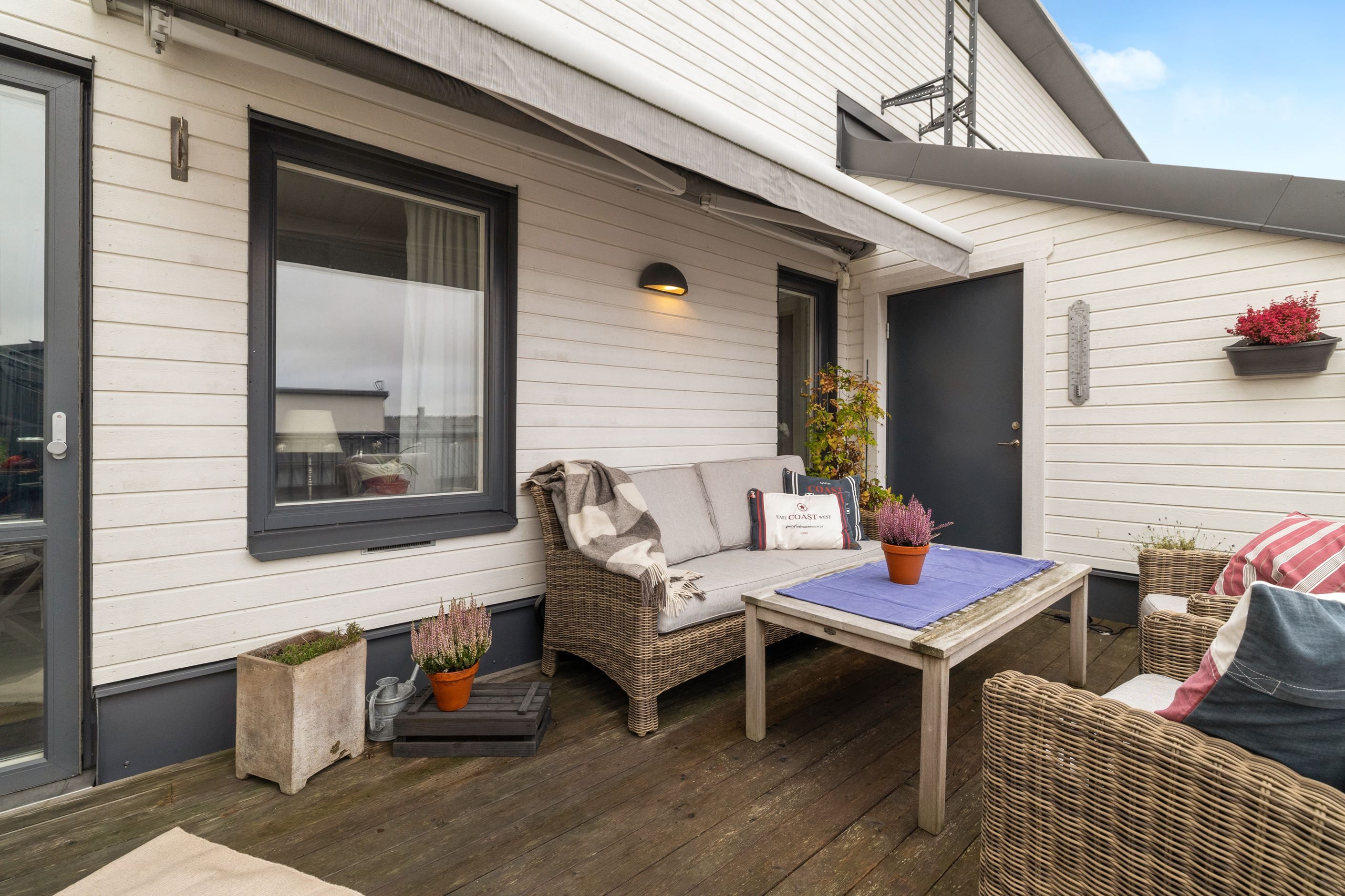 Den generösa ytan om 119 kvm bjuder på en öppen och social planlösning mellan kök och vardagsrum. Här flödar ljuset in genom stora fönster och förlänger rummet ut mot den fantastiska terrassen på ca 25 kvm med markis, där du har sol, utsikt och fullständig avskildhet. En andra terrass om ca 20 kvm i motsatt väderstreck låter dig följa solen från morgon till kväll, också denna med markis som skapar en trivsam uterumskänsla under varma sommardagar. Från den här terassen har du även direktaccess till eget förråd om ca 5 kvm.
