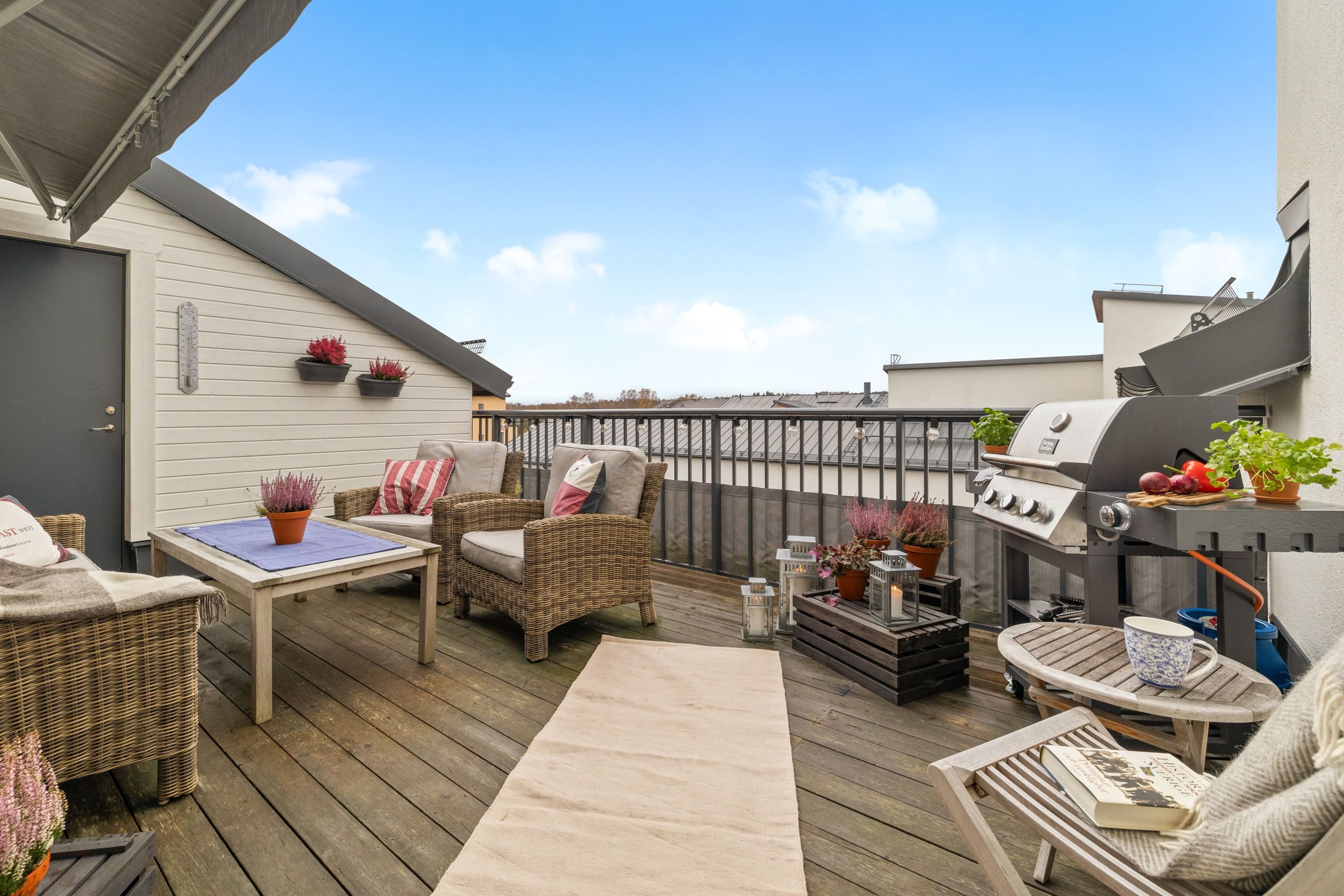 Vindsvåningsdröm med villakänsla, dubbla terrasser och magisk utsikt över takåsar och trädtoppar!