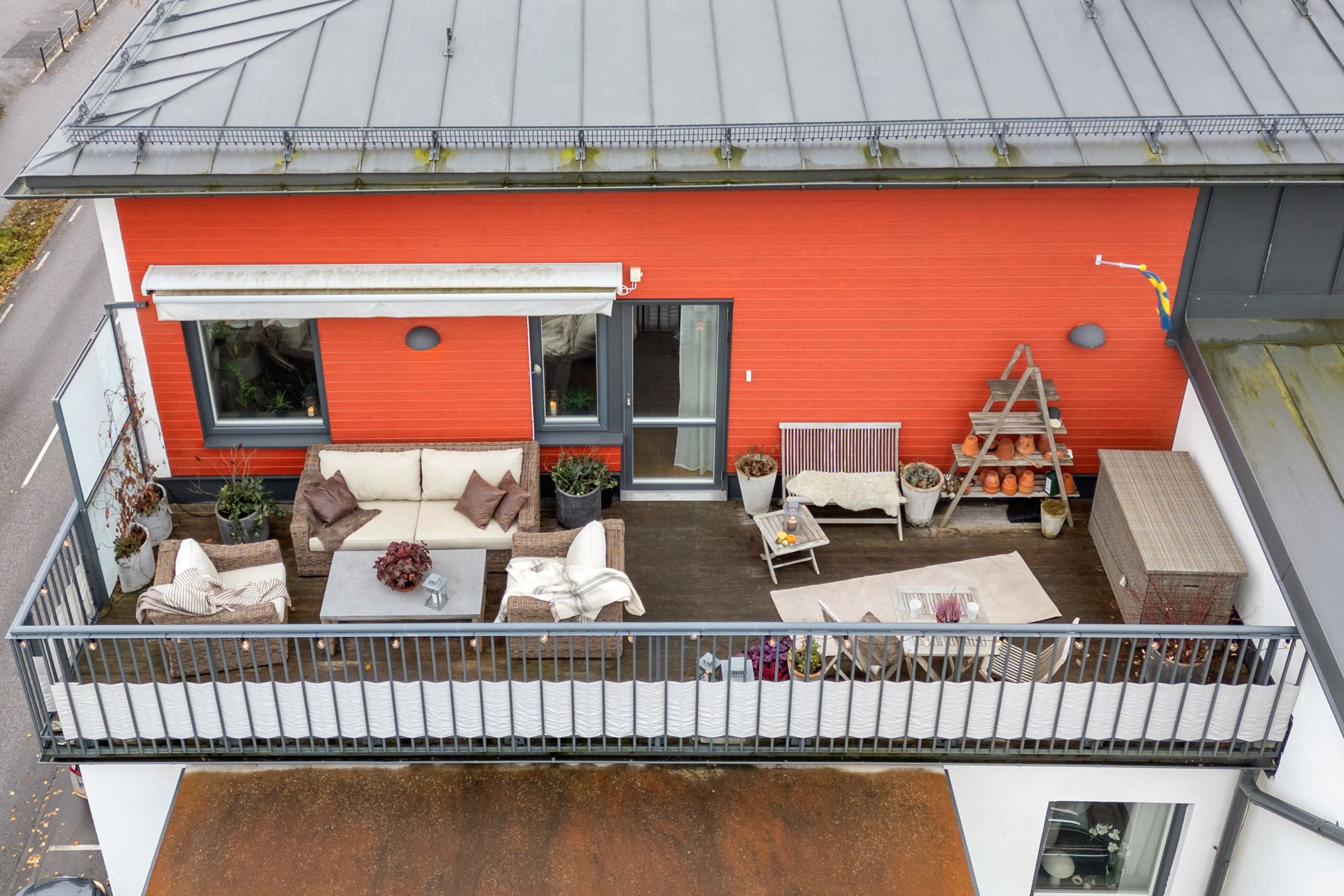 Den generösa ytan om 119 kvm bjuder på en öppen och social planlösning mellan kök och vardagsrum. Här flödar ljuset in genom stora fönster och förlänger rummet ut mot den fantastiska terrassen på ca 25 kvm med markis, där du har sol, utsikt och fullständig avskildhet. En andra terrass om ca 20 kvm i motsatt väderstreck låter dig följa solen från morgon till kväll, också denna med markis som skapar en trivsam uterumskänsla under varma sommardagar. Från den här terassen har du även direktaccess till eget förråd om ca 5 kvm.