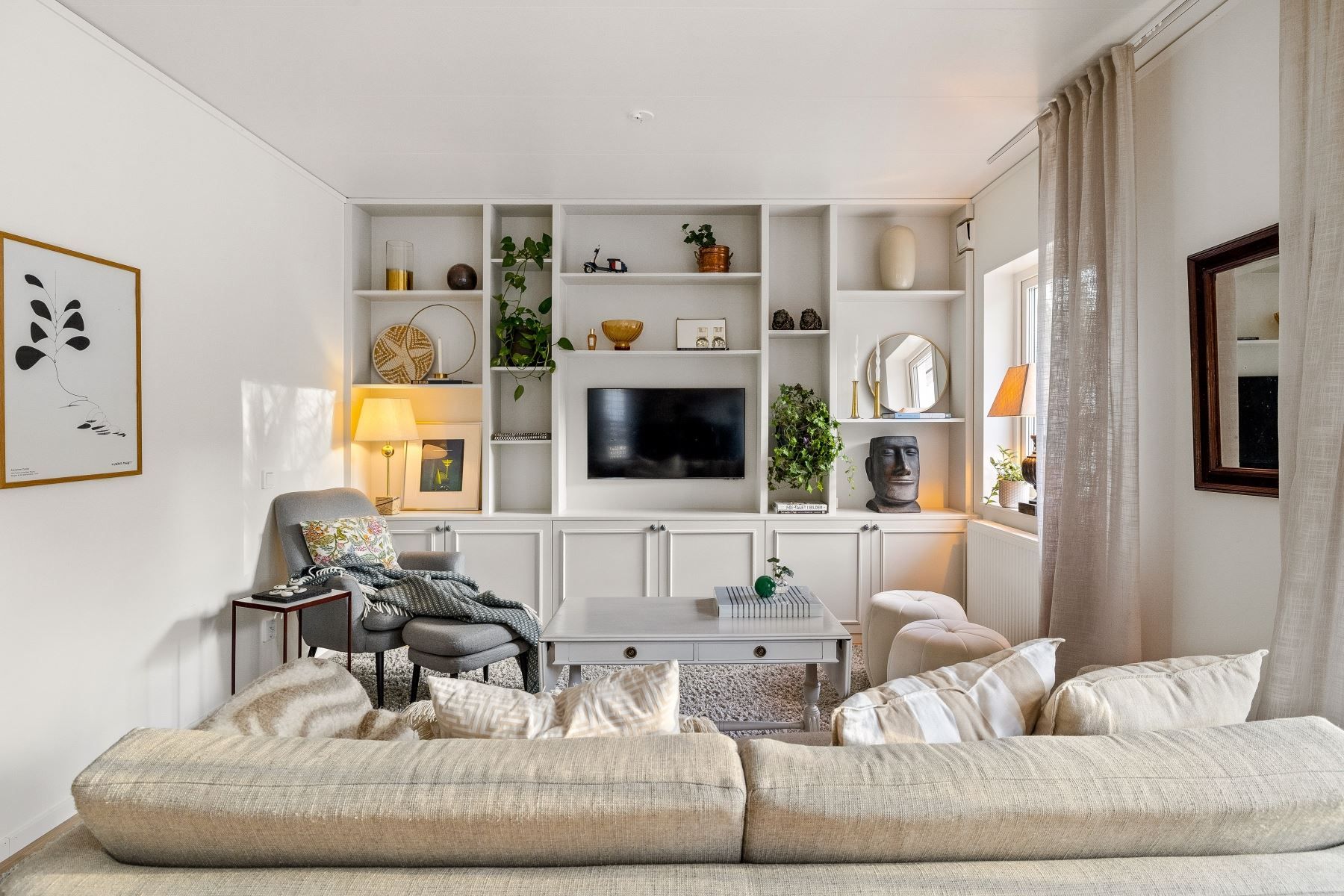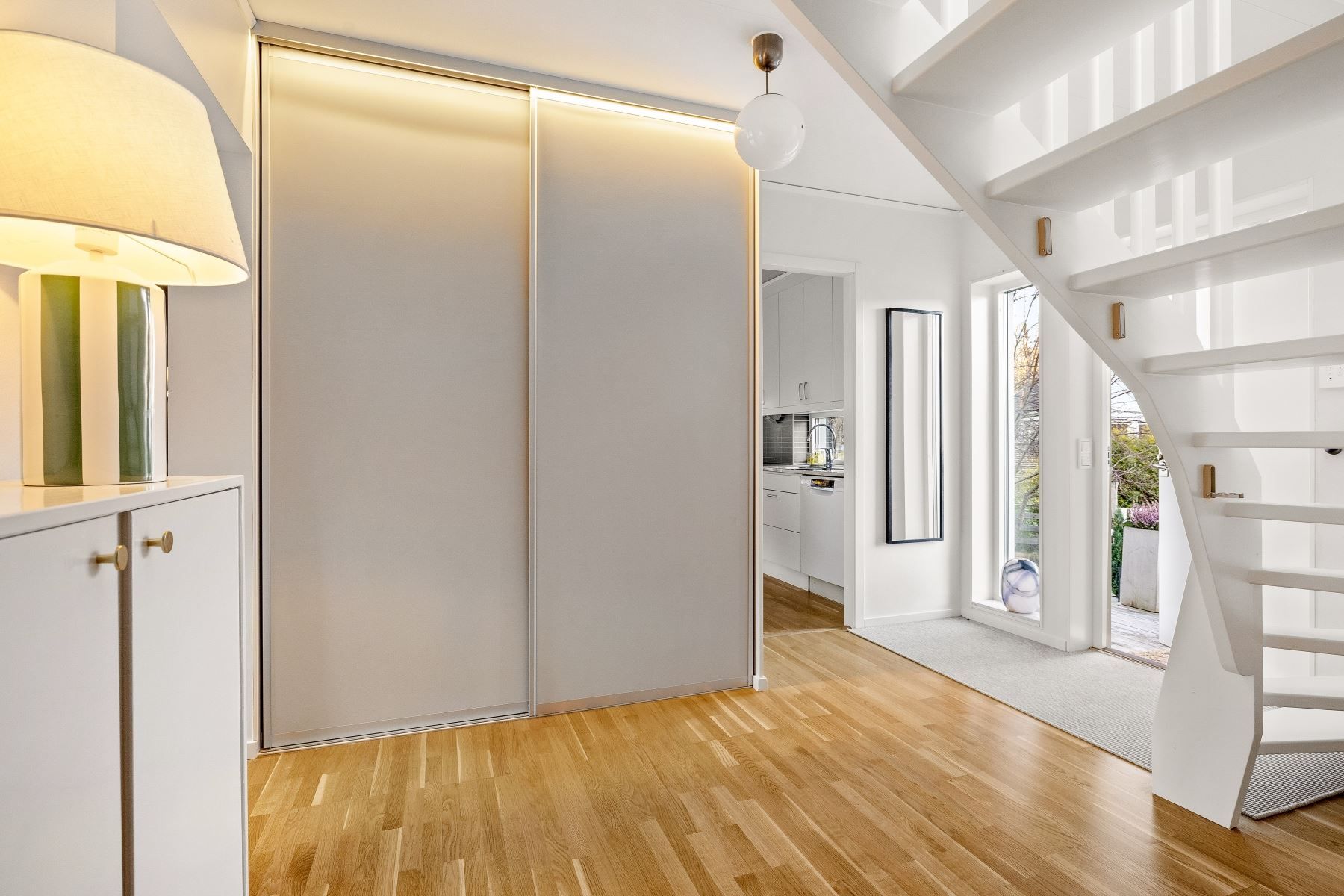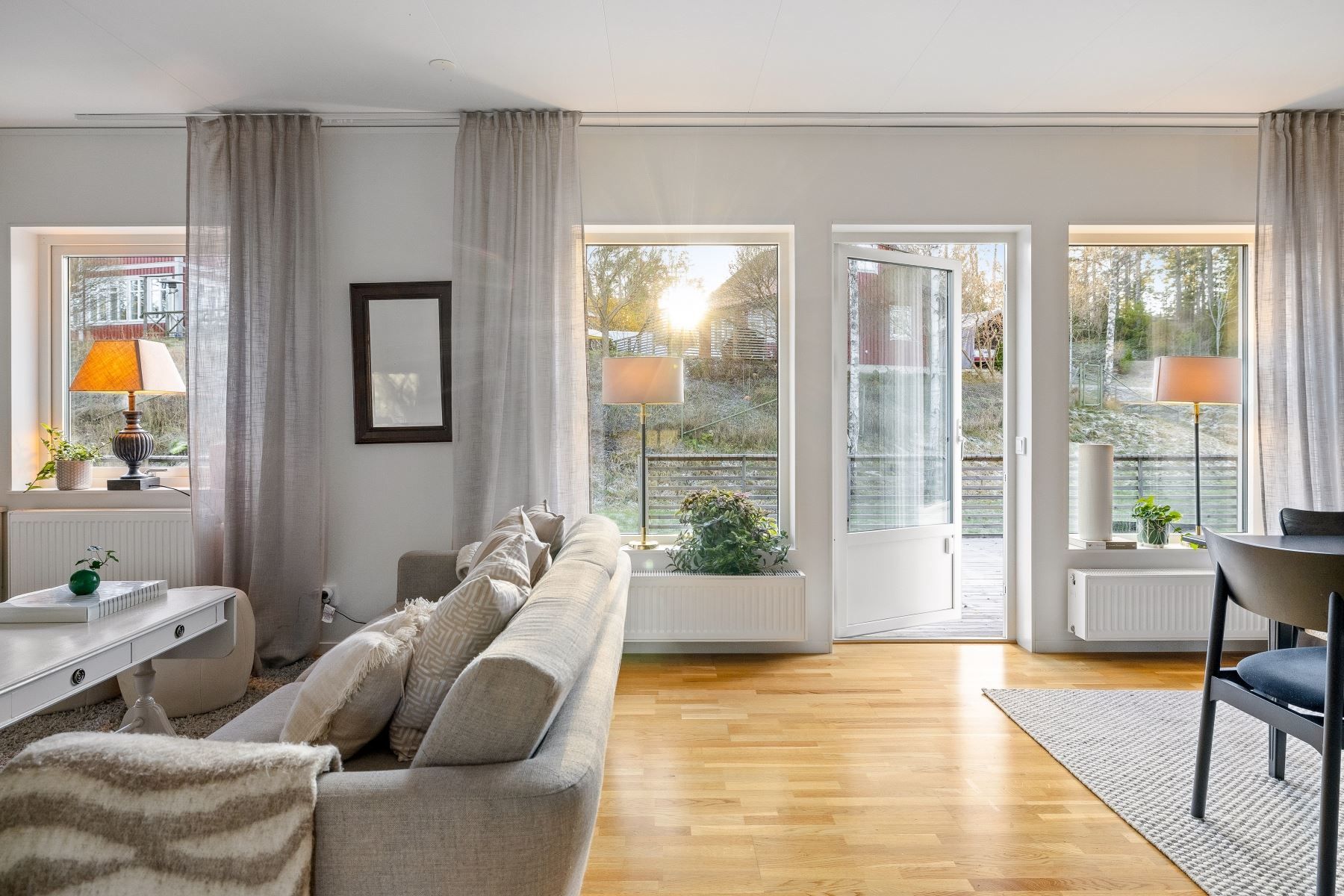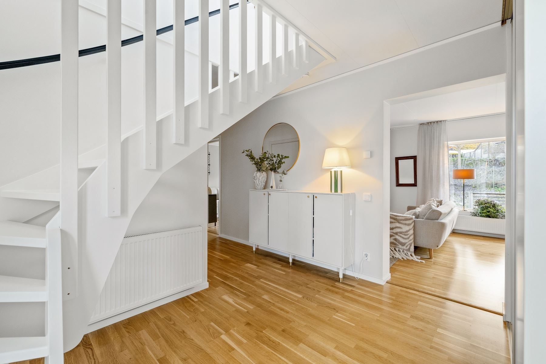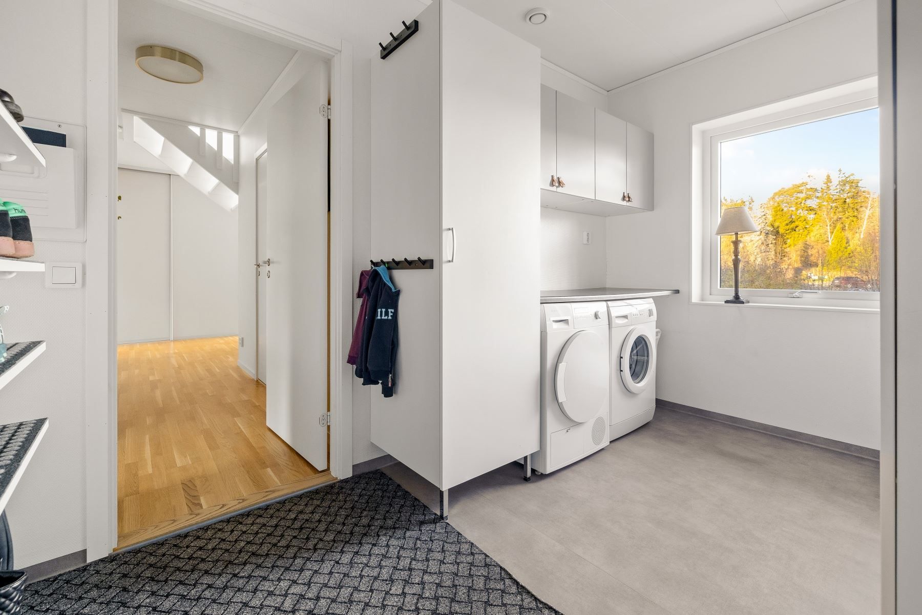Väl inne möts du av en välkomnande hall med god plats för avhängning. Två garderober ger ordning och struktur för ytterkläder och skor. Vidare öppnar hemmet upp sig i en luftig, social planlösning där kök, matplats och vardagsrum samspelar på ett naturligt sätt. Stora fönsterpartier släpper in rikligt med ljus, och via vardagsrummet når du direkt ut till den soliga altanen.