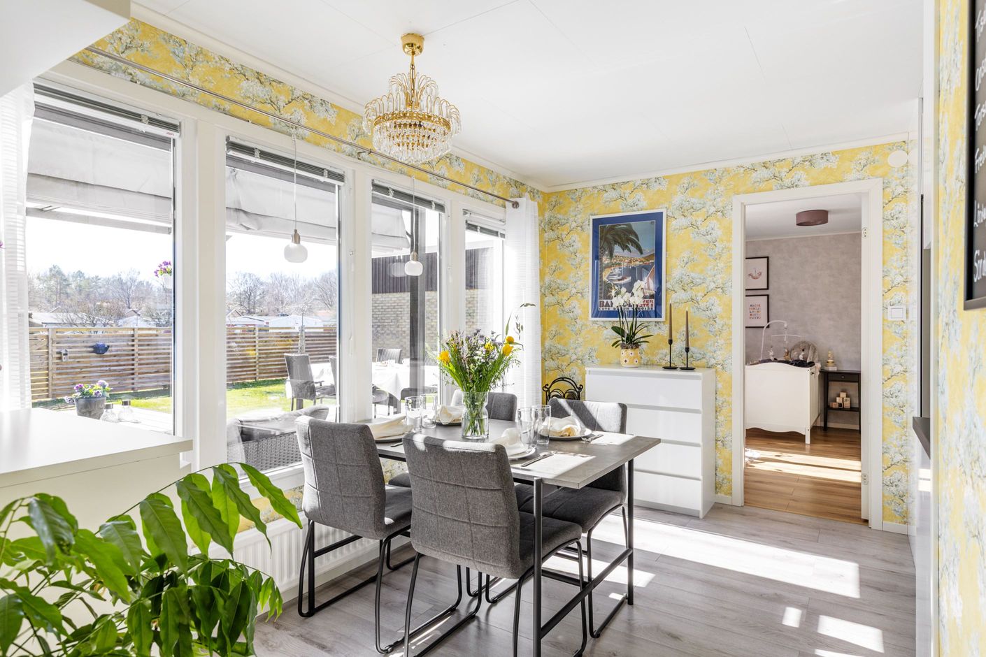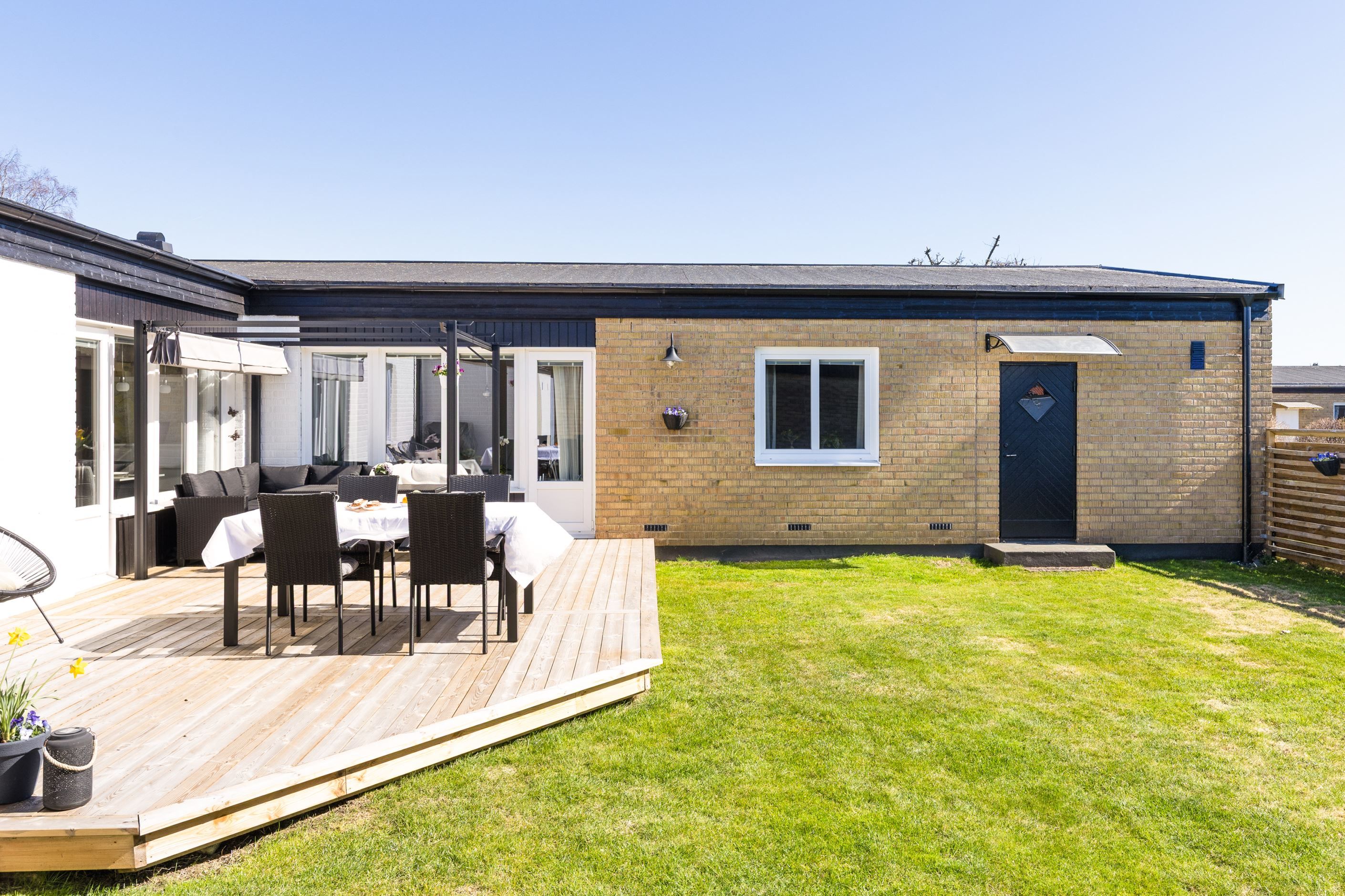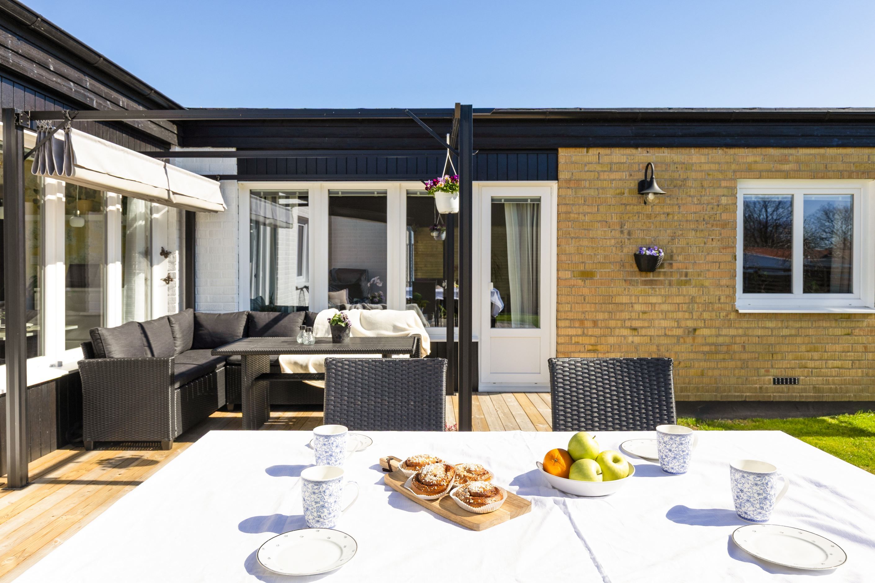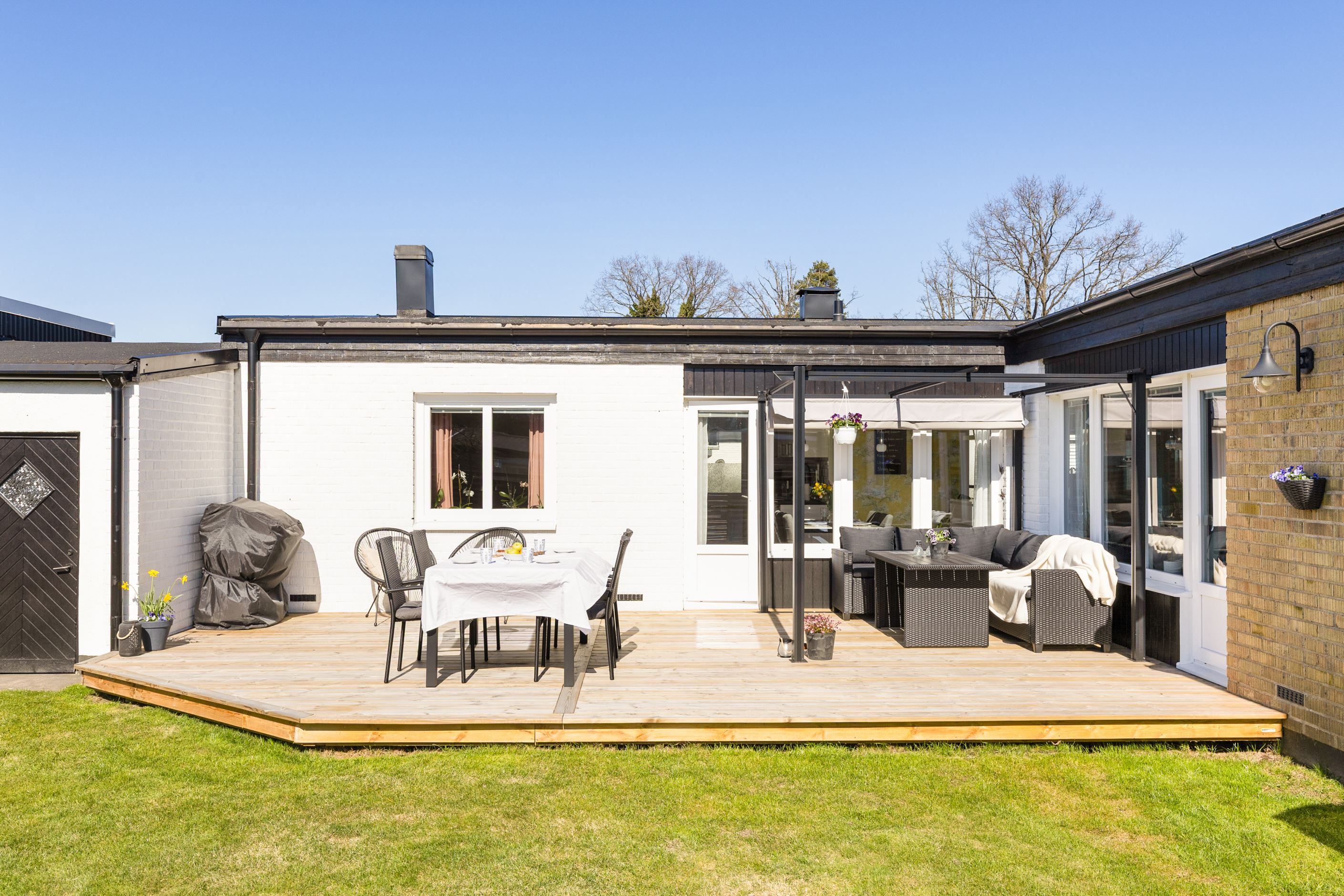 Utomhus väntar en härlig trädäckad uteplats om 45 kvm i soligt söderläge – en perfekt plats för avkoppling, umgänge och sommarens alla måltider. Den är dessutom insynsskyddad, vilket skapar en privat och rofylld miljö.
